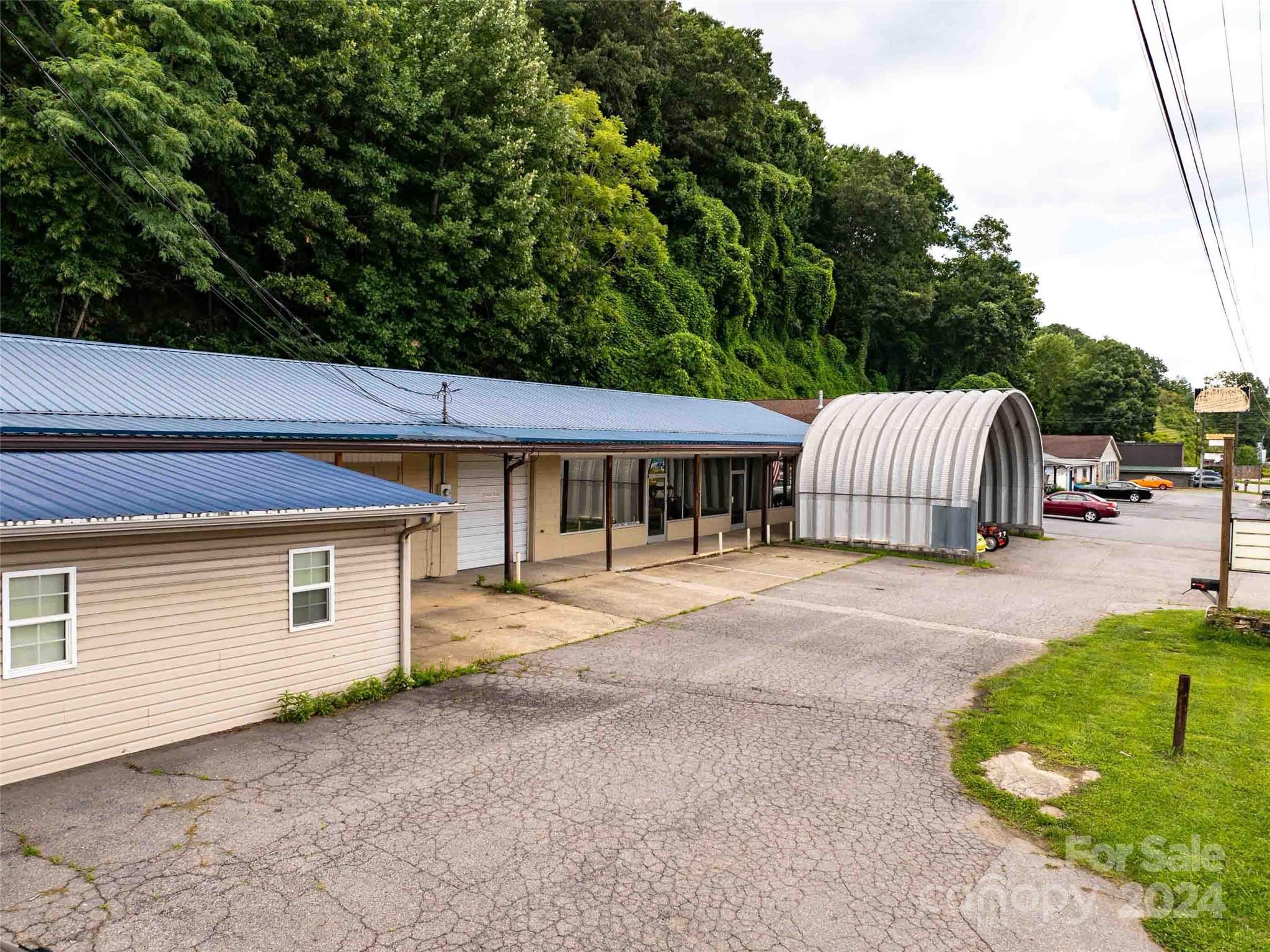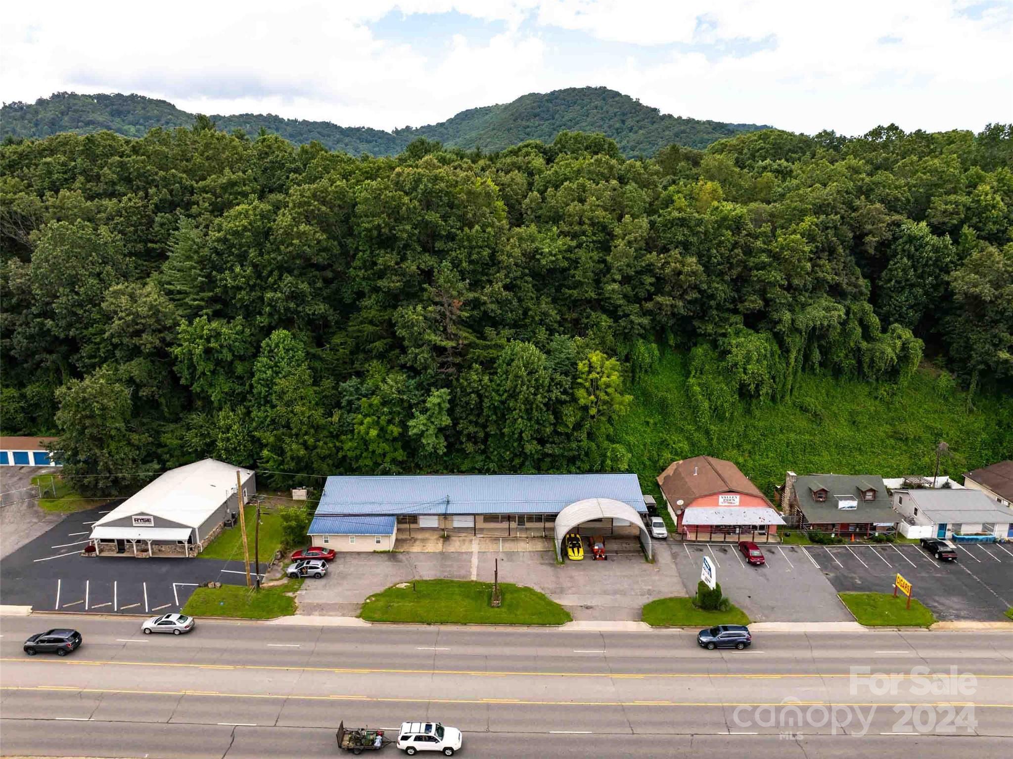 REDUCED ]!!! NOW ONLY $131 PER SQFT!!! Many opportunities await you at this prime commercial property with extremely high visibility/ 150 ft five lane frontage highway between Maggie Valley and Waynesville with display windows across the front of the building which features 4760 SF, 4 half bathrooms, updated 2- central heat and air heat pump, tankless water heater, 10+ foot ceiling, 19x34 Quonset Hut could be used to display items/storage/4 covered parking spaces, along with 12 paved parking spaces, 3 separate electric meters and much more.