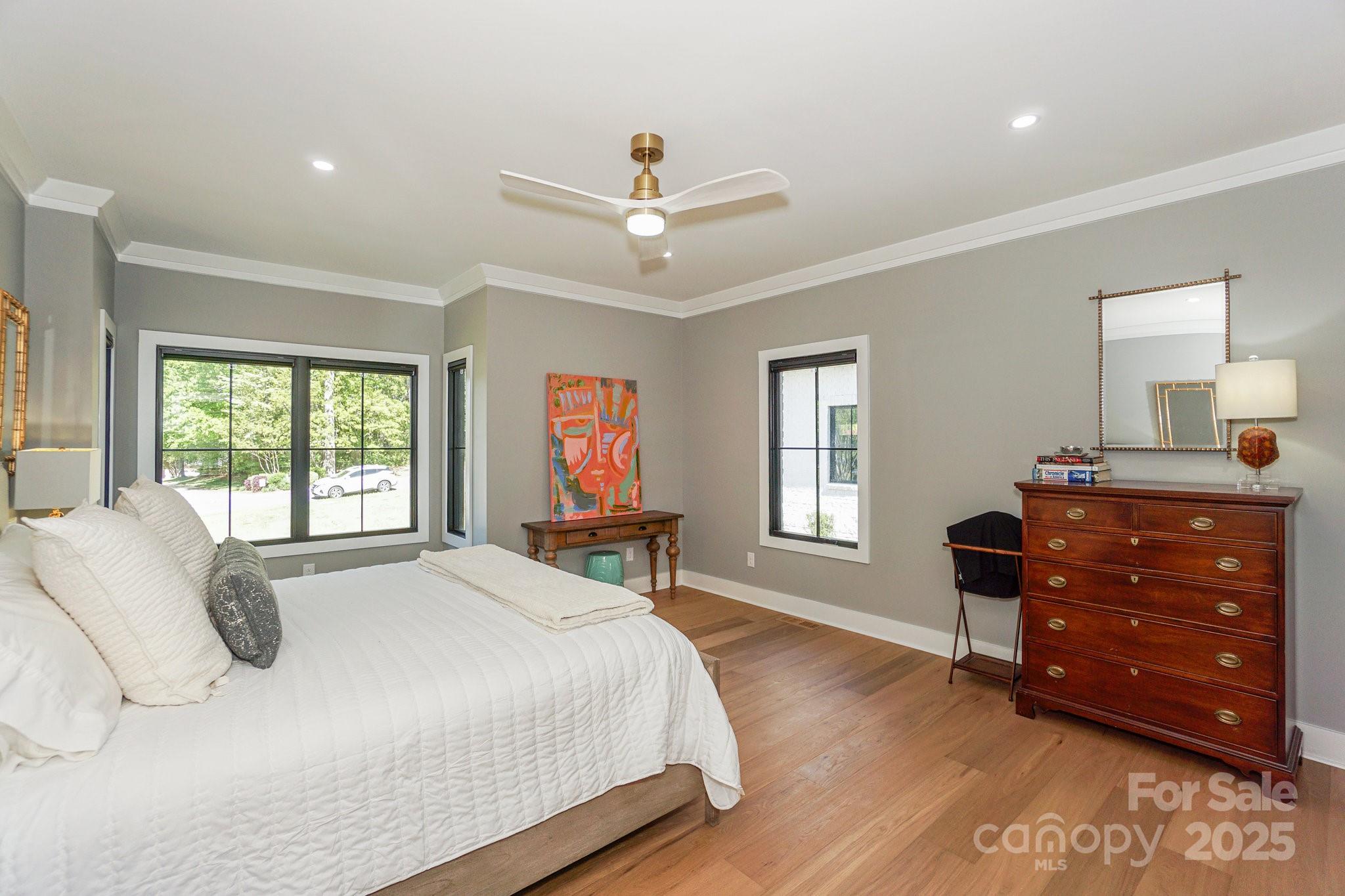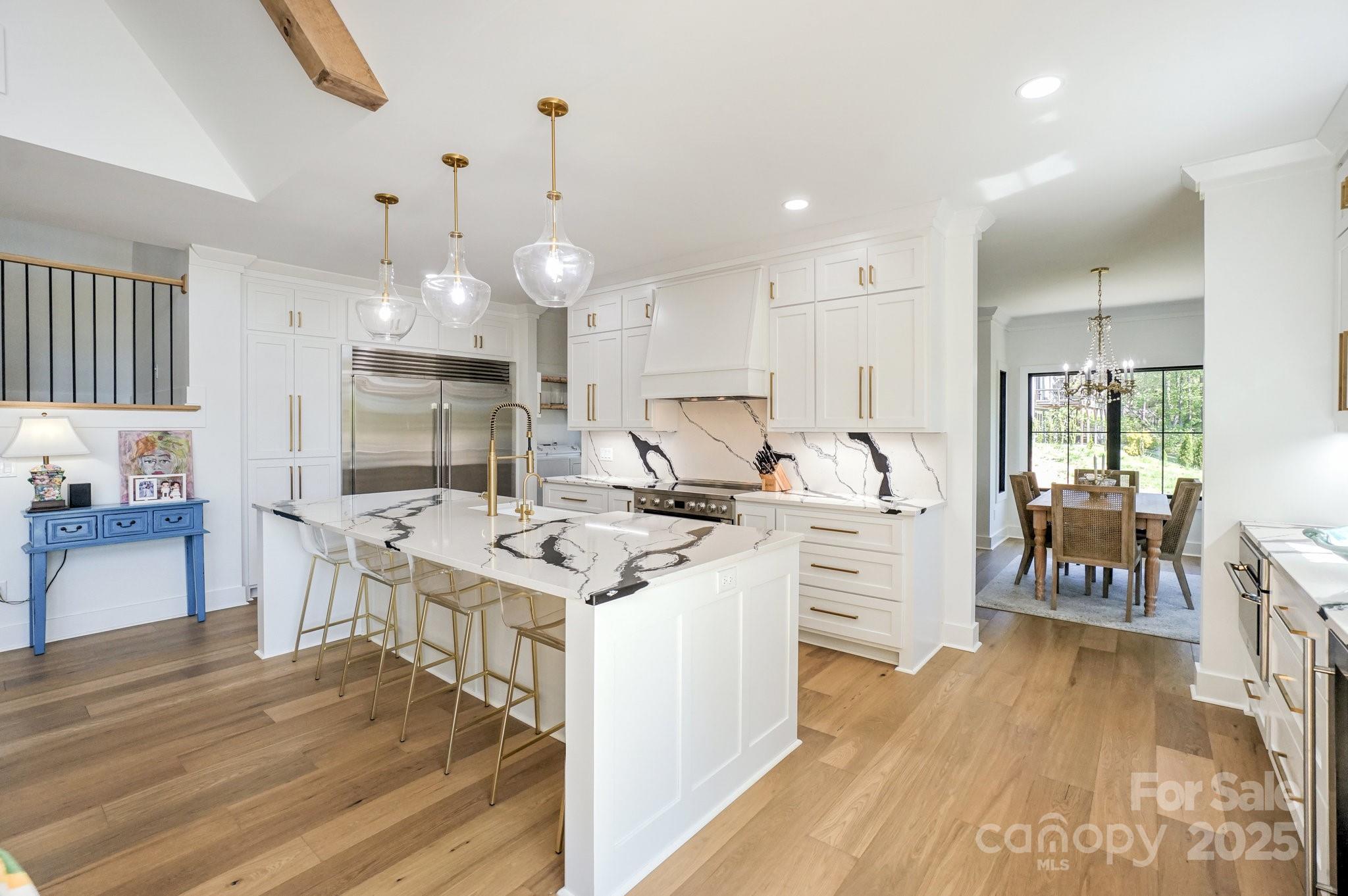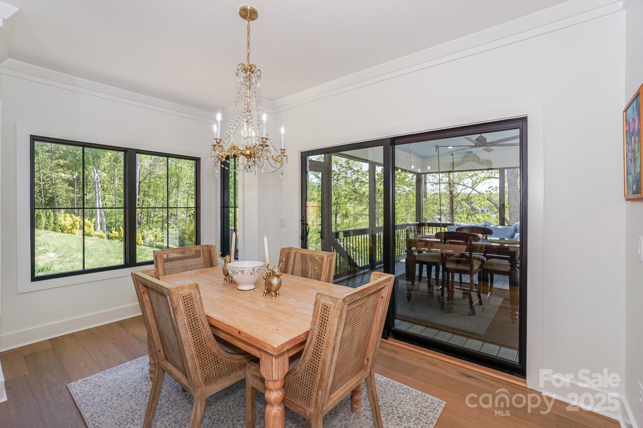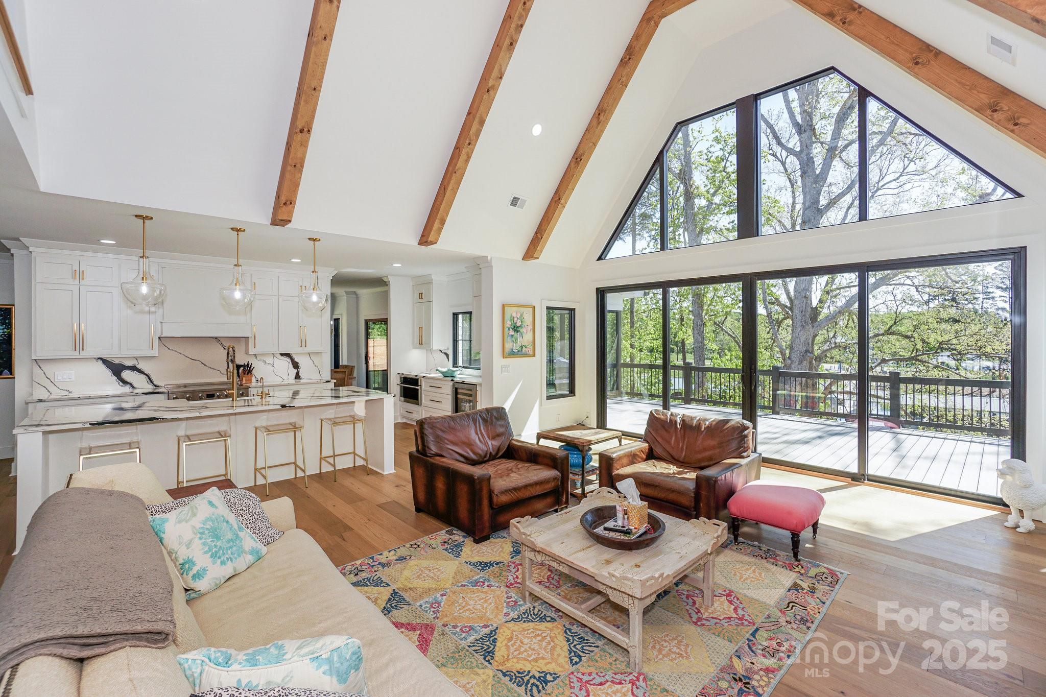 Impressive Custom Built High-quality WF Home-Only 1.5 yrs old. Enter thru Custom Iron/Glass doors into an Open Fplan featuring a Vaulted Great Room w/light wood beams, gas fpl & incredible wall of windows w/wviews. Stunning Chef's Kitchen area includes custom white cabinetry, Lg island w/bar seating, private dining rm, Butlers bar, a relaxing Sc Porch, & entertaining deck. 2 Lg Primary Bdrms on the main share a luxurious primary bath. Upstairs are 2 generous sized Bdrms,a Bonus room-ALL w/ private baths, & a Loft Area. The WF Bsmt highlights Areas for a Family Room, Exercise room, Flex Room, Full Bath w/ access to bkyd, Addl Office, as well as 2 oversized Walk-in storage areas. From the Bsmt patio, enjoy playing in the water off your private dock w/a covered boat slip, & 2 lifts. The covered area across the cove is boat storage only & NOT a Marina! Every guy will LOVE this over 1000sqft 3 car garage & how accessible all the mechanicals are for this home! Reverse Osmosis Water System.