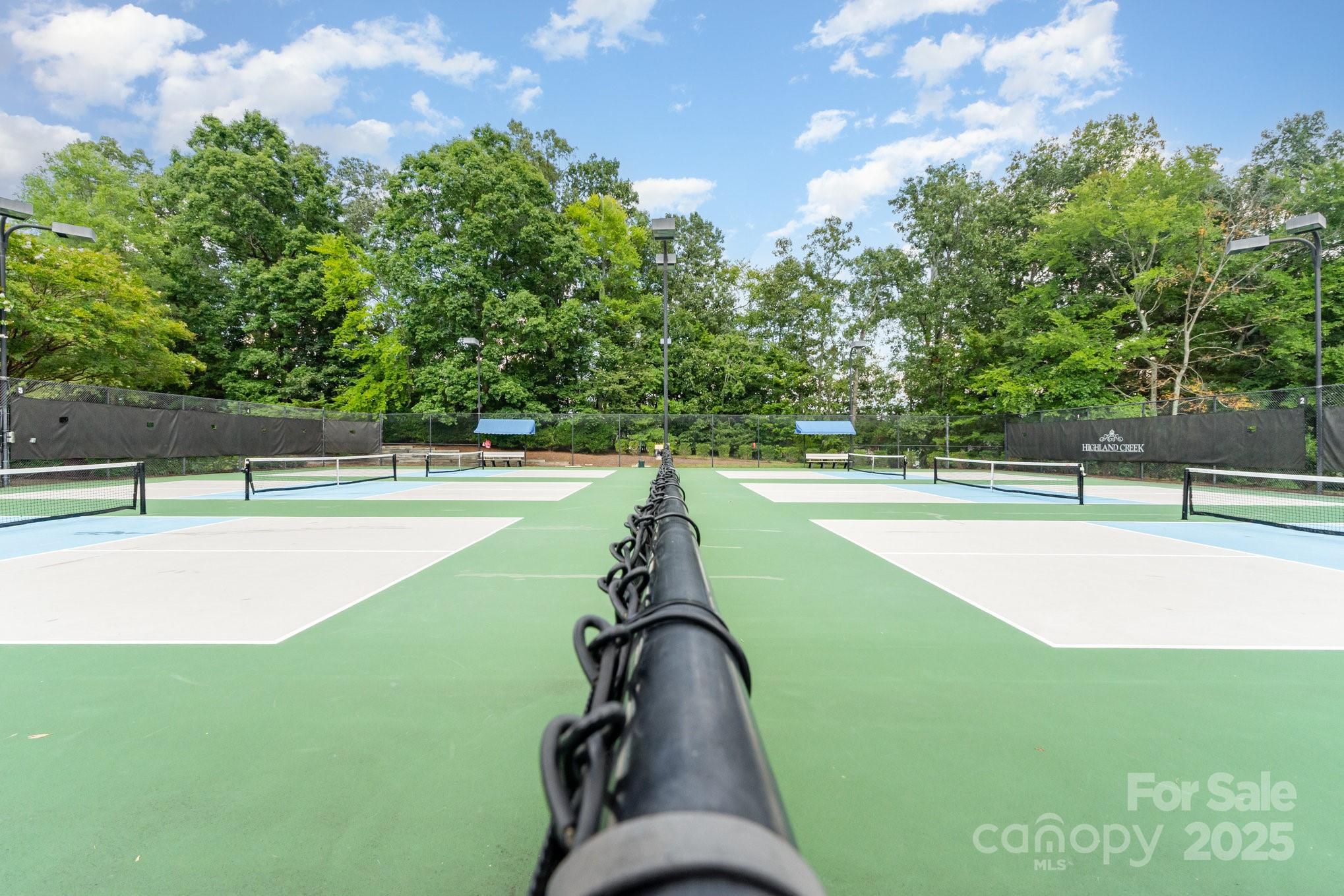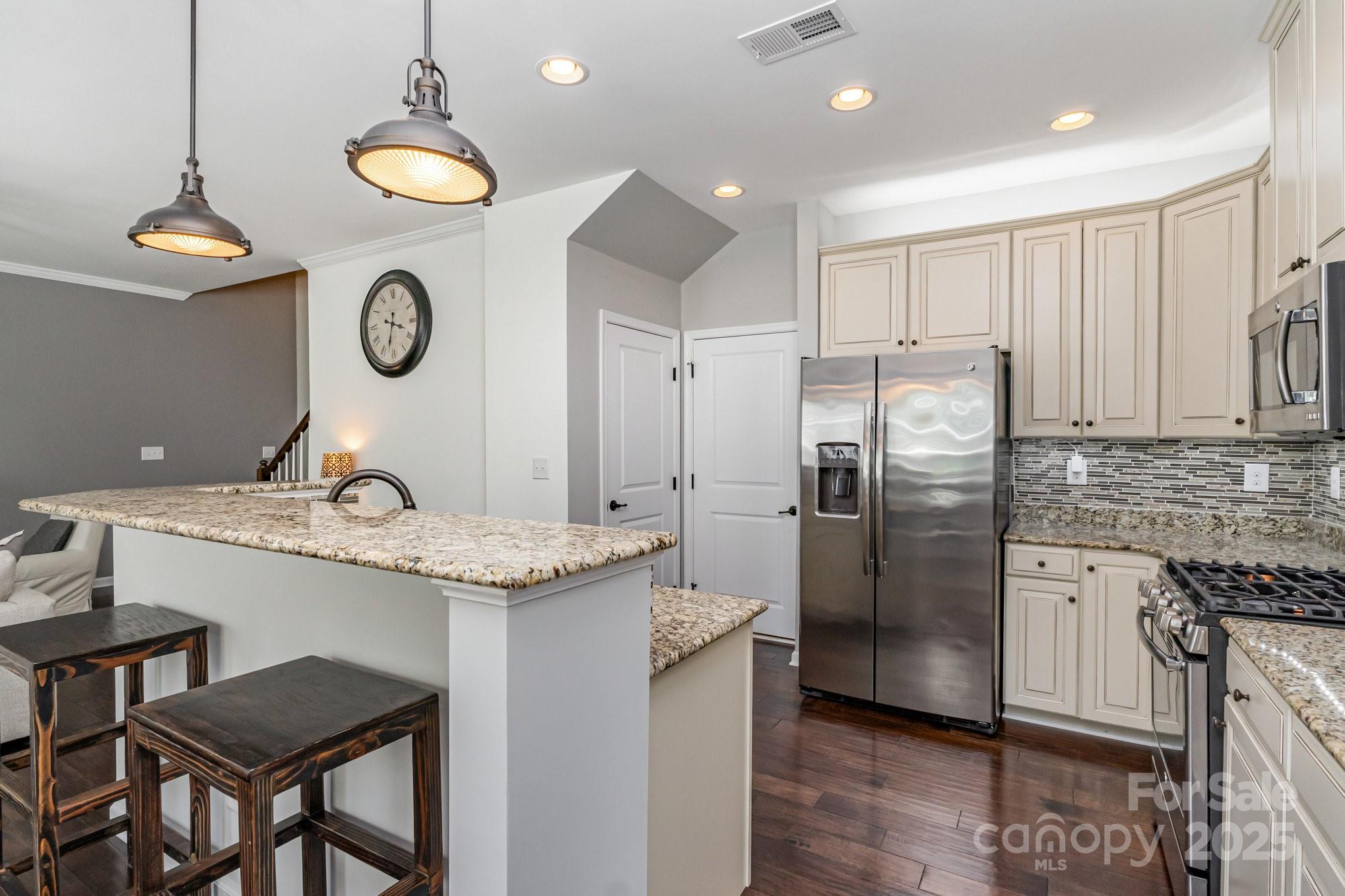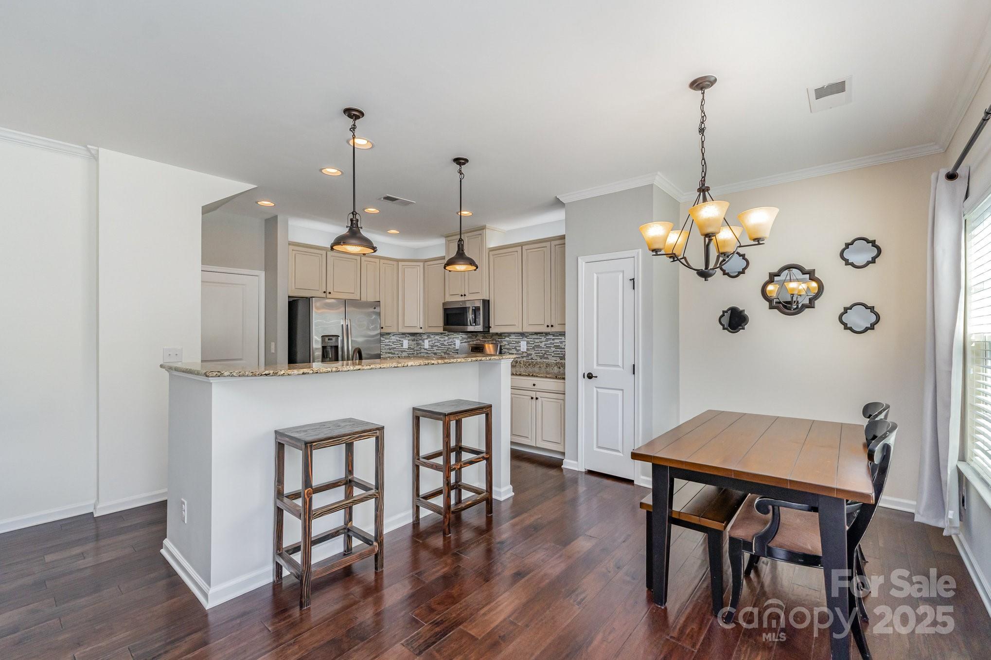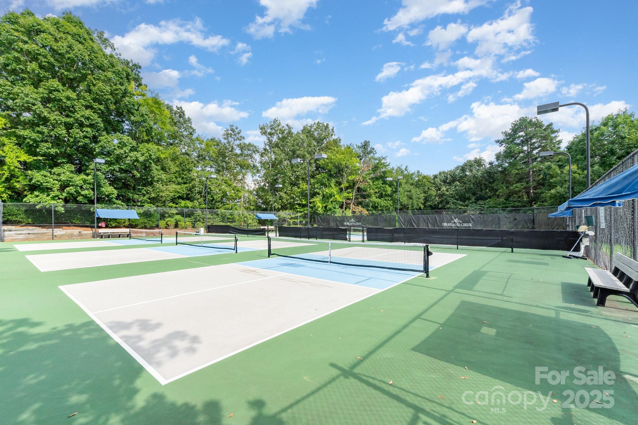 Don't miss out on this gorgeous 3 bedroom, 2 1/2 bath townhome located in the desirable Highland Creek community. This home showcases a host of impressive builder upgrades that exemplify modern living and comfort. Step inside to discover beautiful pre-finished hardwoods that flow seamlessly throughout the main living areas, providing both elegance and durability. The kitchen is a true highlight, featuring the country kitchen option including tall cabinets and the extended counter top area, exquisite granite countertops that perfectly complement the upscale design. Each bathroom is also enhanced with granite sinks, adding a touch of luxury to your daily routine. The master suite offers a serene retreat with an oversized tiled shower that promises a spa-like experience, along with a beautifully tiled garden tub wall, perfect for relaxation. Additional features include storm doors on all three entry points of the unit, providing enhanced protection and energy efficiency.