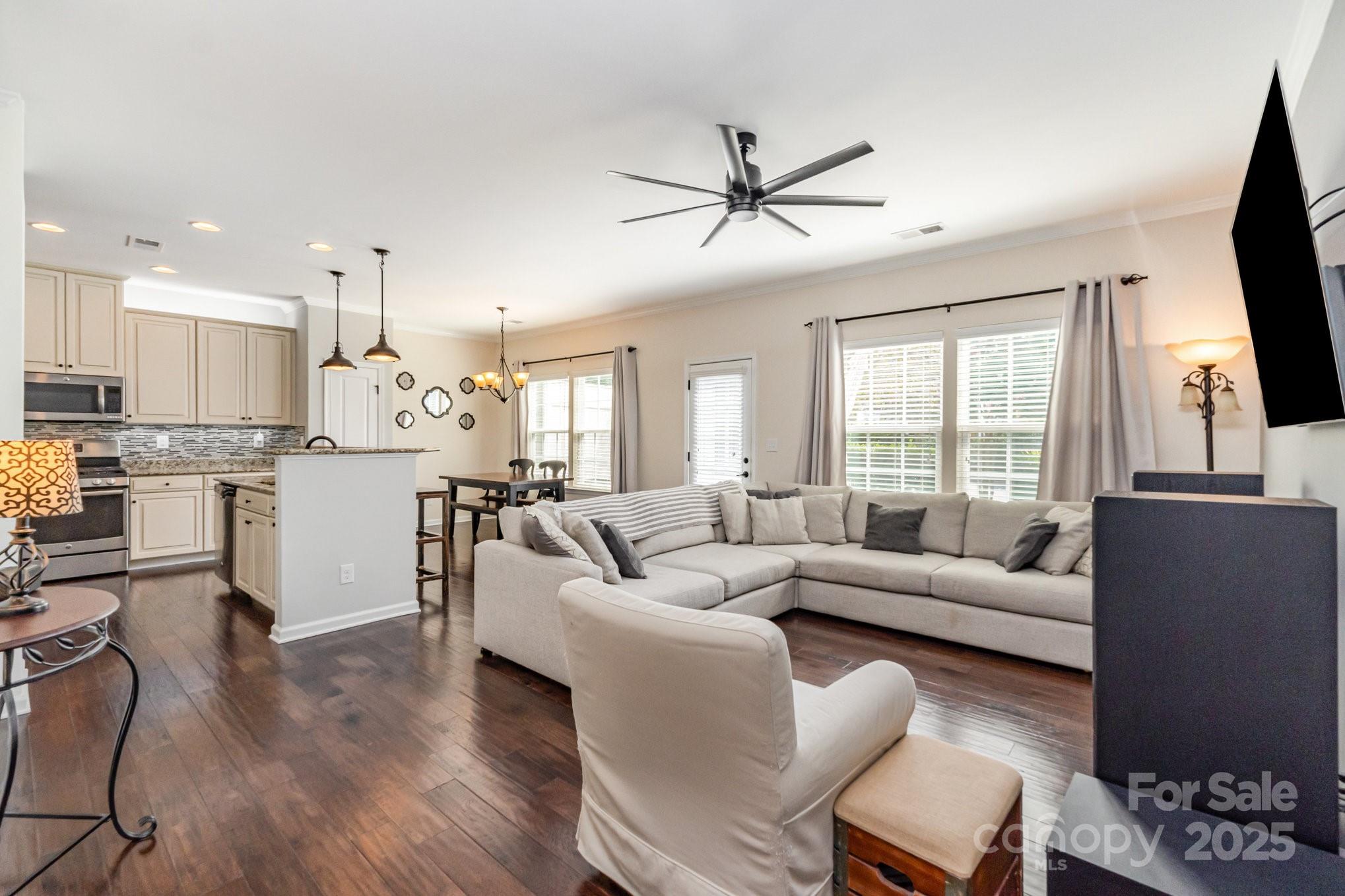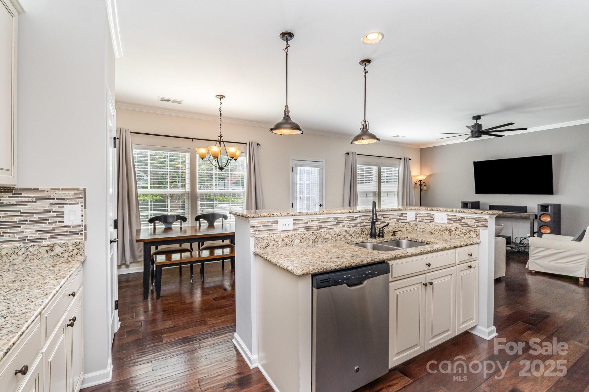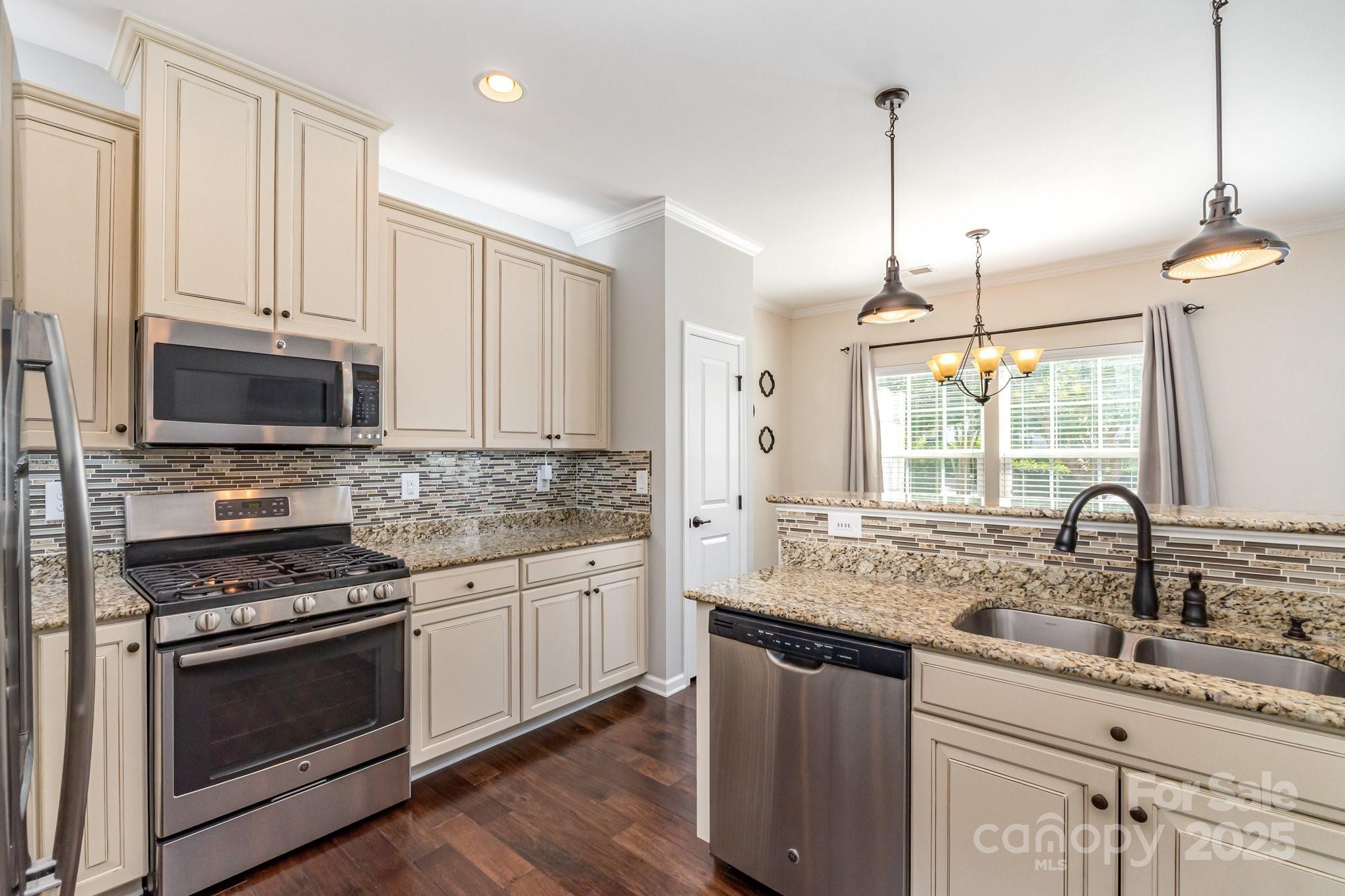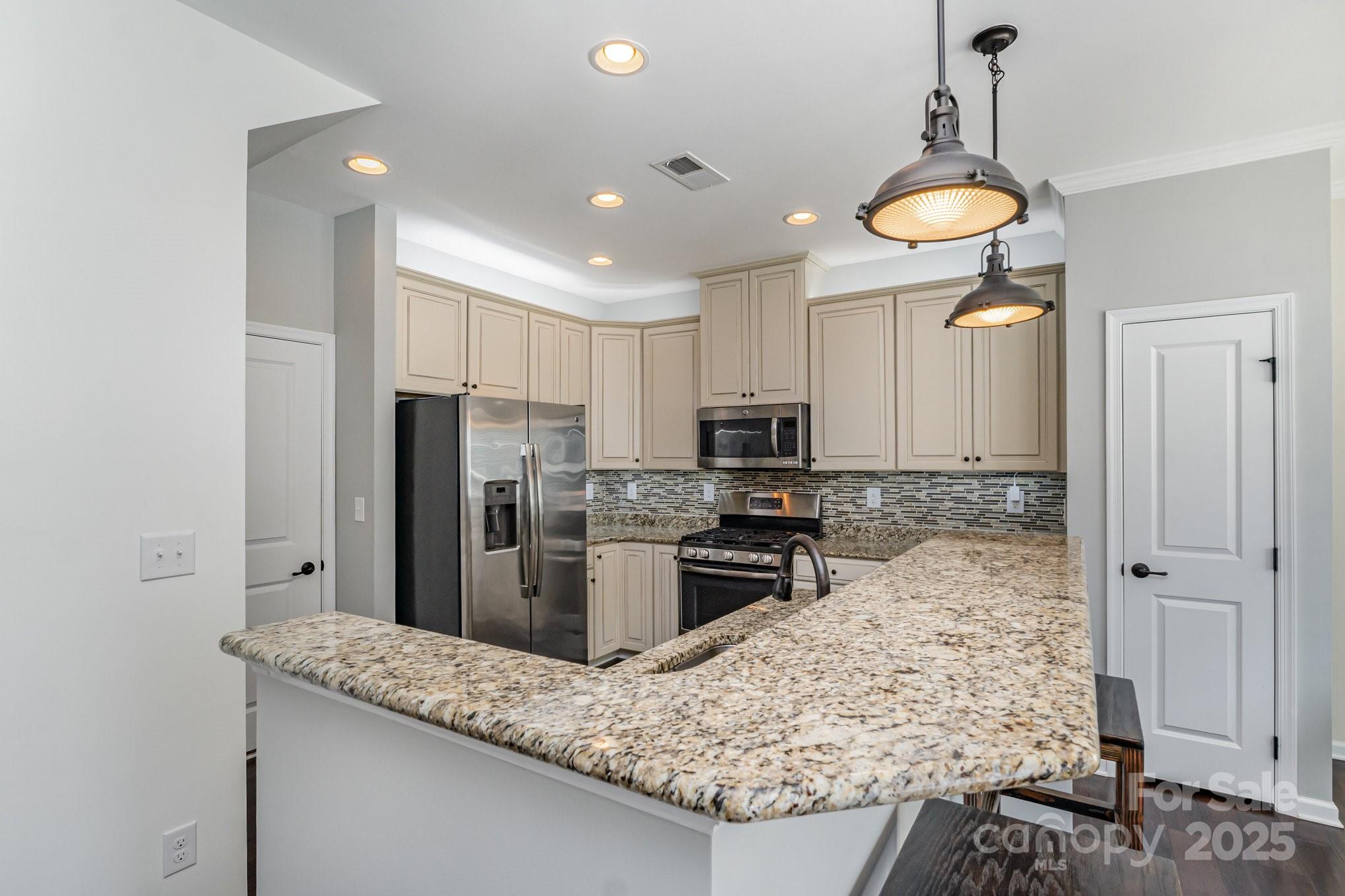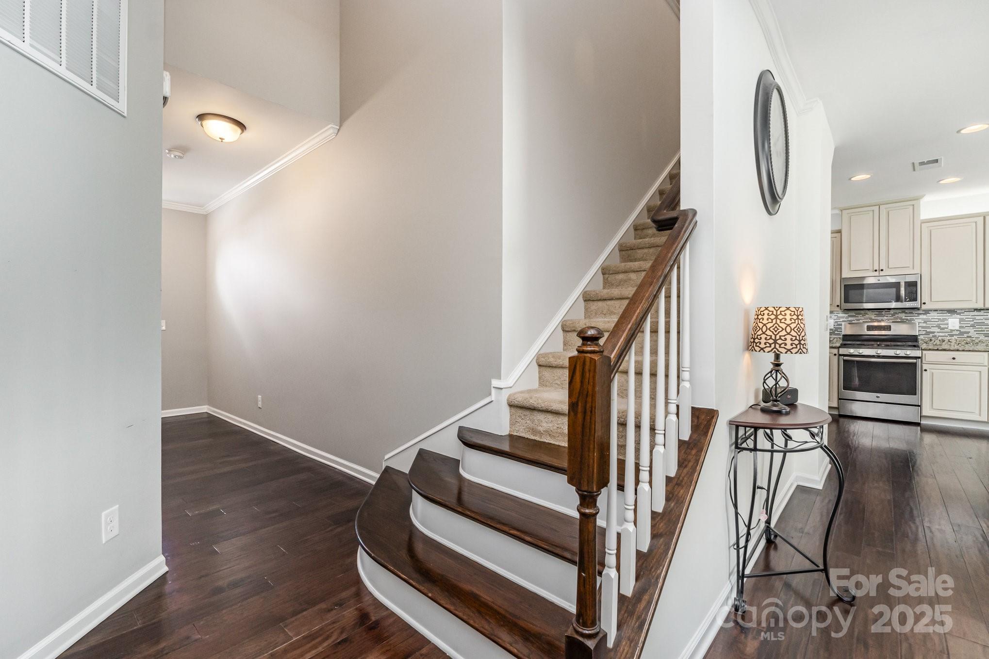 Don't miss out on this gorgeous 3 bedroom, 2 1/2 bath townhome located in the desirable Highland Creek community. This home showcases a host of impressive builder upgrades that exemplify modern living and comfort. Step inside to discover beautiful pre-finished hardwoods that flow seamlessly throughout the main living areas, providing both elegance and durability. The kitchen is a true highlight, featuring the country kitchen option including tall cabinets and the extended counter top area, exquisite granite countertops that perfectly complement the upscale design. Each bathroom is also enhanced with granite sinks, adding a touch of luxury to your daily routine. The master suite offers a serene retreat with an oversized tiled shower that promises a spa-like experience, along with a beautifully tiled garden tub wall, perfect for relaxation. Additional features include storm doors on all three entry points of the unit, providing enhanced protection and energy efficiency.