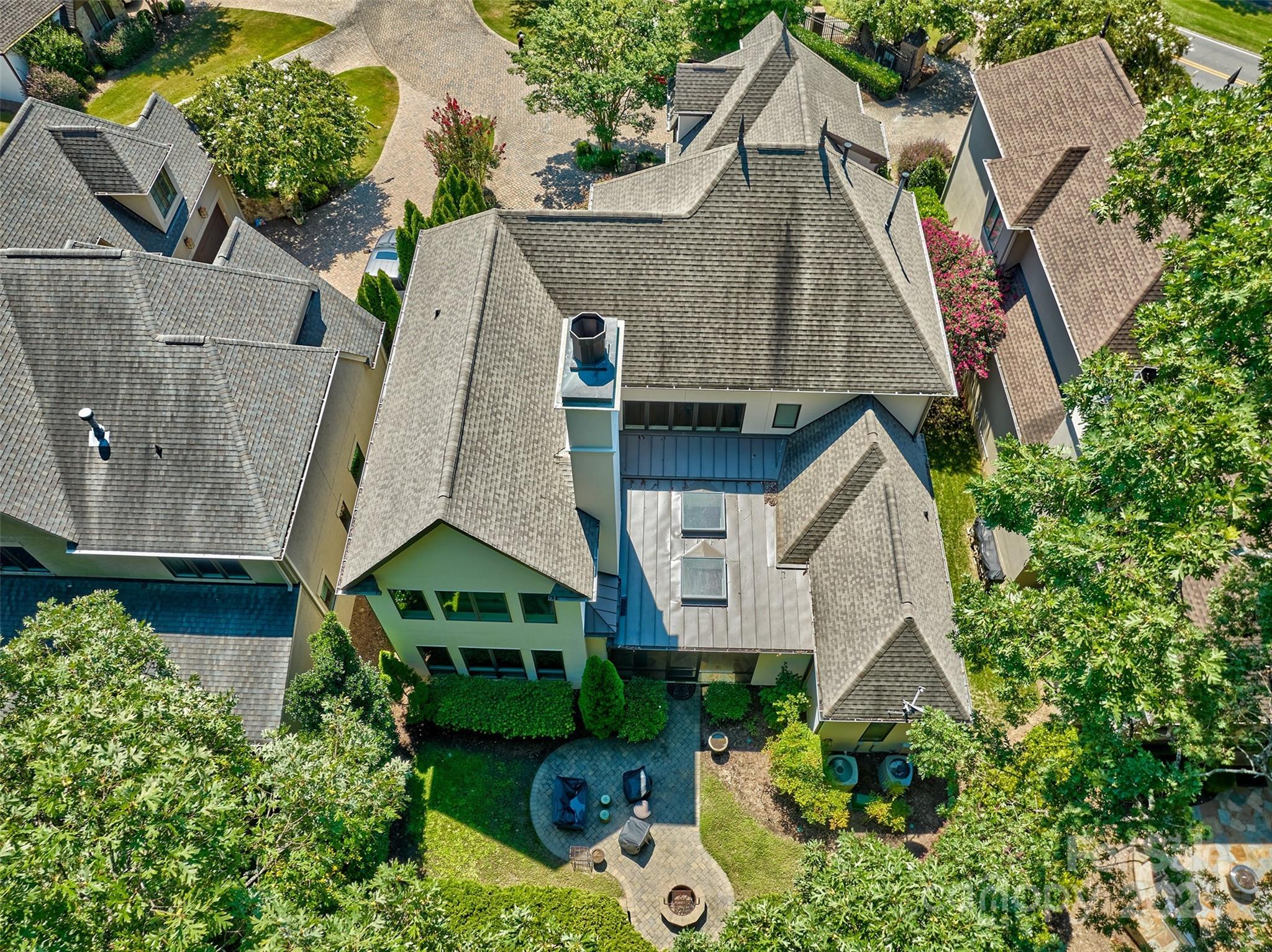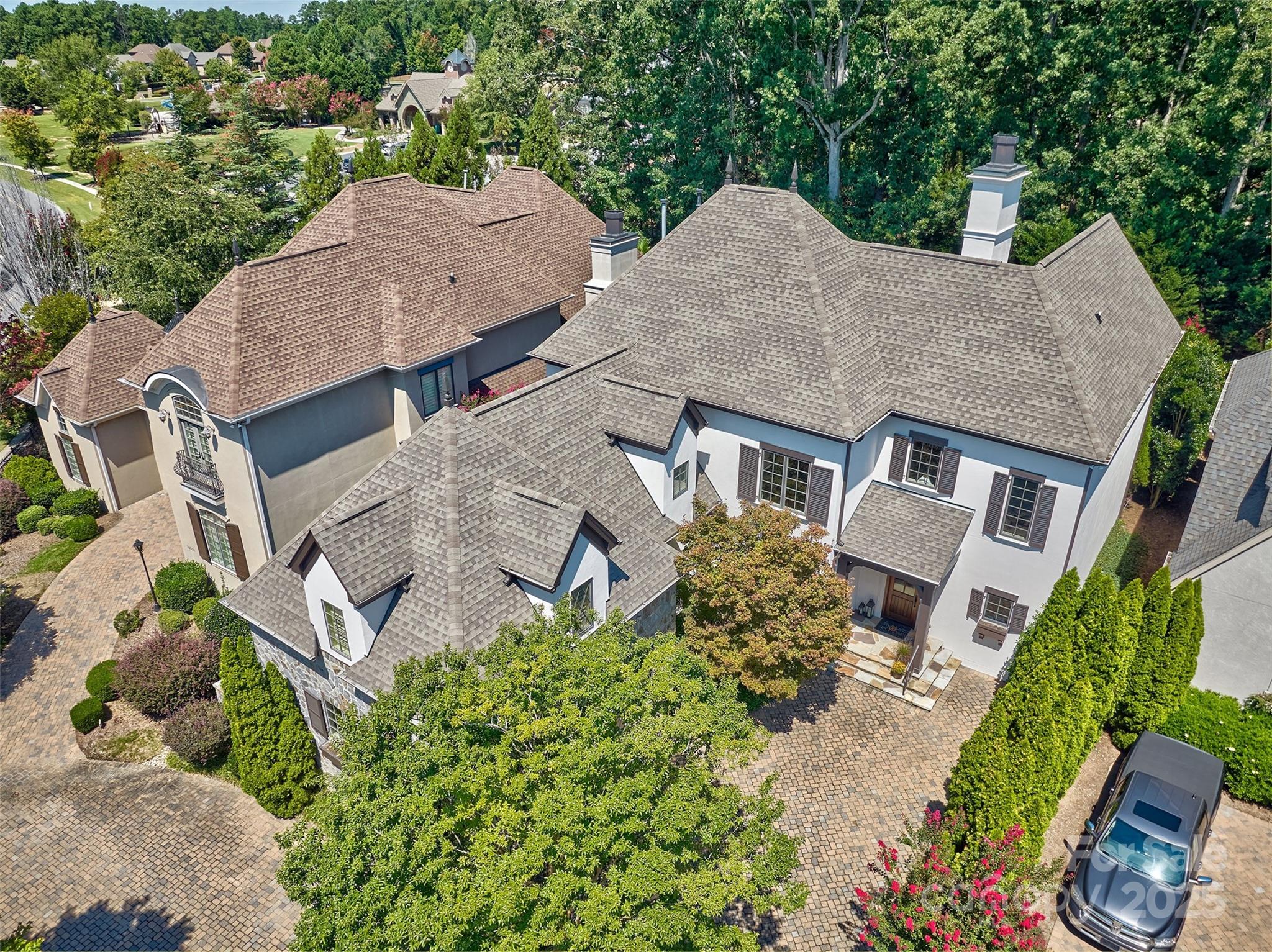 Welcome home to this cozy home in the Palisades with walkability to the country club, the resident amenity pool, tennis courts ,pickle ball courts and playground. This beauty sits in a small gated enclave of 7 custom homes with HOA that provides landscaping, fountain and the gate. Kingswood was the builder and their attention to details is awesome. Large foyer and then great room - 2 story with coffered ceilings- welcomes you in with adjoining open kitchen and oversized island & eat in area. There is also a formal dining room, huge laundry room, 1/2 bath and luxurious primary suite on the main floor with only 2 steps into the house. The screened porch with skylights is an extension of the living area and goes into the private backyard and fire pit. The upstairs offers 3 large bedrooms with ensuite bathrooms, bonus room with lots of room for pool table ,gaming tables and seating areas. This home has great flow for entertaining and accommodating all your visitors with privacy. Hardwoods throughout the first floor with the exception of the primary bath. Upstairs is also hardwood for bonus room and carpeted bedrooms. Could work for multigenerational living with so much space and privacy. The Palisades is unique neighborhood and close to Charlotte, Fort Mill and I77 for commuting . There is a cool wine cellar/ closet for those who like to collect. Come see this well maintained home and appreciate the neighborhood and all it offers.