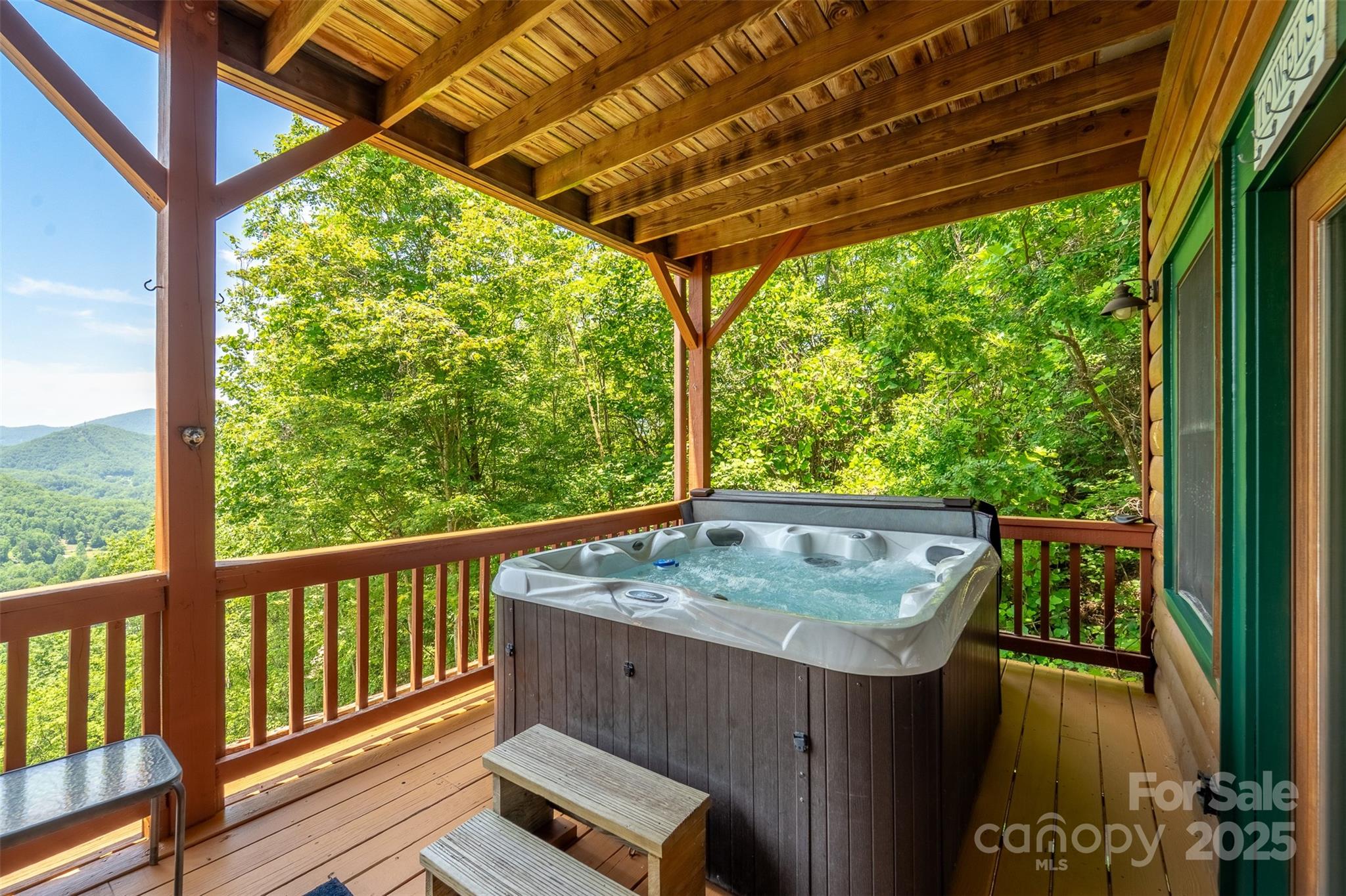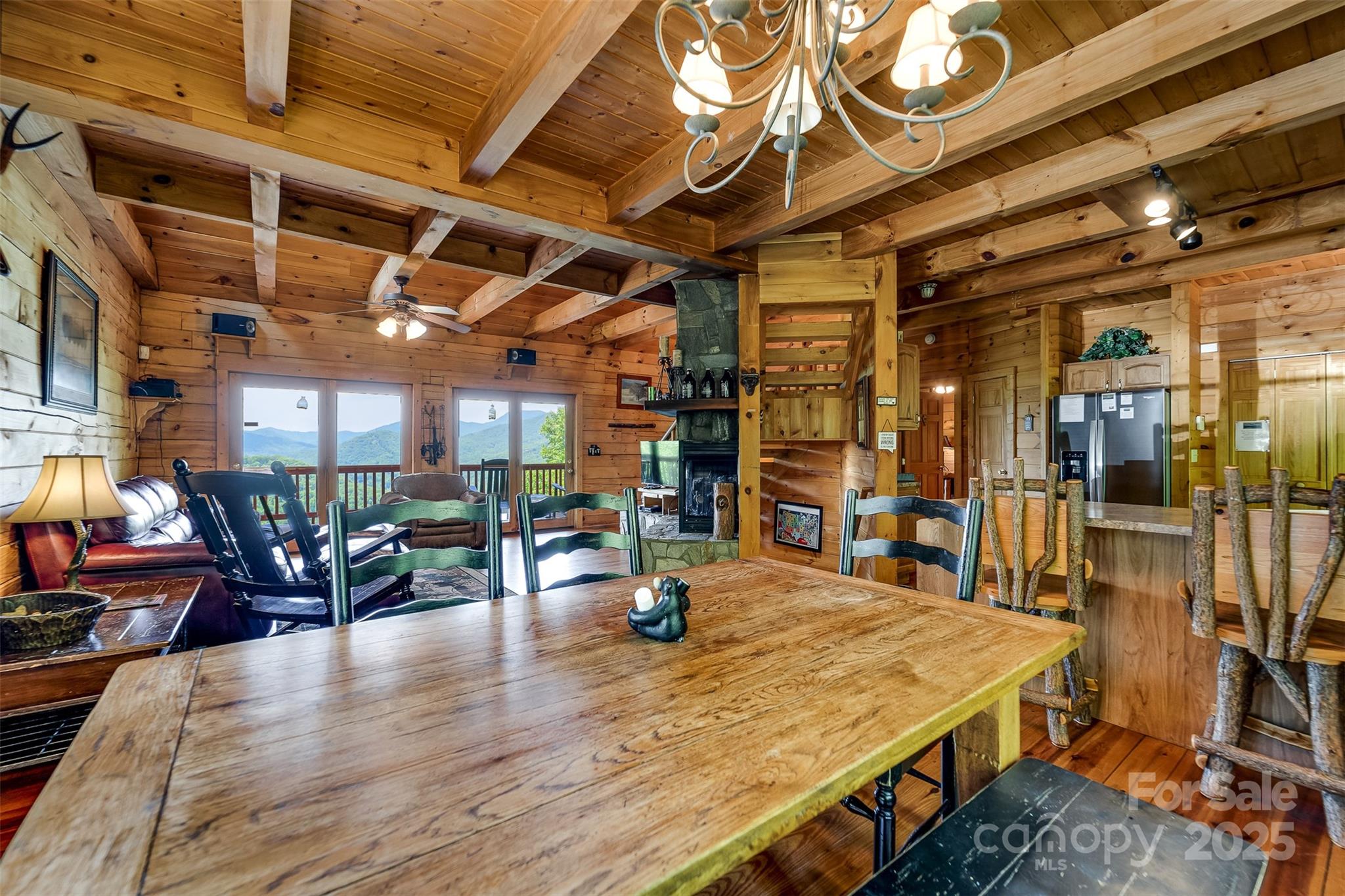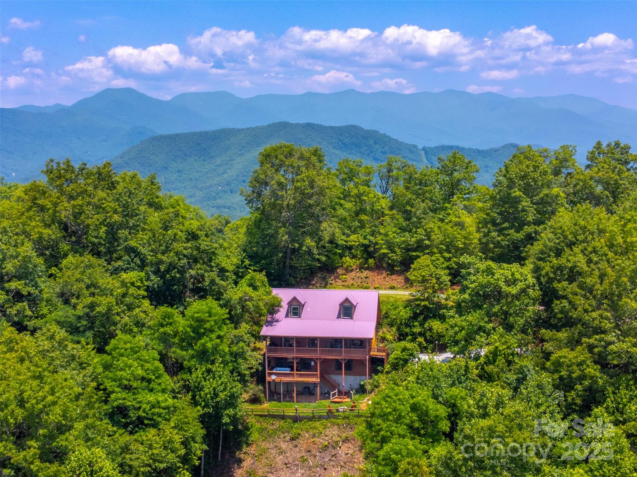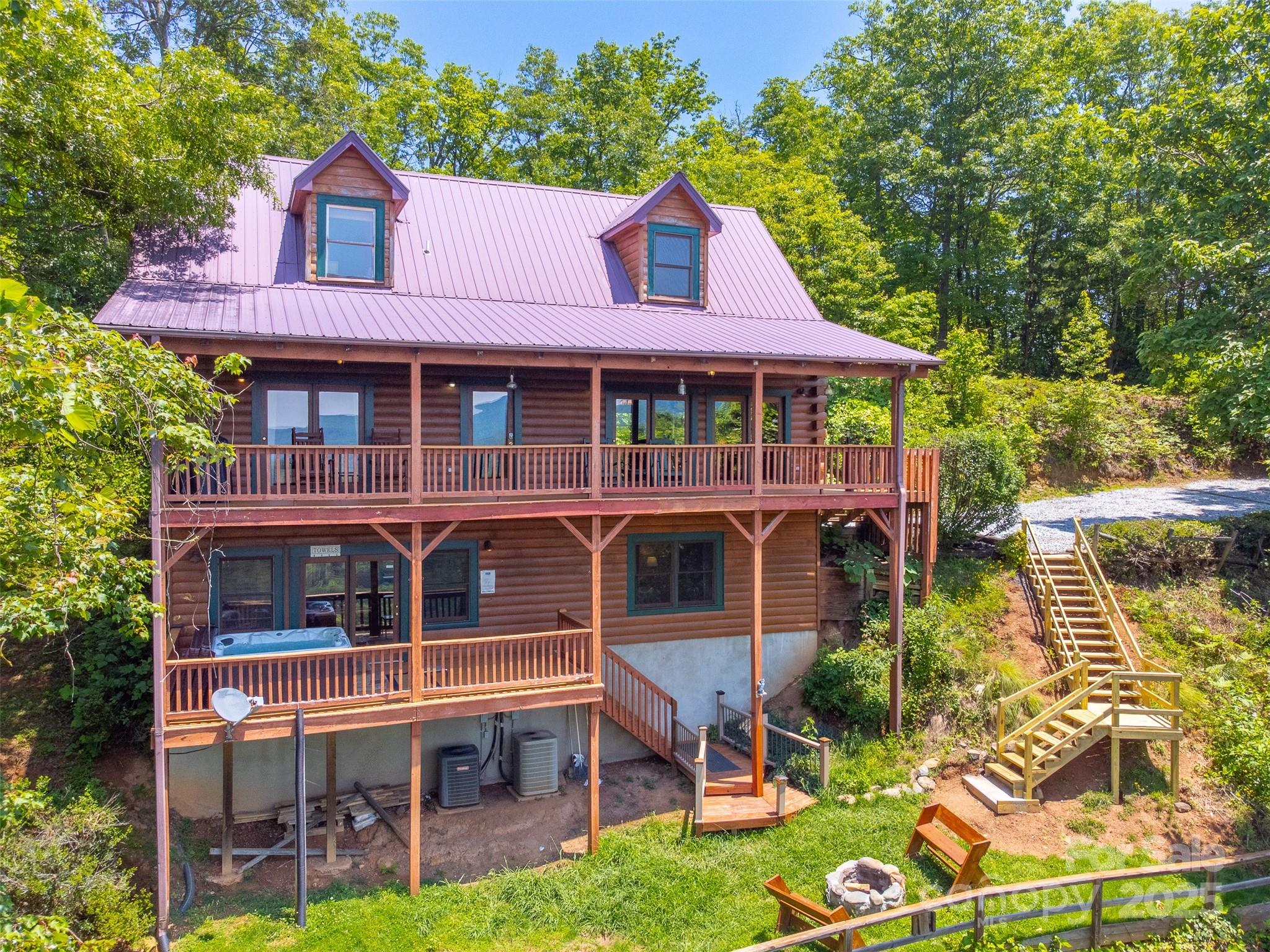 Escape to the serenity of the Smoky Mountains in this fully furnished 3 bdr, 3.5 bth log cabin perched near Ginny’s Knob, just mins from Sylva, Cherokee, Bryson City, and Franklin. Cabin offers well designed living space and panoramic long range mountain views from nearly every room. The main level features an open concept living space, a stunning stacked stone gas fireplace, and expansive windows that frame the view. The primary bedroom and ensuite bath, complete with a tiled shower and soaking tub, are also conveniently located on the main floor. Upstairs, a light filled loft area provides a versatile space for a home office, second living room, or reading nook, plus two inviting guest bedrooms. The finished basement offers a large rec room, a bonus room for added sleeping or flex space, and walk-out access to the hot tub—perfect for relaxing under the stars. Outside, guests and owners alike will love gathering around the campfire area to take in the sweeping views and mountain air.