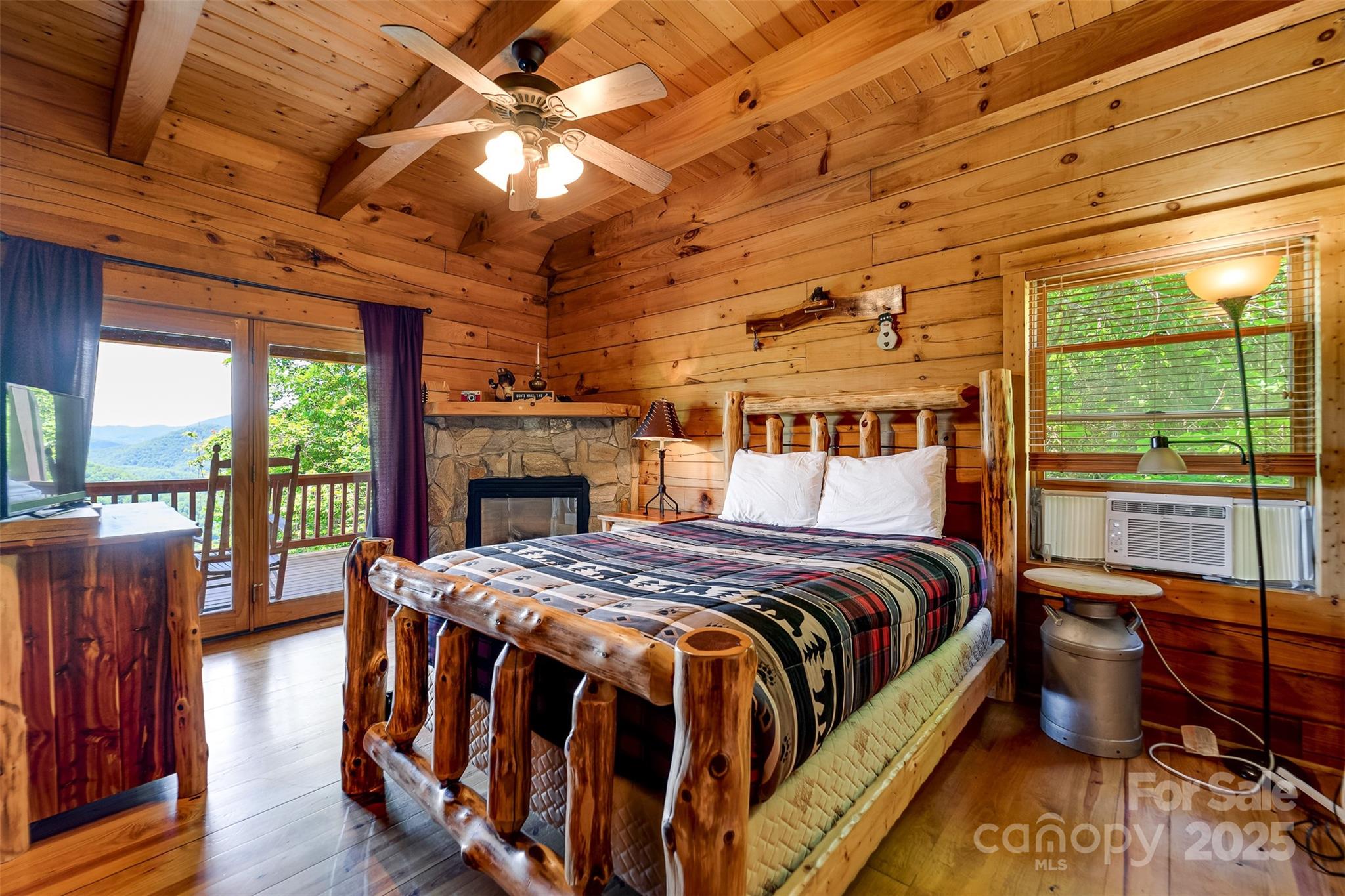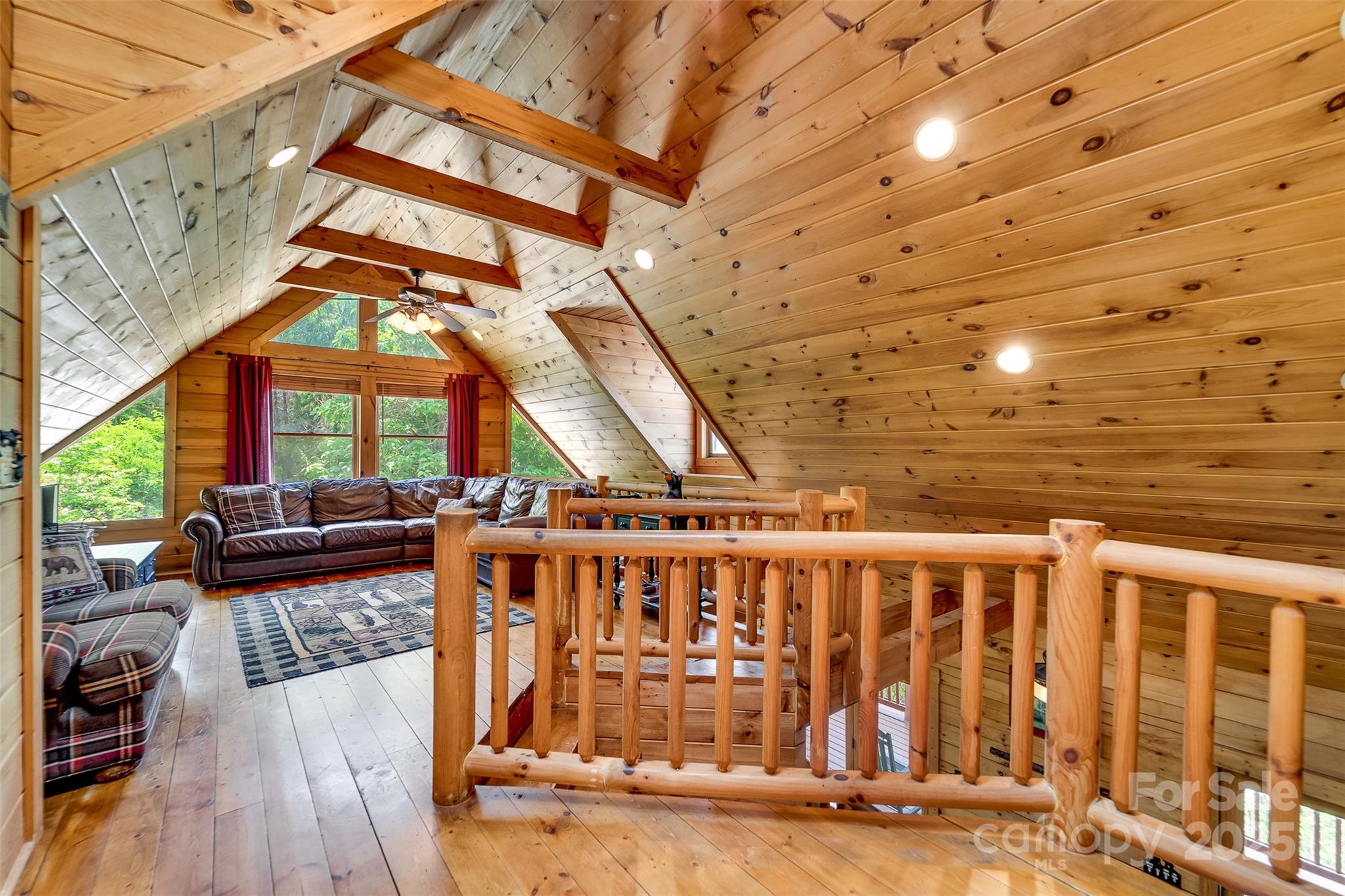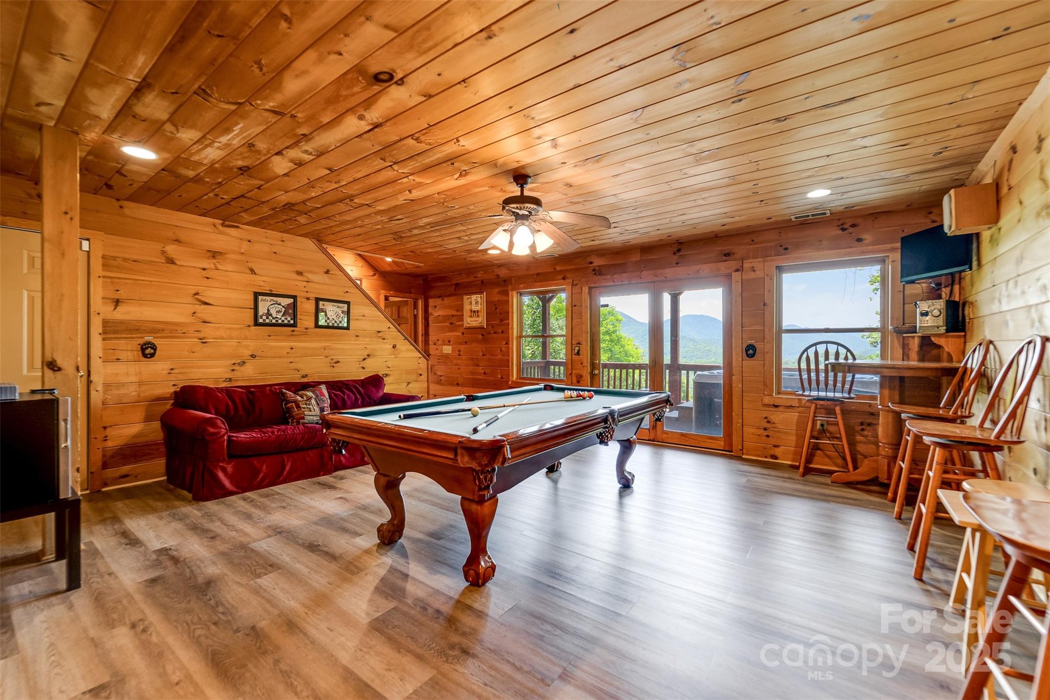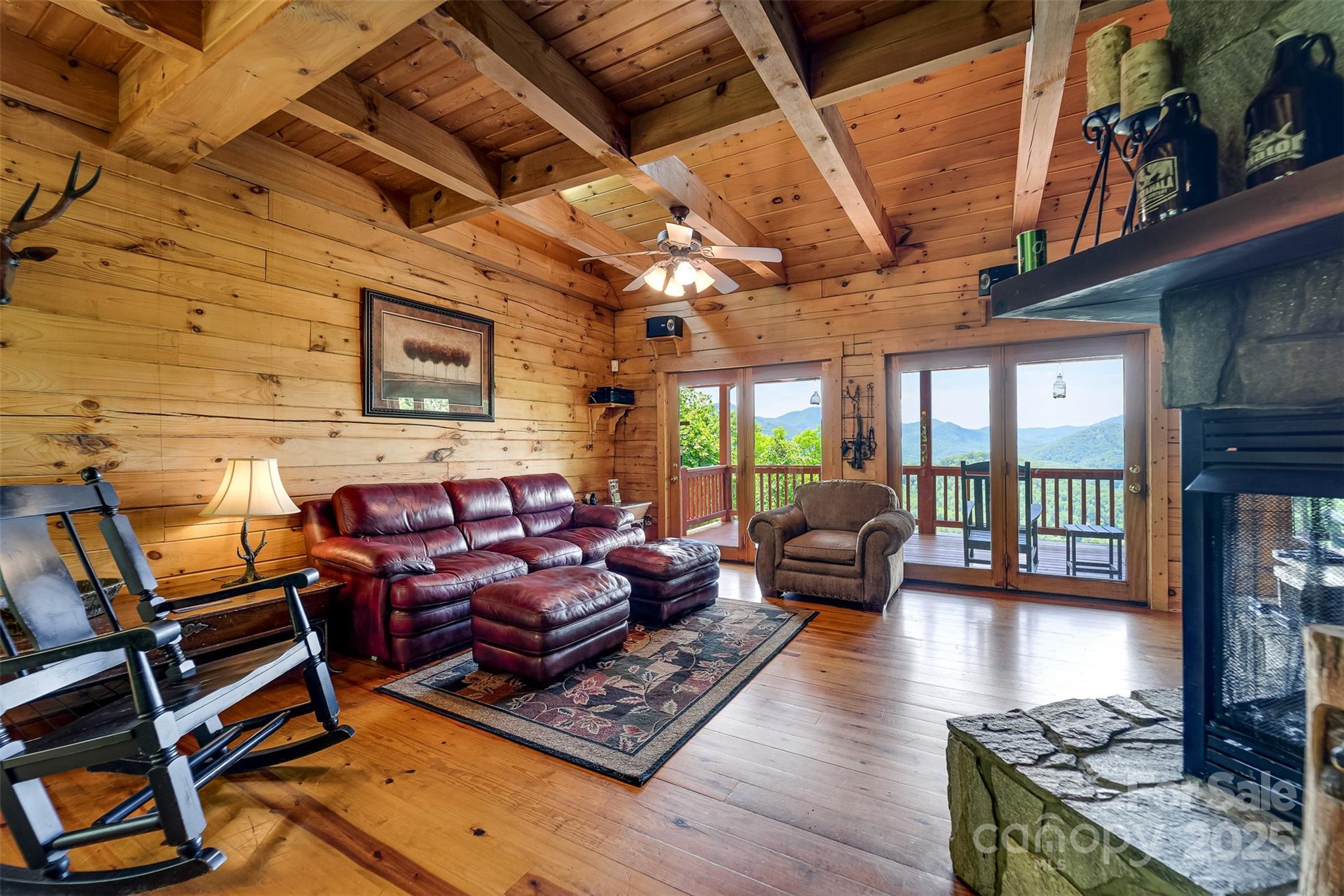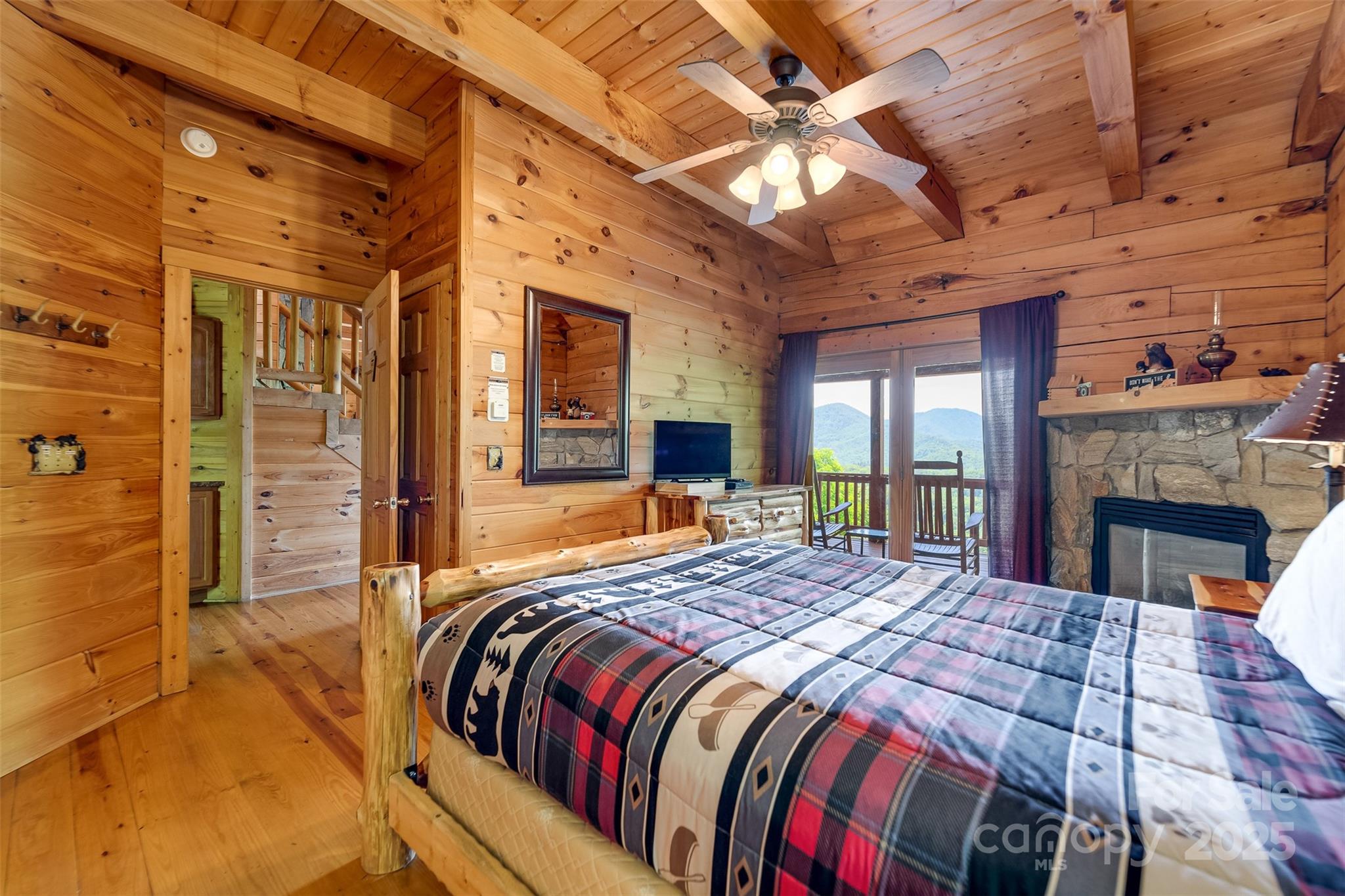 Escape to the serenity of the Smoky Mountains in this fully furnished 3 bdr, 3.5 bth log cabin perched near Ginny’s Knob, just mins from Sylva, Cherokee, Bryson City, and Franklin. Cabin offers well designed living space and panoramic long range mountain views from nearly every room. The main level features an open concept living space, a stunning stacked stone gas fireplace, and expansive windows that frame the view. The primary bedroom and ensuite bath, complete with a tiled shower and soaking tub, are also conveniently located on the main floor. Upstairs, a light filled loft area provides a versatile space for a home office, second living room, or reading nook, plus two inviting guest bedrooms. The finished basement offers a large rec room, a bonus room for added sleeping or flex space, and walk-out access to the hot tub—perfect for relaxing under the stars. Outside, guests and owners alike will love gathering around the campfire area to take in the sweeping views and mountain air.