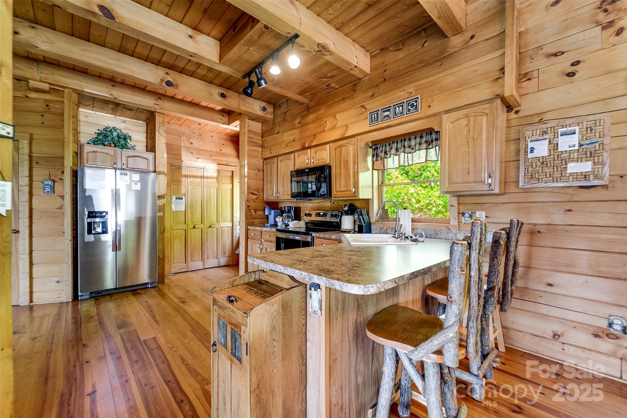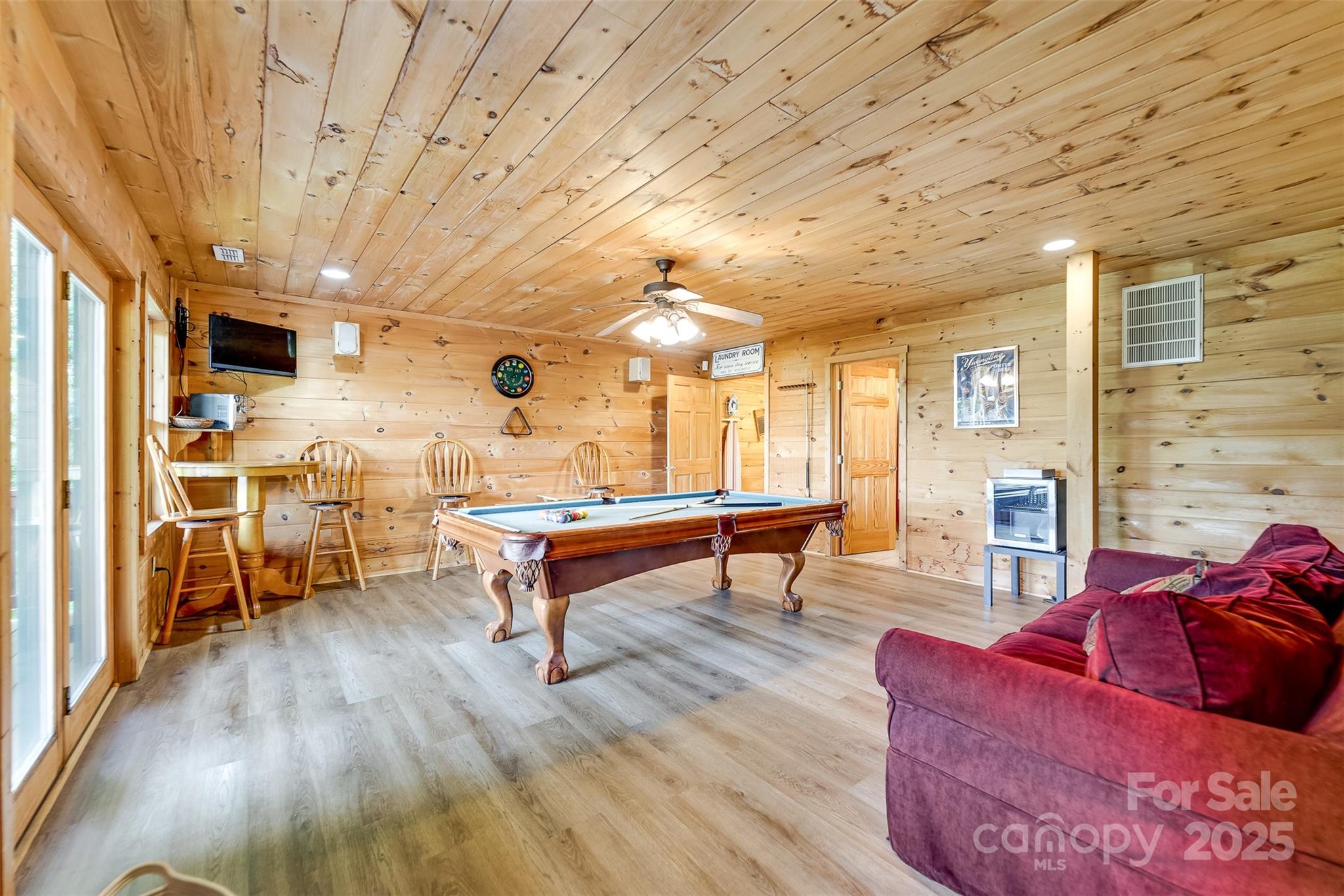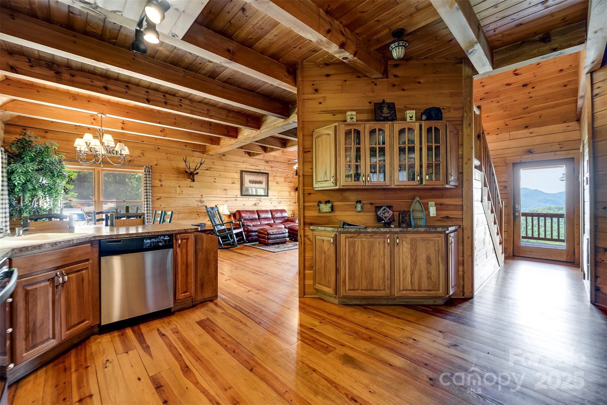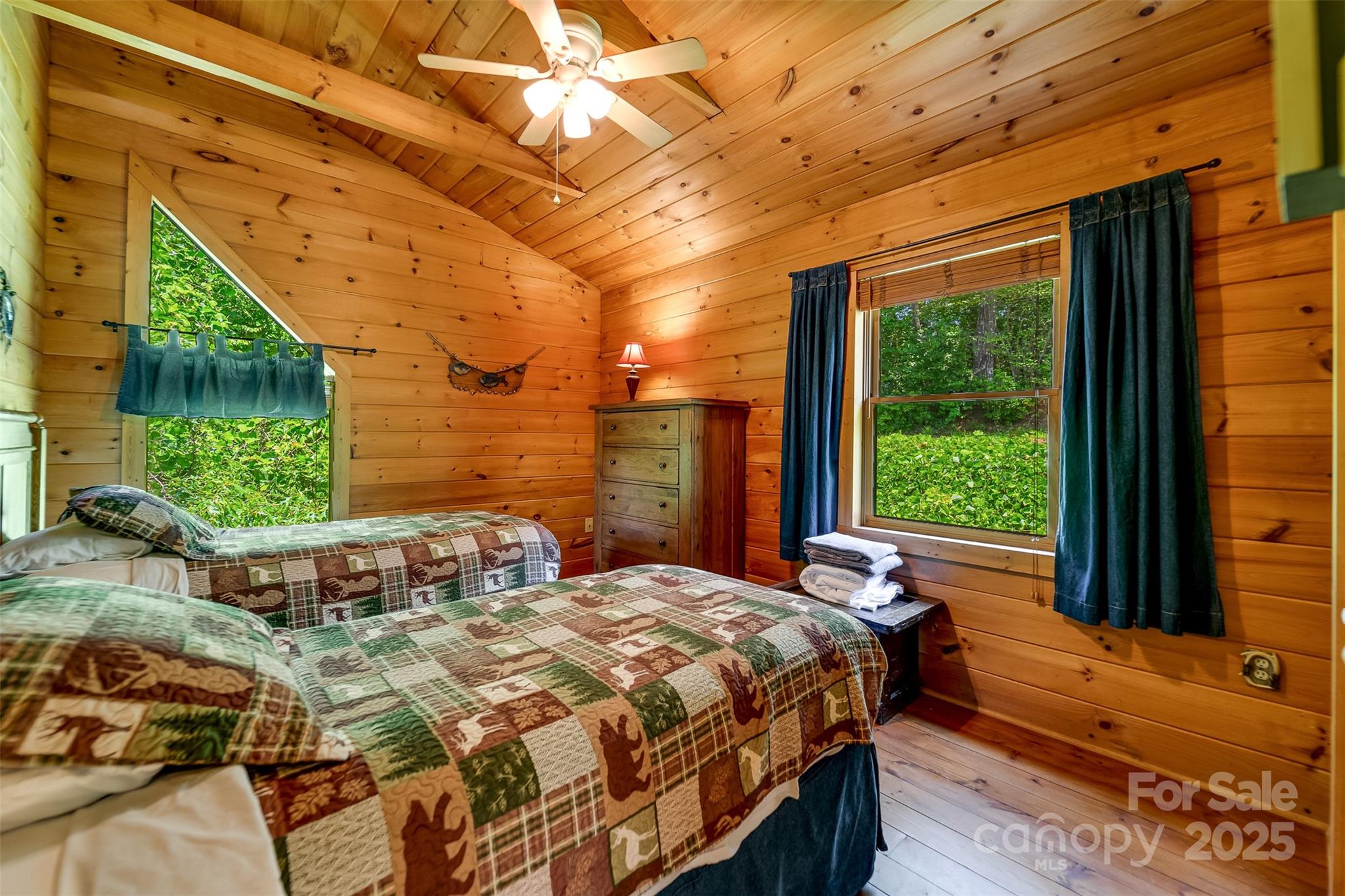 Escape to the serenity of the Smoky Mountains in this fully furnished 3 bdr, 3.5 bth log cabin perched near Ginny’s Knob, just mins from Sylva, Cherokee, Bryson City, and Franklin. Cabin offers well designed living space and panoramic long range mountain views from nearly every room. The main level features an open concept living space, a stunning stacked stone gas fireplace, and expansive windows that frame the view. The primary bedroom and ensuite bath, complete with a tiled shower and soaking tub, are also conveniently located on the main floor. Upstairs, a light filled loft area provides a versatile space for a home office, second living room, or reading nook, plus two inviting guest bedrooms. The finished basement offers a large rec room, a bonus room for added sleeping or flex space, and walk-out access to the hot tub—perfect for relaxing under the stars. Outside, guests and owners alike will love gathering around the campfire area to take in the sweeping views and mountain air.