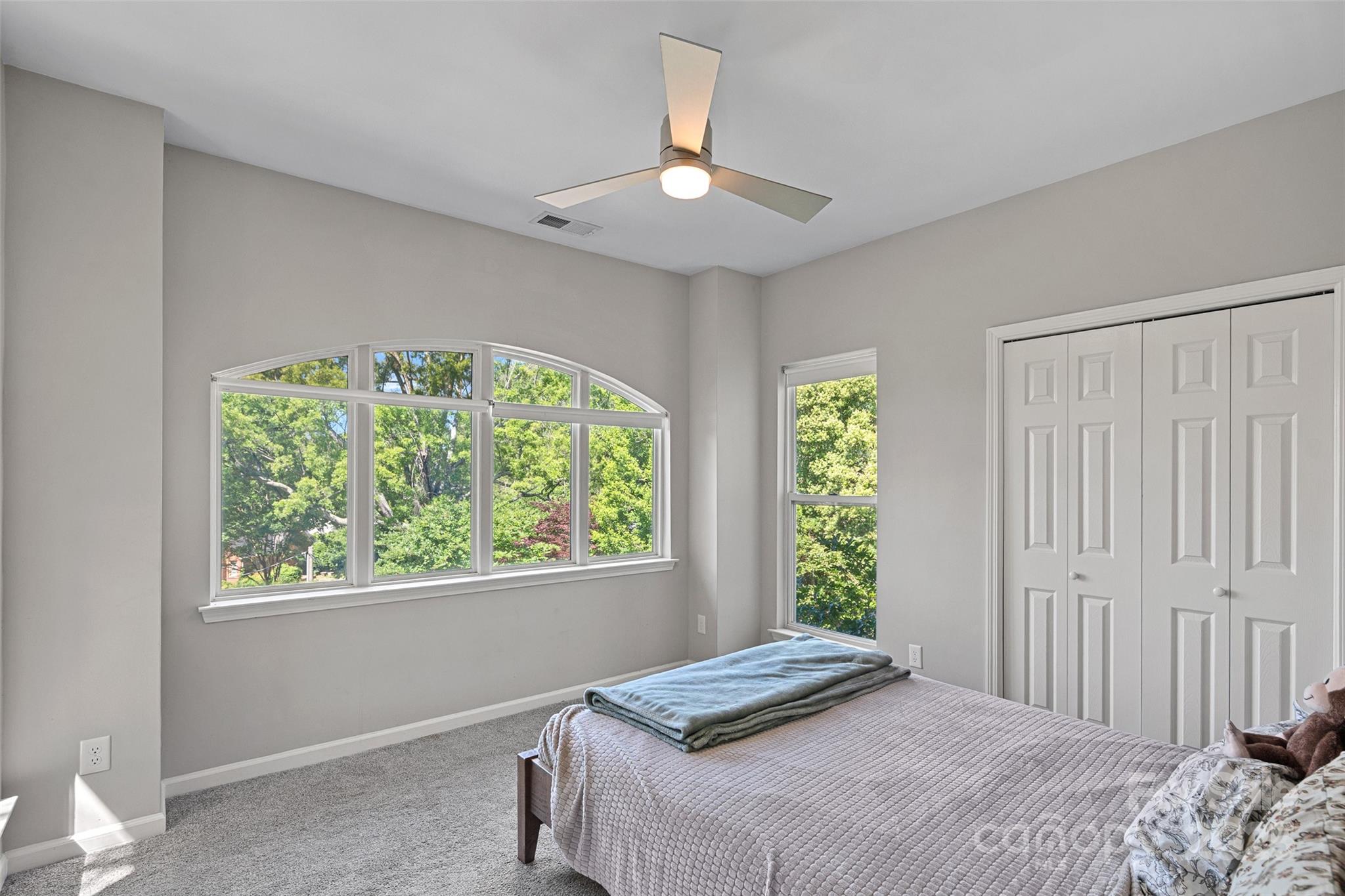 Location. Location. Location. Nestled in the heart of tree-lined Elizabeth, this beautifully updated top-floor condominium offers the best of Charlotte living. Just a 10-minute walk to Presbyterian and Mercy Hospitals, and only minutes from Uptown Charlotte, Queens University, CPCC, and Atrium Main, convenience and charm meet in perfect balance. This spacious two-bedroom, two-bath home features two covered patios—ideal for relaxing or entertaining. The modern kitchen boasts quartz countertops, a breakfast bar, and sleek stainless steel appliances. Warm wooden floors and a cozy gas fireplace create an inviting living area perfect for unwinding after a long day.