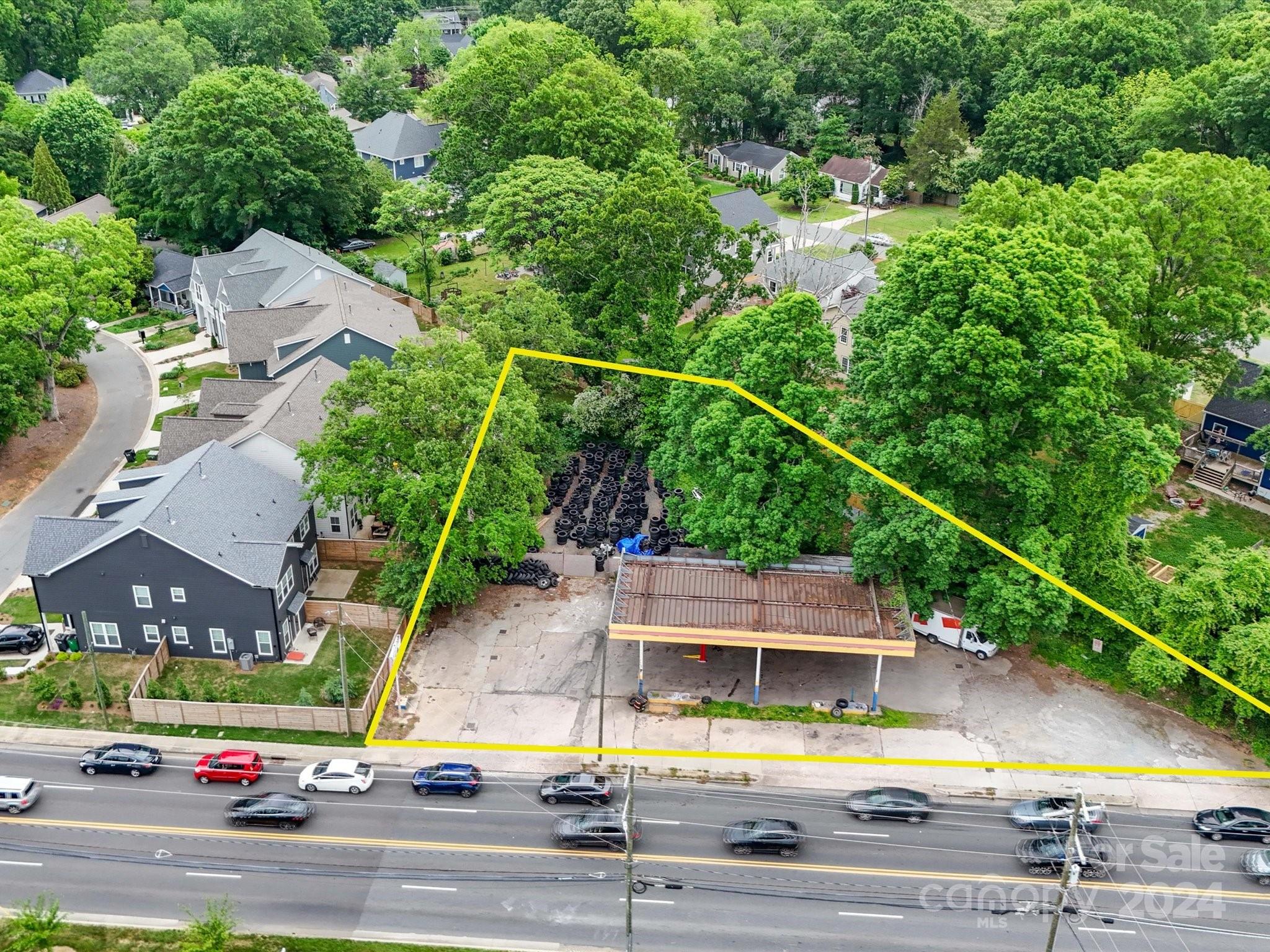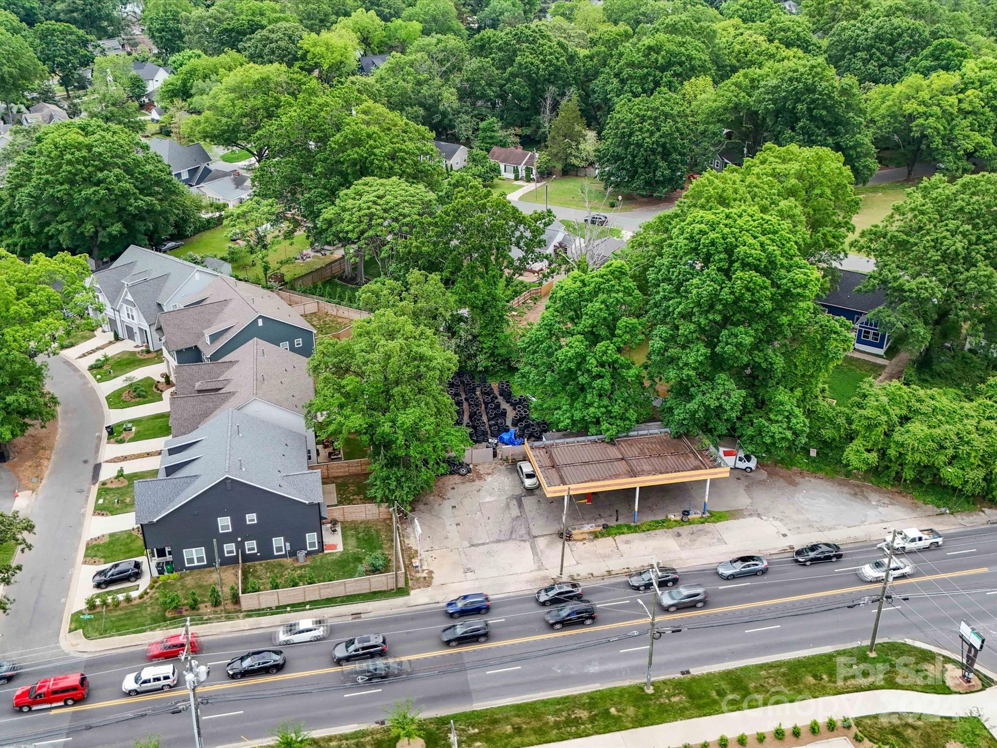 Plaza Midwood is known for its eclectic vibe, historic homes, and a vibrant mix of shops, restaurants, and entertainment venues. The area combines a rich history with a modern, trendy atmosphere, making it a popular destination for both residents and visitors. Formally a gas station this .44 acre property functions as a leased operating tire store on a month to month lease. With the fuel tanks removed this location offers endless possibilities zoned as General Commercial.