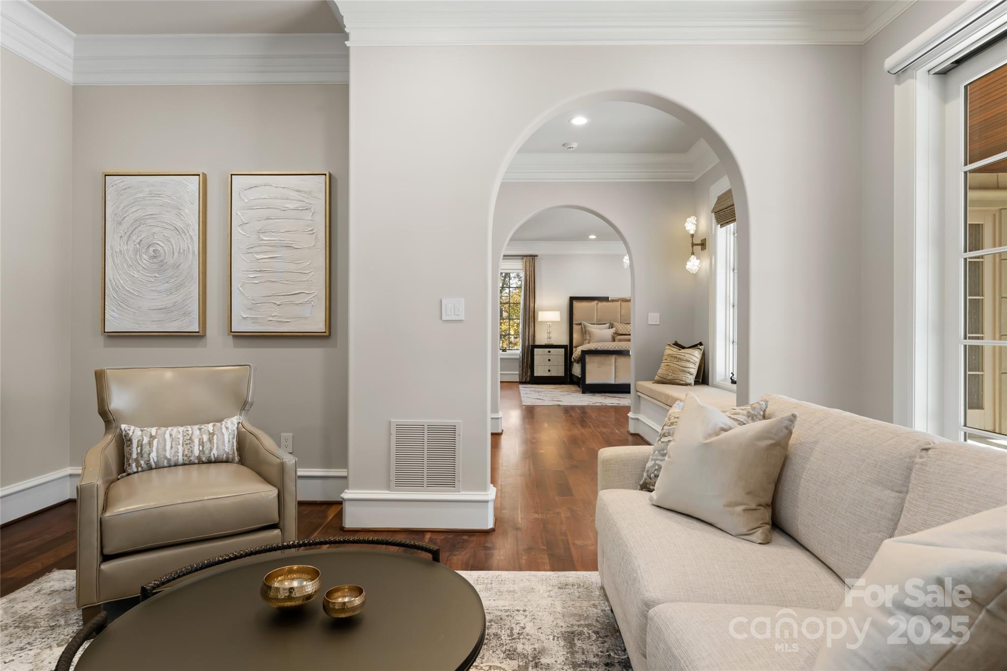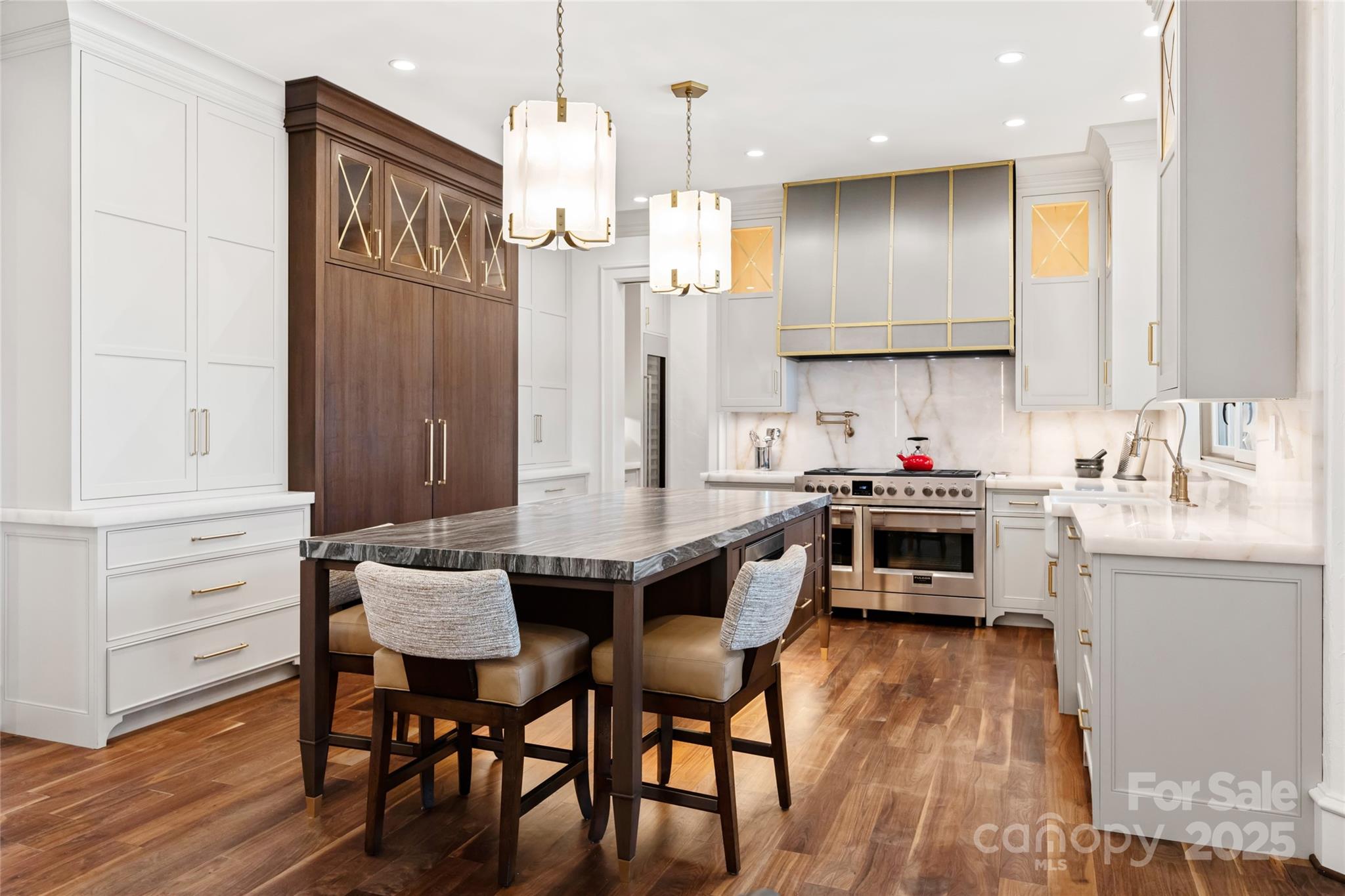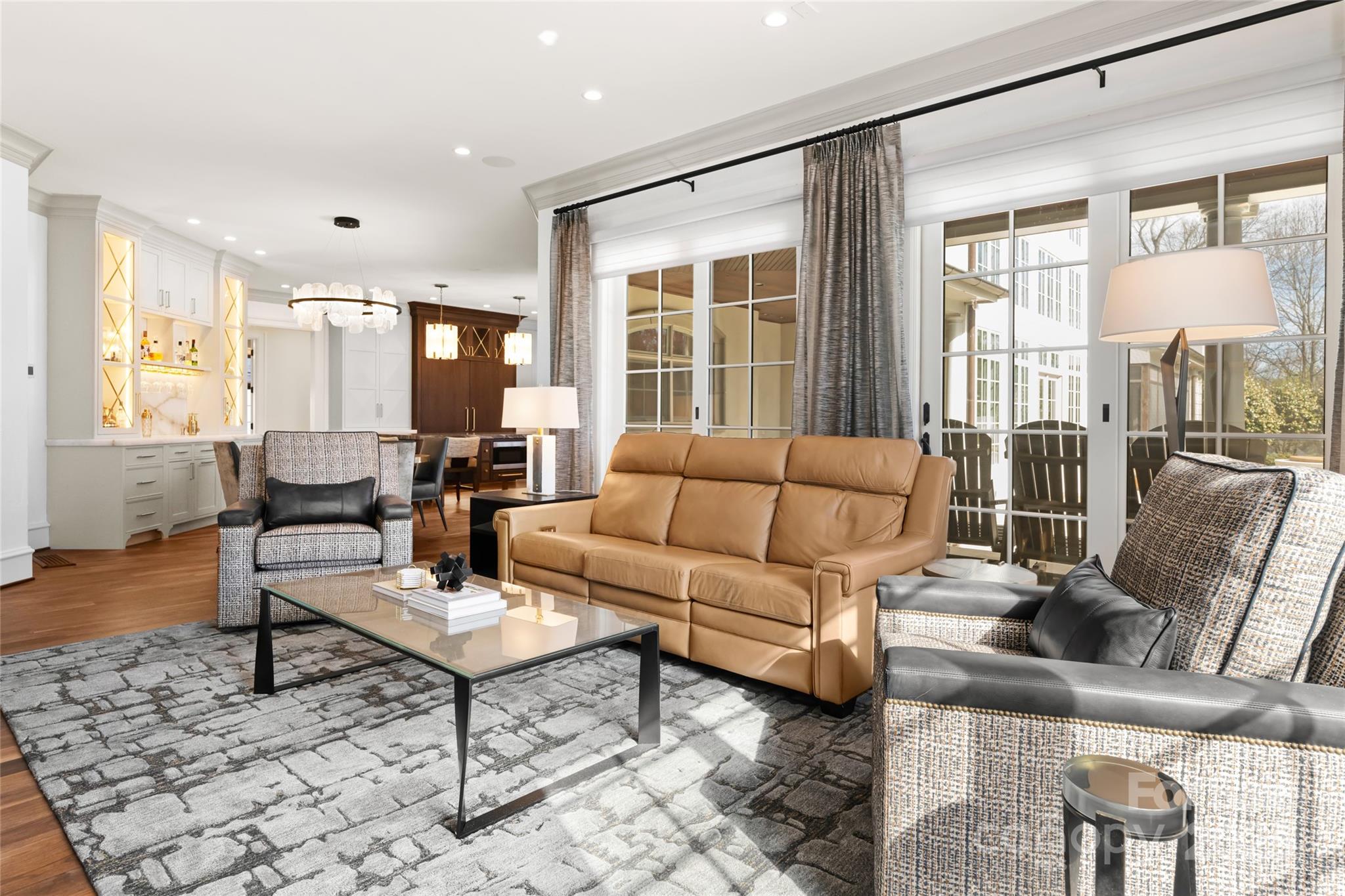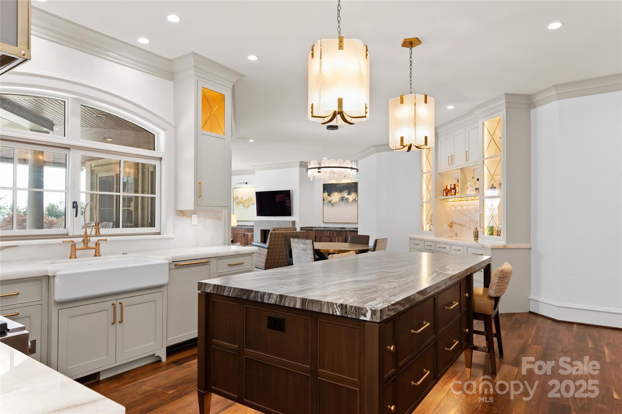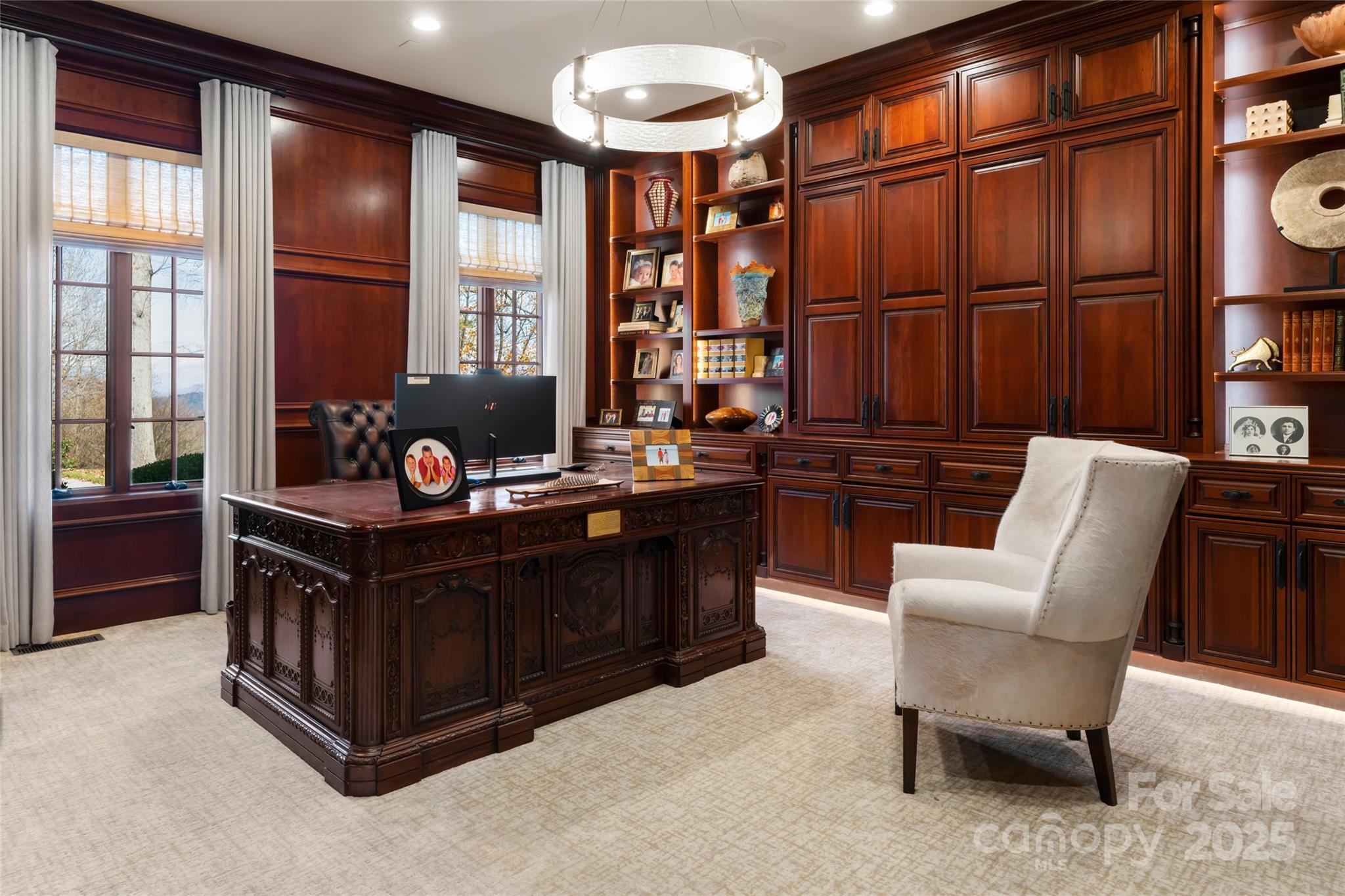 Set atop a quiet ridge in Biltmore Park, this estate spans 2.51 acres of level, landscaped land with seasonal mountain views. Designed with the timeless appeal of a French château, the residence has been fully upgraded to balance classical architecture with refined modern interiors. The two-story foyer opens to a dramatic spiral staircase, floor-to-ceiling fireplace, and expansive windows. The living room connects seamlessly to a private outdoor retreat featuring a newly refinished pool and spa, pool house, and covered porch—ideal for relaxing or entertaining. The main-level owner’s wing includes new black walnut hardwood floors, a parlor with marble fireplace, and an elegant primary bath with a backlit Cristallo quartzite wall, whirlpool tub, marble walk-in shower, quartzite benches, dual vanities, and dual closets with an in-suite washer and dryer. The re-imagined kitchen features custom cabinetry, new appliances, tower wine refrigerator, mixed-metal range hood, and a blend of granite and quartzite countertops. It opens to a cozy keeping room with fireplace and direct access to the poolside living area. Upstairs are four en-suite bedrooms, a bonus room, and a secondary laundry room. A cobblestone circular drive leads to an attached three-car garage and a detached two-car garage with a bonus room above. You will find the perfect harmony of classic architectural beauty and modern luxury within this estate, offering a lifestyle that’s unparalleled in both elegance and comfort. Welcome home to your private retreat at the pinnacle of Biltmore Park~