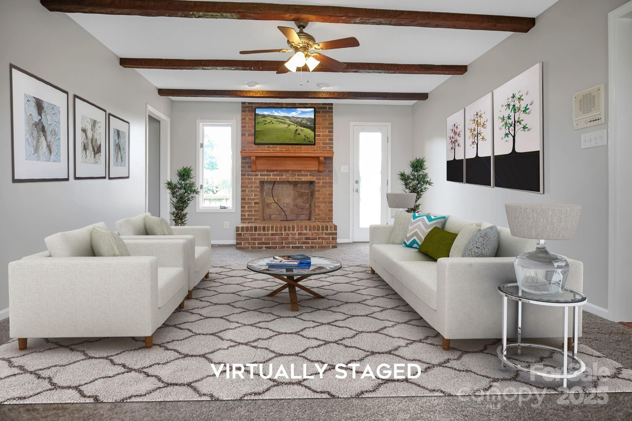 Discover this spacious 4-bedroom, 3-bathroom Kings Mountain home on a serene lot. Freshly painted with new carpet throughout, the main level offers a dining room, office, and a cozy living room with a wood-burning fireplace. The expansive kitchen features an island, electric cooktop, oven, microwave, dishwasher, and ample cabinets and counter space. The main level also includes a laundry room and a bedroom with an adjacent full bathroom. Upstairs, find two Jack-and-Jill bedrooms with a shared bath, plus a massive primary suite boasting a walk-in closet, dual vanities, a steam shower, jacuzzi tub, and a built-in sitting area. A bonus space above the two-car garage adds versatility. Outside, enjoy the large Trex deck overlooking a peaceful backyard and an adjacent orchard. All this wrapped in a stately brick exterior with vinyl siding accents—truly a must-see home!