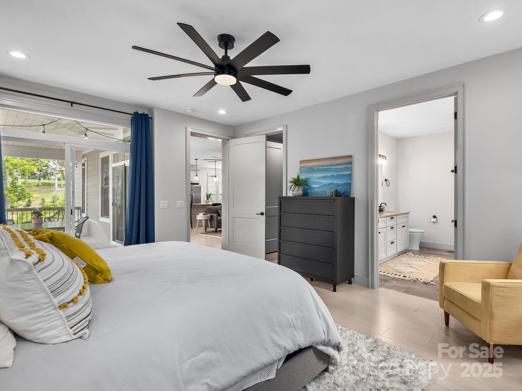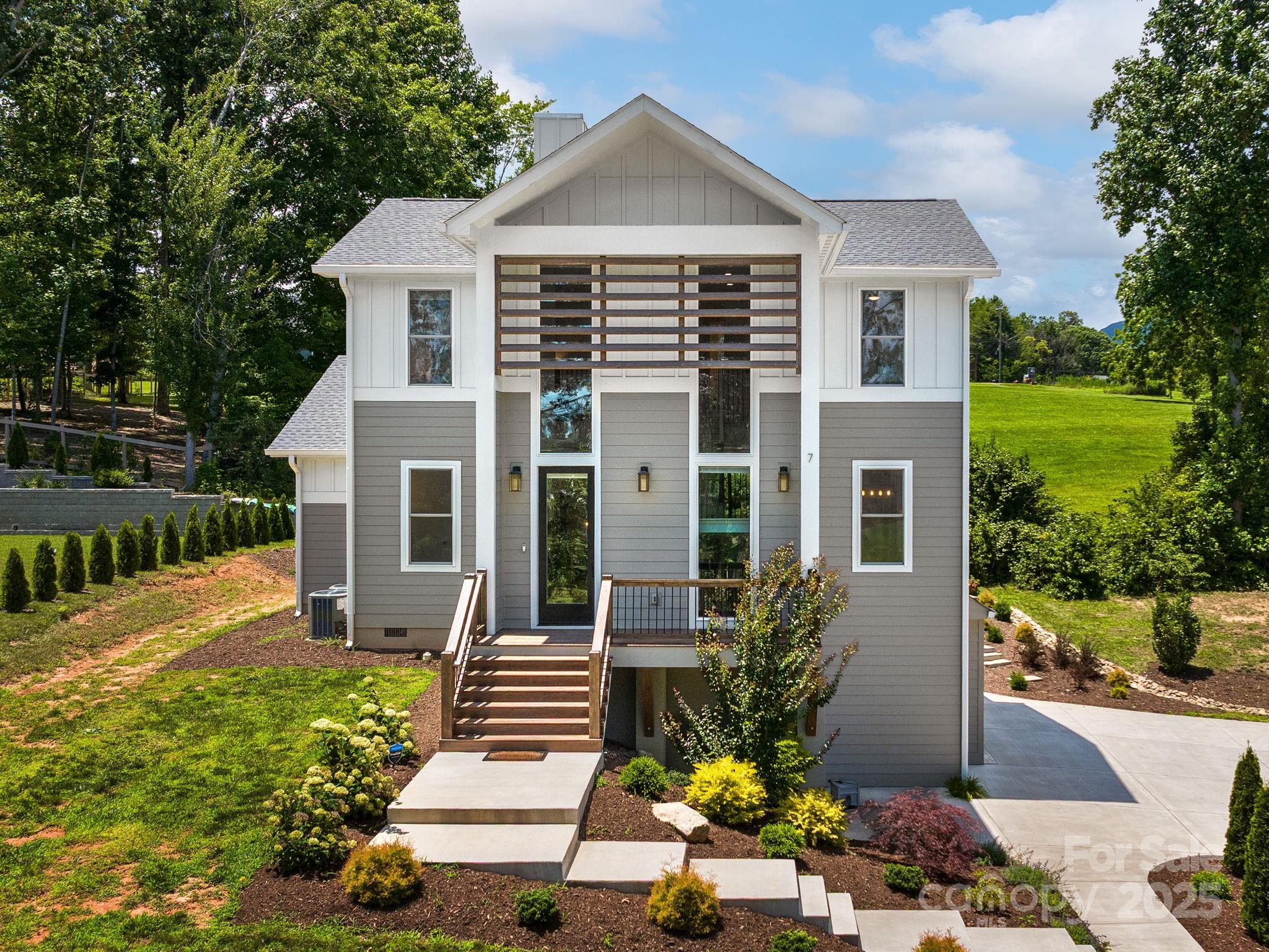 Welcome to effortless modern living in this striking contemporary home, tucked within a small gated community just 20 minutes from the vibrant heart of downtown Asheville. Nearly new construction, this residence impresses the moment you step inside with dramatic ceiling heights, an open stairwell, and walls of windows that flood every space with natural light. Designed for both style and comfort, each bedroom offers the privacy of its own en suite bath, perfect for guests or family. The bright, open-concept living area flows seamlessly to a covered back deck overlooking a fully fenced backyard, an ideal spot for morning coffee, casual entertaining, or letting pets roam freely. Additional perks include a spacious two-car garage and an unfinished room ready to become a gym, hobby studio, or extra storage, whatever suits your lifestyle best. Modern living, gated peace of mind, and easy access to Asheville’s dining, breweries, and outdoor adventures, it’s all here, waiting for you.