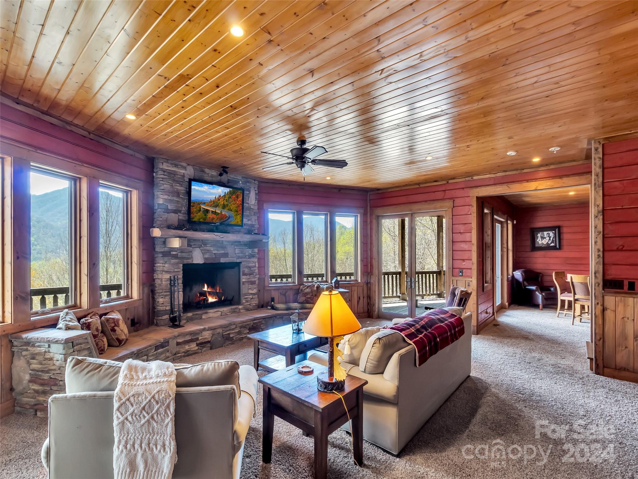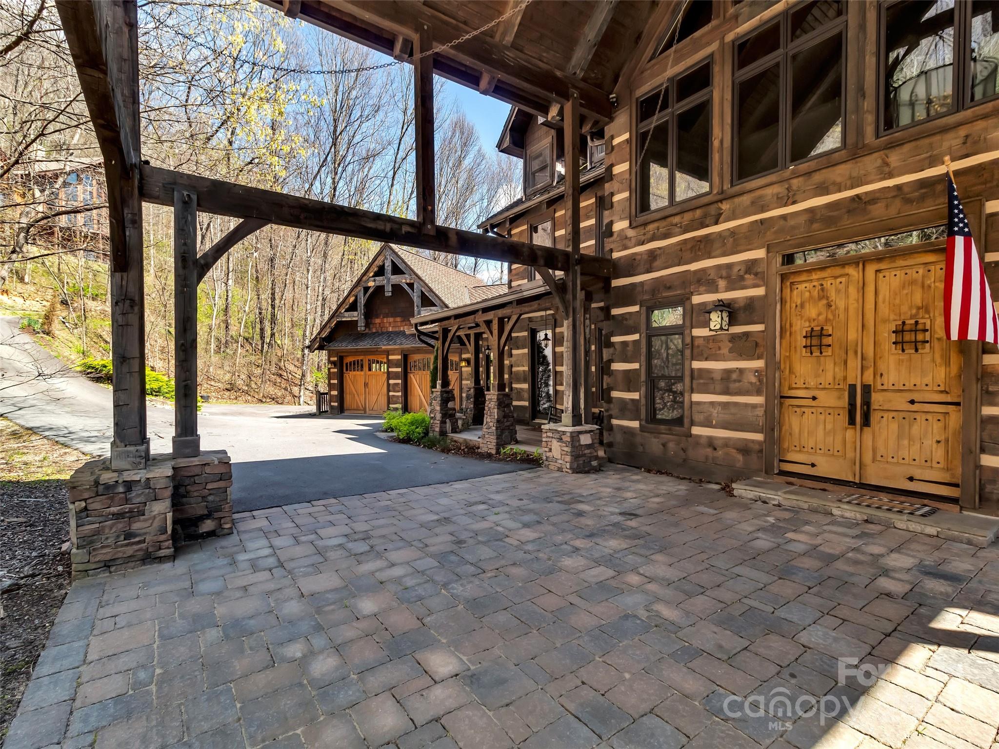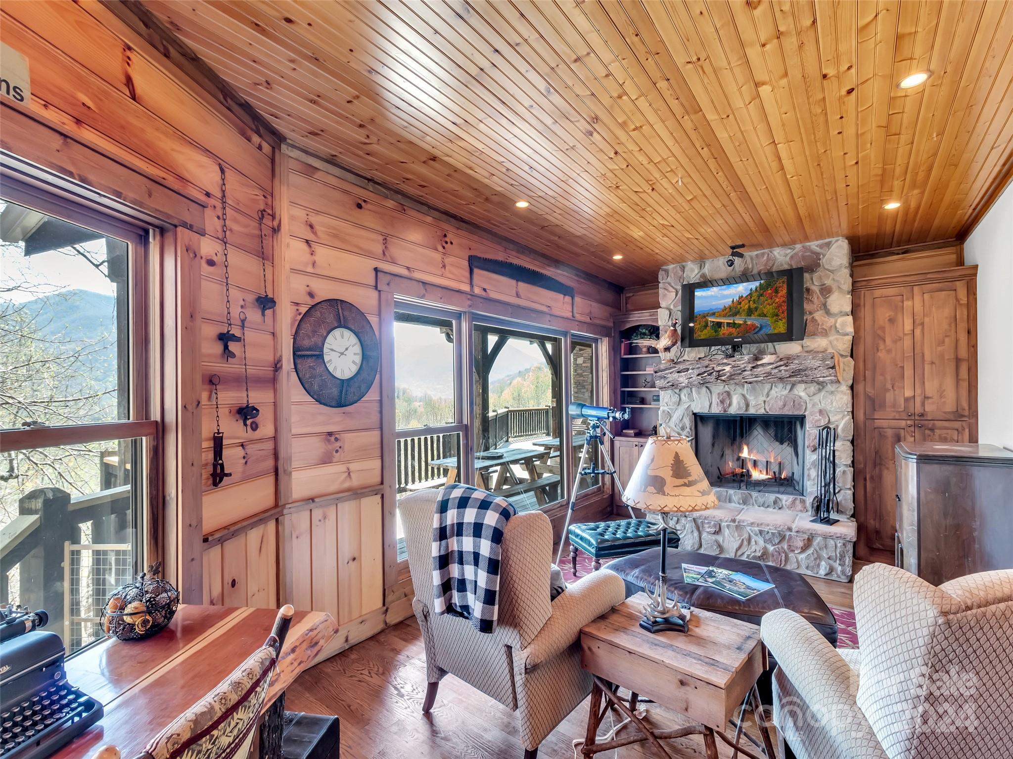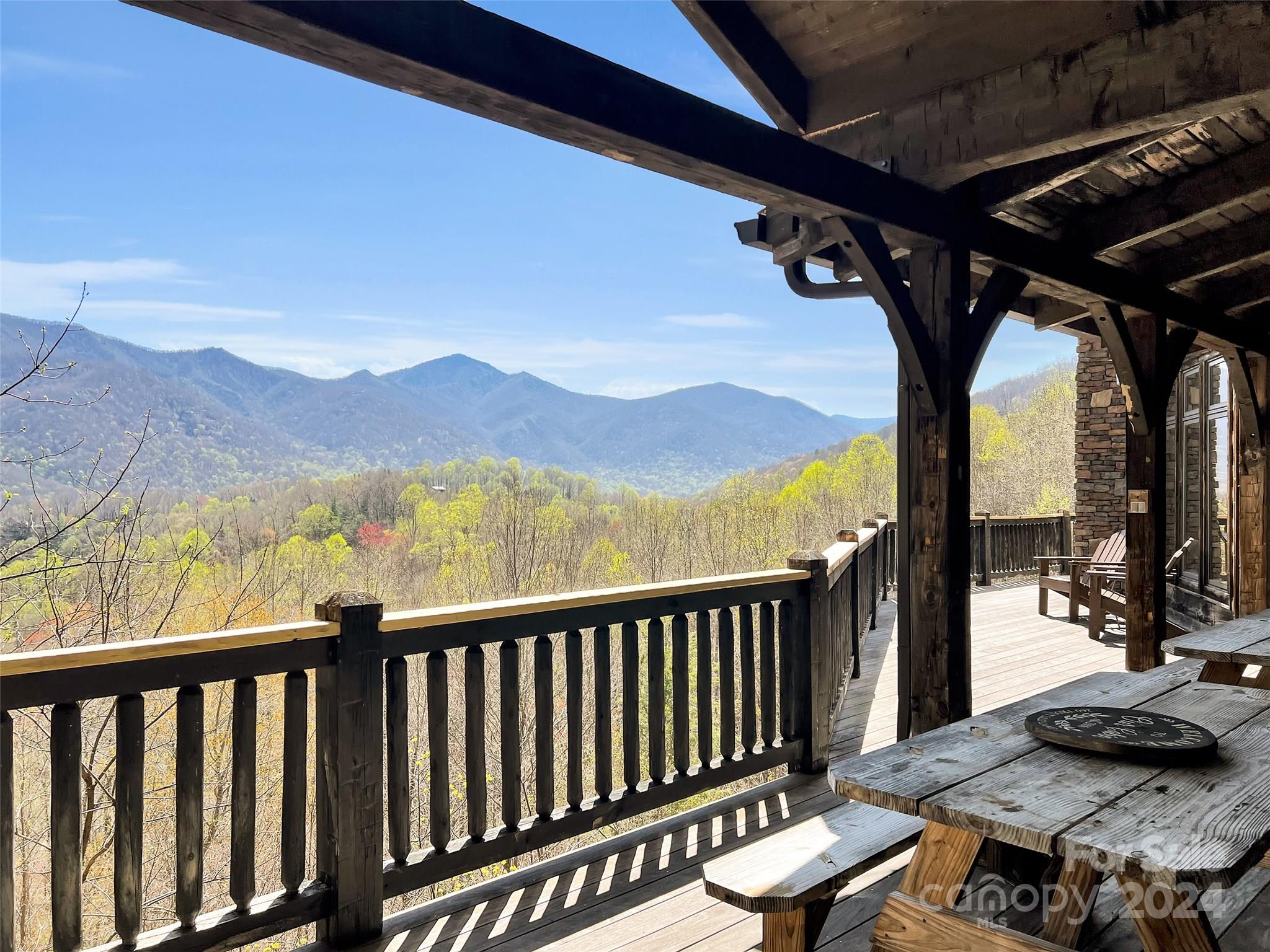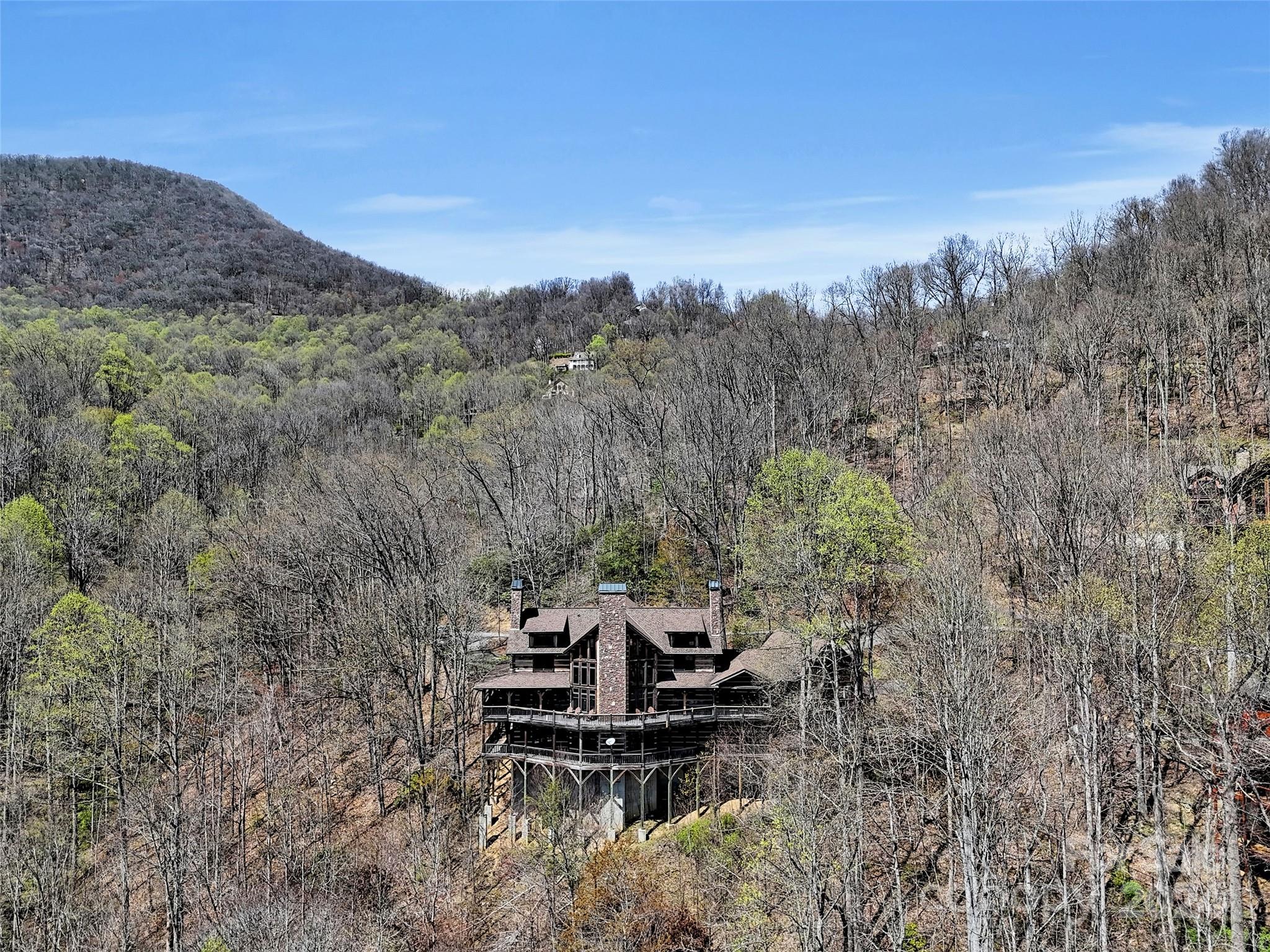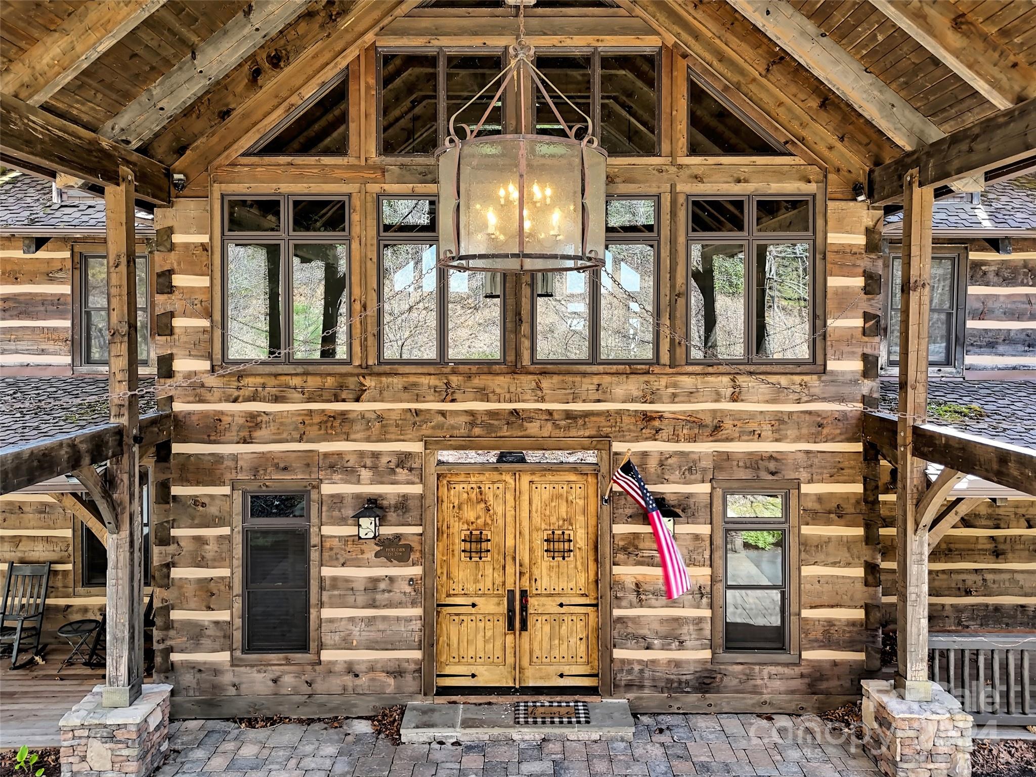 Price drop $555k/($3.3m+ recent appraisal), IMMEDIATE EQUITY & STR $100k+ per year,extraordinary 5 BR/5.5 bath log home, sprawling 8,300+ sq ft on 2.11-acres in tranquil Scarlet Oaks community nestled within Maggie Valley CC amenities. This architectural masterpiece embodies luxurious mtn. living w/open, airy floor plan, private library, bathed in natural light, complements the awe-inspiring 29+ ft floor-to-ceiling custom stone FP, gourmet kitchen features grand island w/built-in wine rack, bespoke cabinetry, granite counter tops, breakfast bar, & top-tier appliances, flowing effortlessly to generous din area & great rm showcasing panoramic mountain vistas. The primary suite is a sanctuary w/own stone FP, decadent jet soaker tub,spacious walk-in shower. Upper level offers 3 BR 2 baths, versatile open loft overlooking the expansive great rm. The basement elevates entertainment w/large family rm featuring another striking stone fireplace,2 rec rooms, bonus room, & full bath.