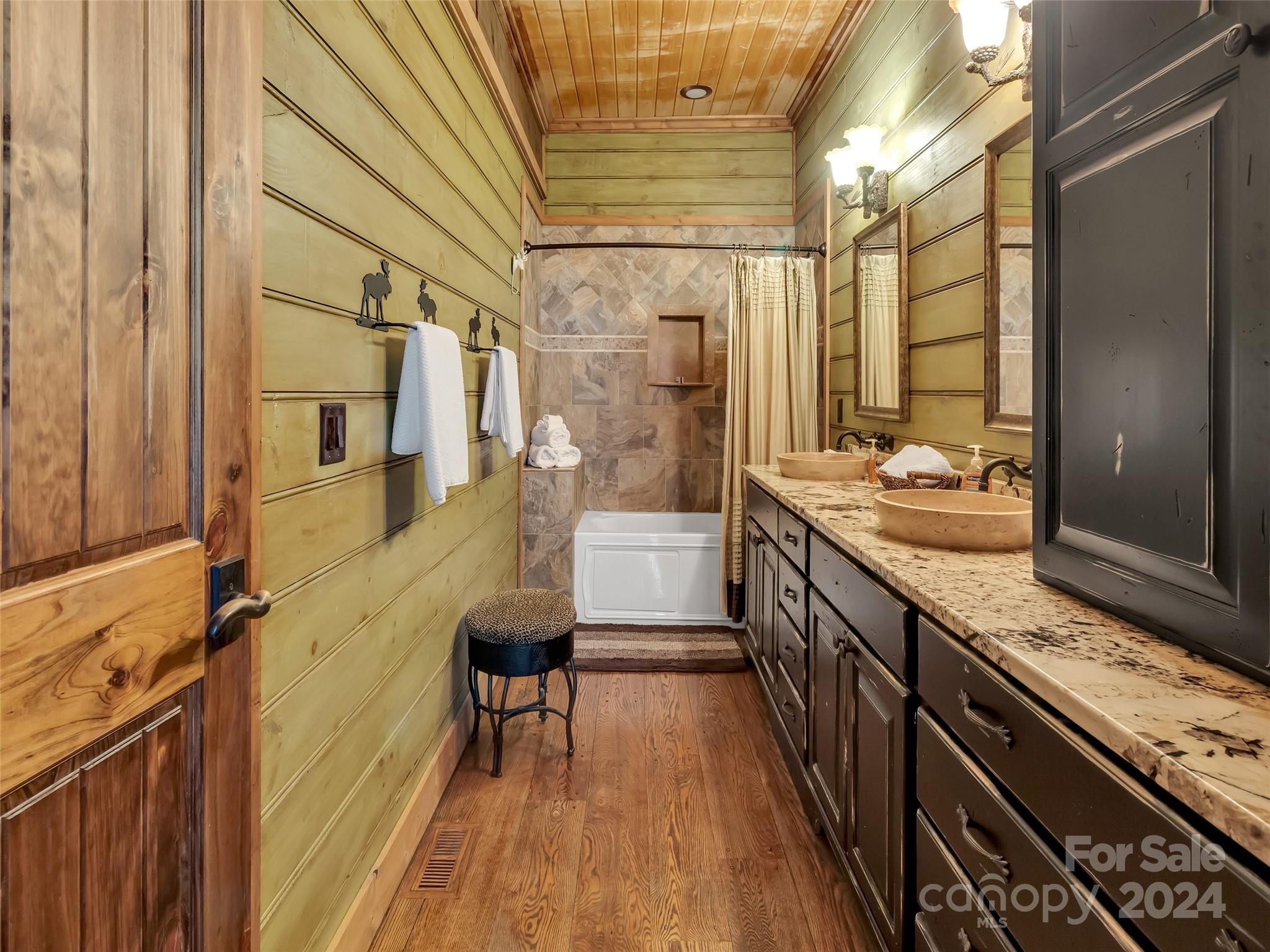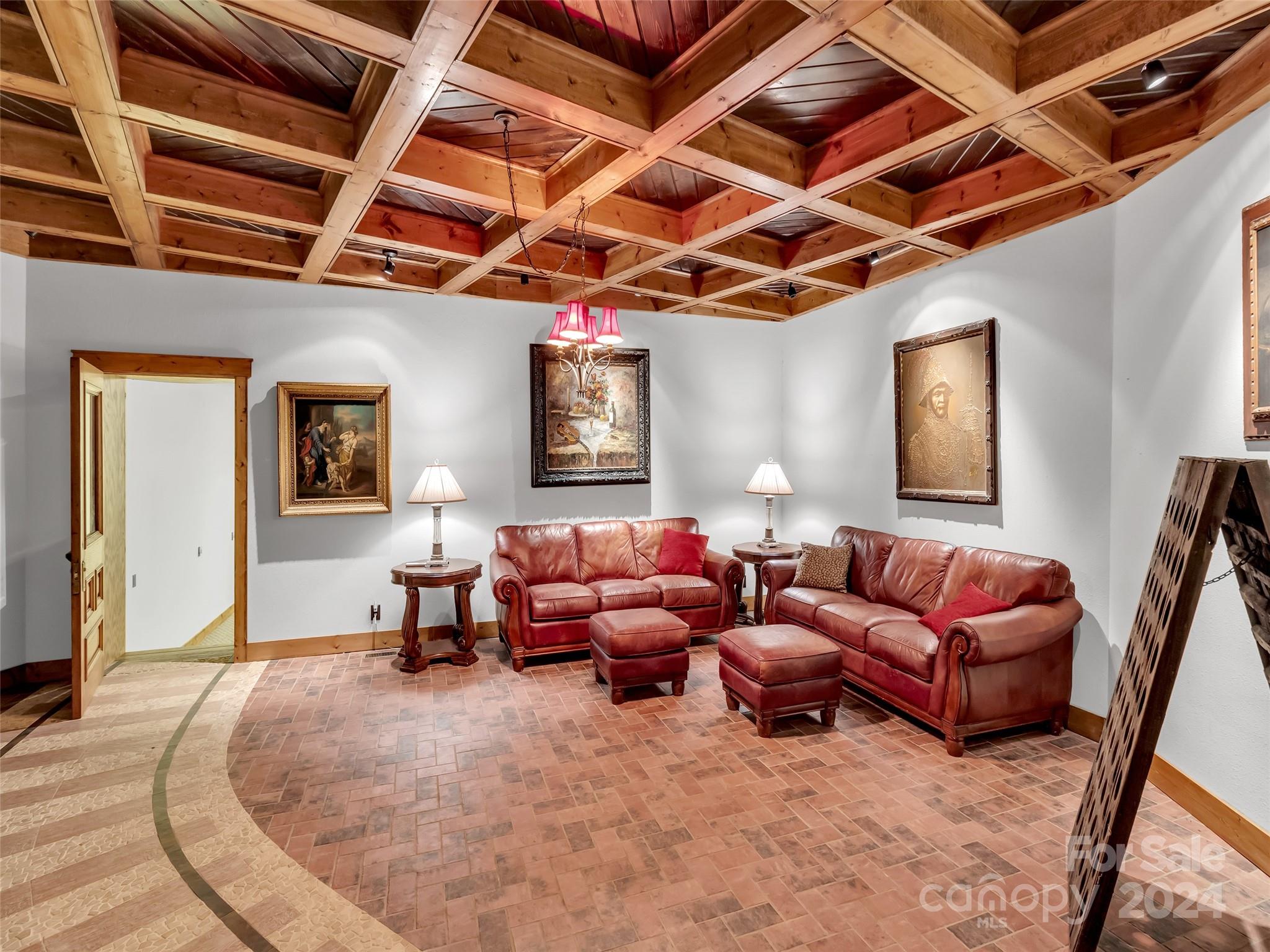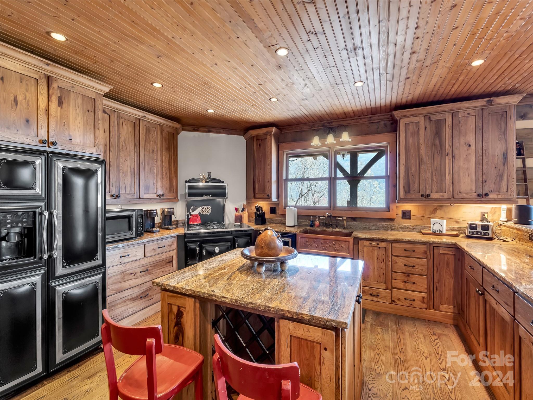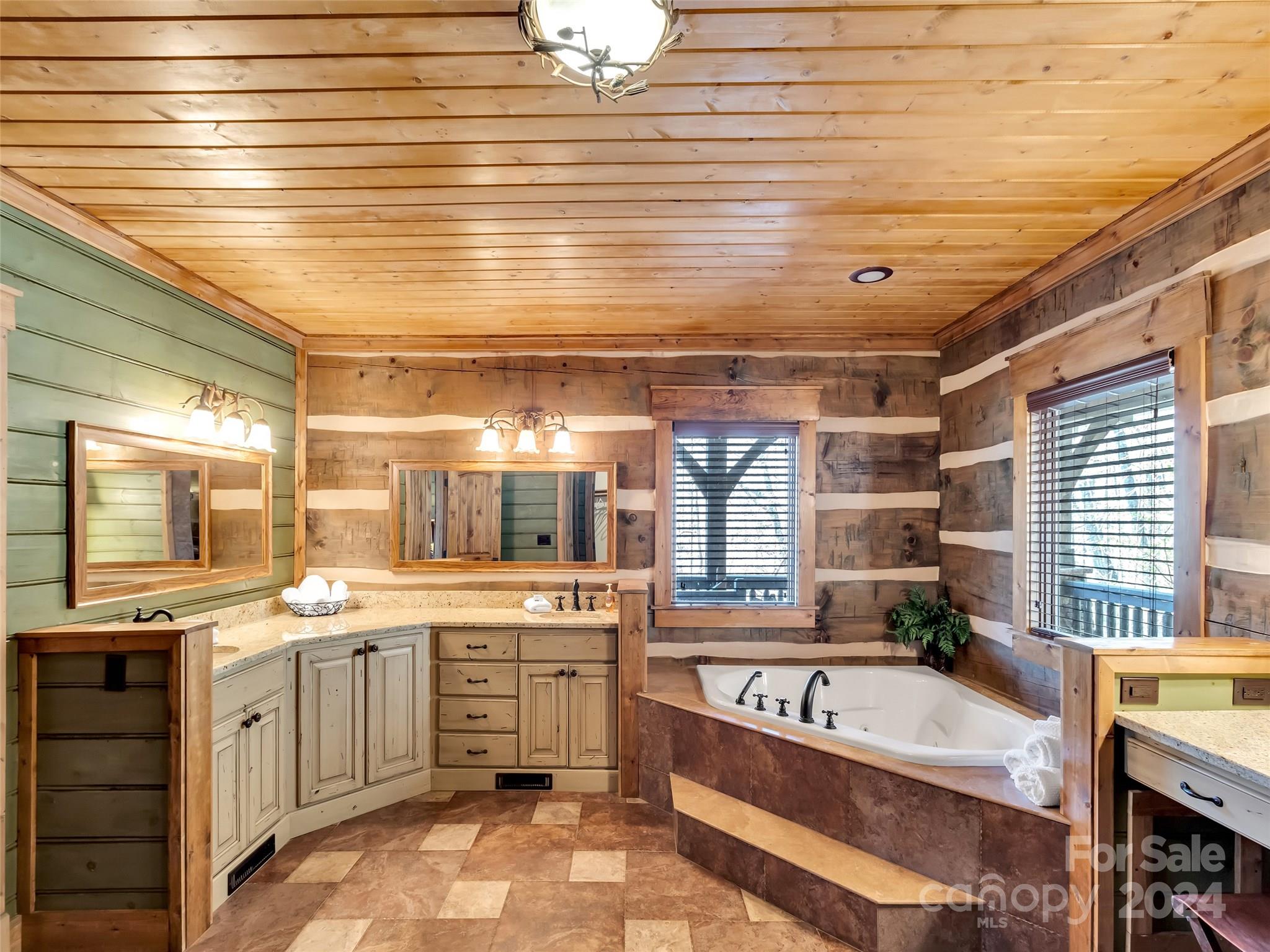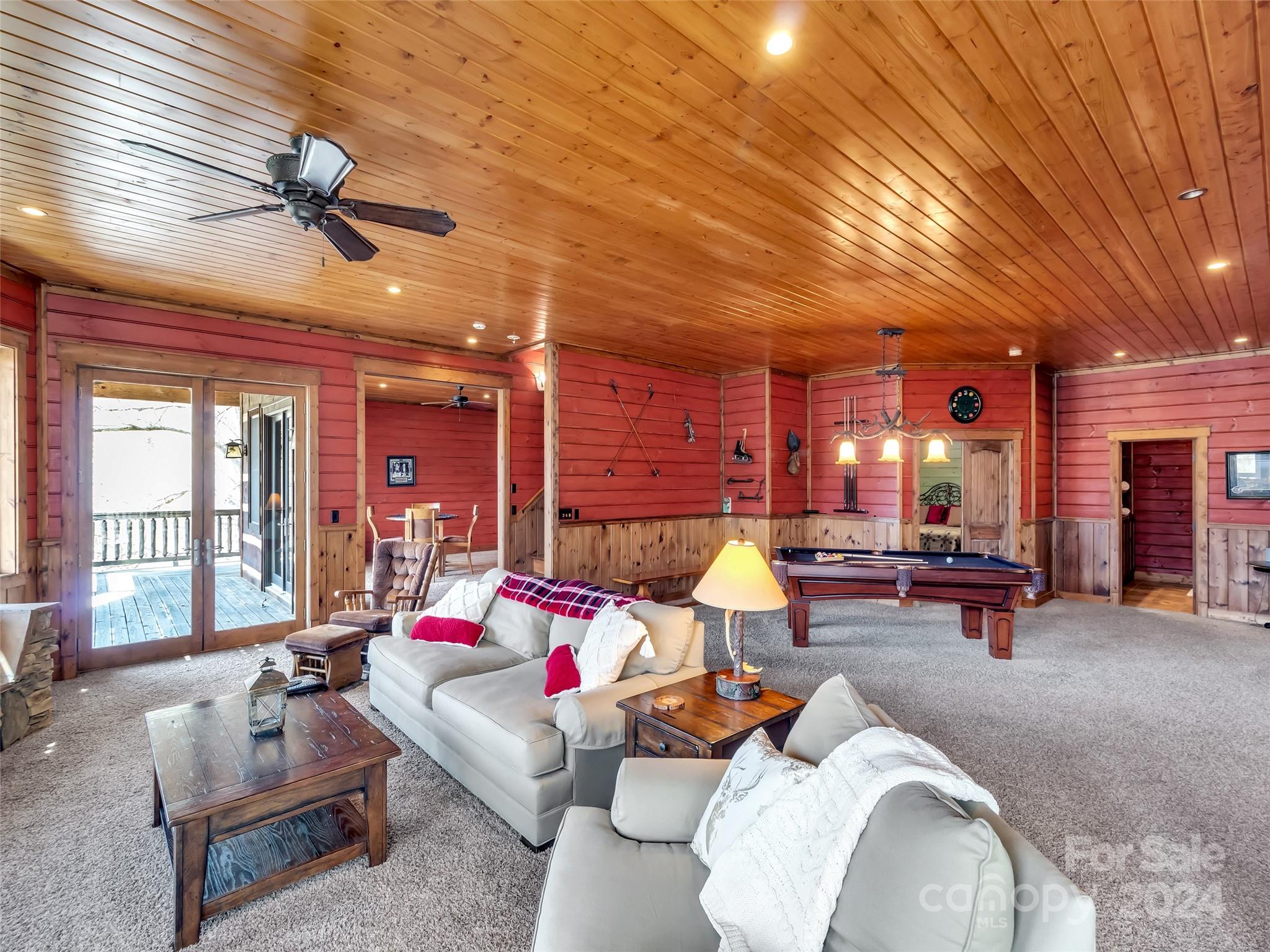 Price drop $555k/($3.3m+ recent appraisal), IMMEDIATE EQUITY & STR $100k+ per year,extraordinary 5 BR/5.5 bath log home, sprawling 8,300+ sq ft on 2.11-acres in tranquil Scarlet Oaks community nestled within Maggie Valley CC amenities. This architectural masterpiece embodies luxurious mtn. living w/open, airy floor plan, private library, bathed in natural light, complements the awe-inspiring 29+ ft floor-to-ceiling custom stone FP, gourmet kitchen features grand island w/built-in wine rack, bespoke cabinetry, granite counter tops, breakfast bar, & top-tier appliances, flowing effortlessly to generous din area & great rm showcasing panoramic mountain vistas. The primary suite is a sanctuary w/own stone FP, decadent jet soaker tub,spacious walk-in shower. Upper level offers 3 BR 2 baths, versatile open loft overlooking the expansive great rm. The basement elevates entertainment w/large family rm featuring another striking stone fireplace,2 rec rooms, bonus room, & full bath.