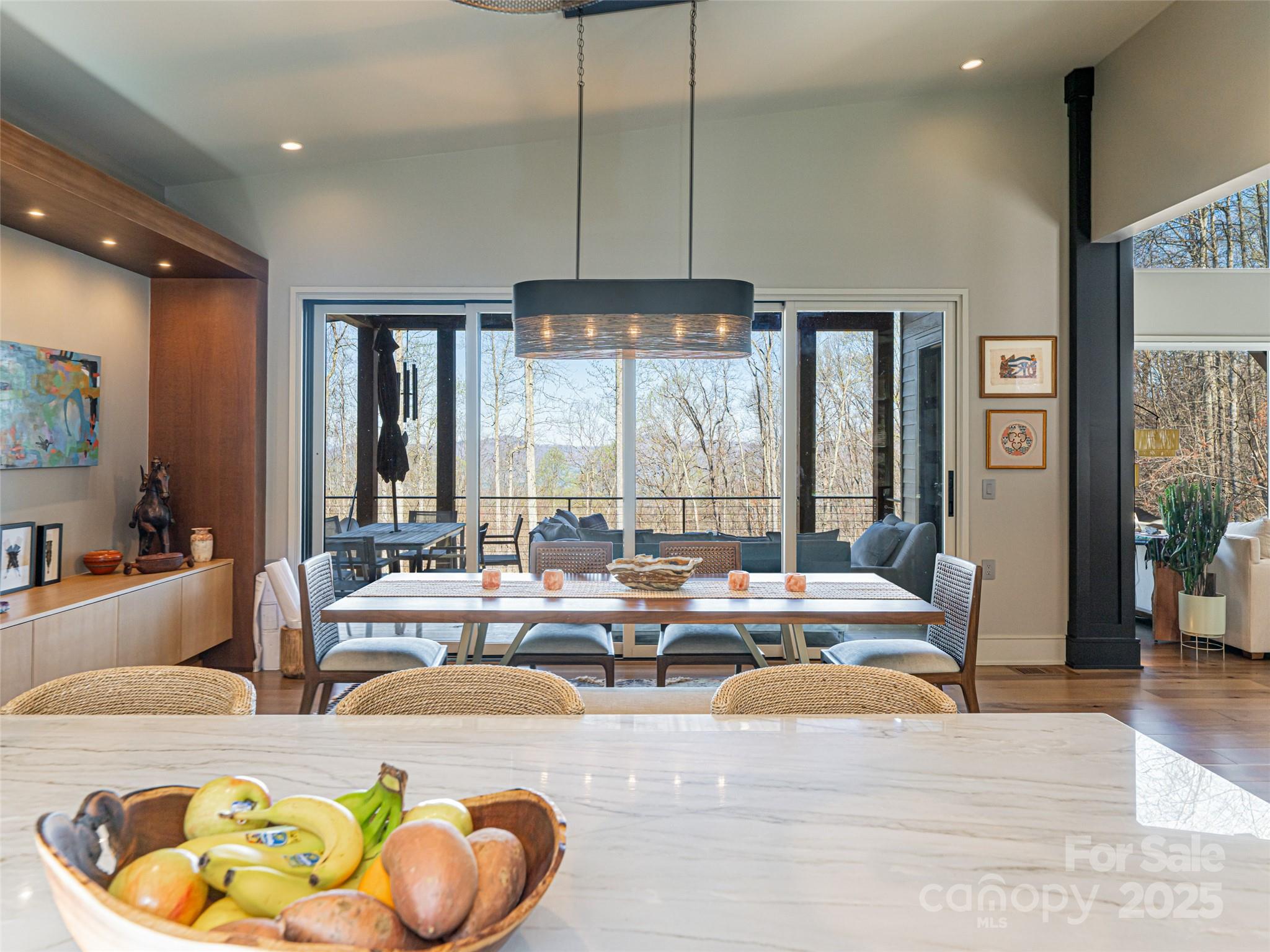 Perfect combination of luxury and style in this exquisite custom contemporary Livingstone home. Beautifully sited in High Hickory, a luxury mountain community (more information attached) on a level lot with long range mountain views. Sumptuous finishes throughout include vaulted ceilings & metal trim forged by a local artisan, 9 ft doors, walls of windows and plaster finished walls, quartzite & butcher block countertops & an expansive kitchen island, the perfect combo of covered and open outdoor decks, a spacious main level office filled with custom built-ins & endless views from almost every room. Terrace level offers two guest bedrooms and baths, a bonus space ideal for an exercise room, and an inviting family room with a dry bar. Also terrace level has a (non-contiguous) meditation room plus a massive storage room which would make a great art studio/workshop (neither included in SF). House wired for a generator and electric car. Separate detailed list of finishes available.