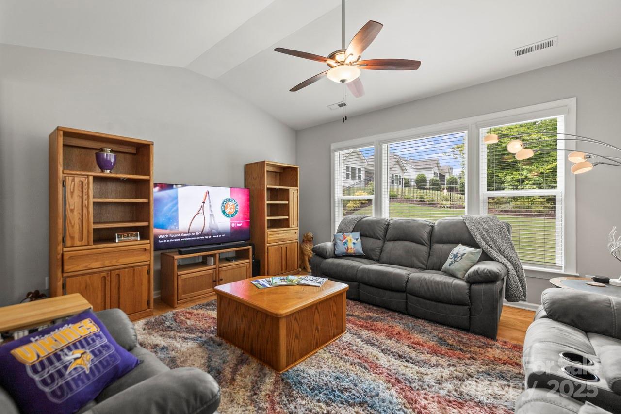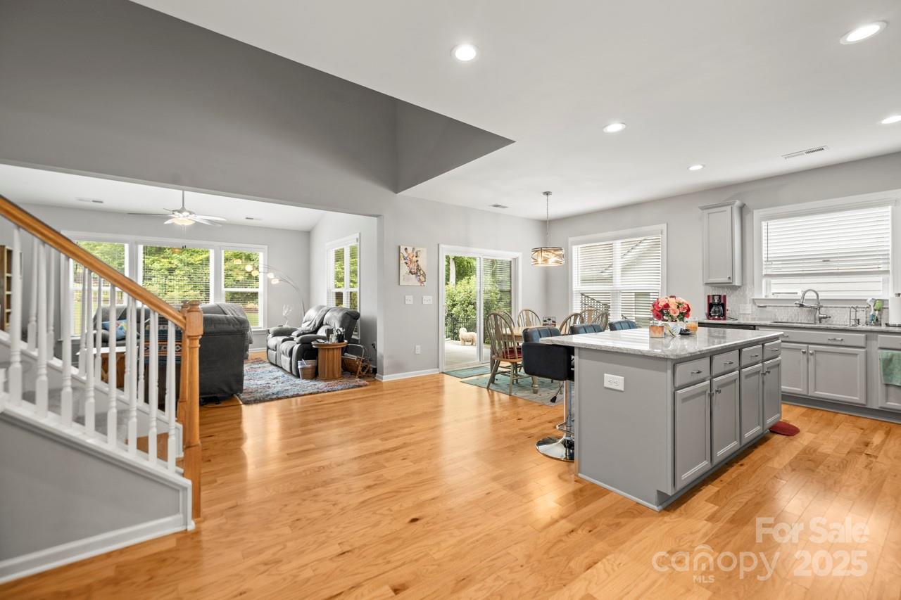 Highly sought after home on a Premium lot in the coveted Killians Pointe community. This well cared for home features an open floor plan & many upgrades were installed to give a practical, inviting feel. Wood floors greet you upon entry & extend through the main living areas. A vaulted ceiling graces the family room which opens to the dining area & stunning kitchen. Gray cabinets here offer subtle sophistication. An eat-in center island adds a cozy touch. Flex space w/ built-ins makes a great office or lounge. The primary BR overlooks the backyard & offers a tray ceiling & ensuite bath w/ tiled walk-in shower. Additional bedroom & fun bath on the main level. Upstairs creates a separate retreat—2 BR's, a loft & full BA offer space for guests, teens & a perfect place to watch the big game. This lot was carefully selected by the owners, it offers a large, fenced back yard that abuts open common area for added privacy! Enjoy the community pool, clubhouse & playground just minutes away!
