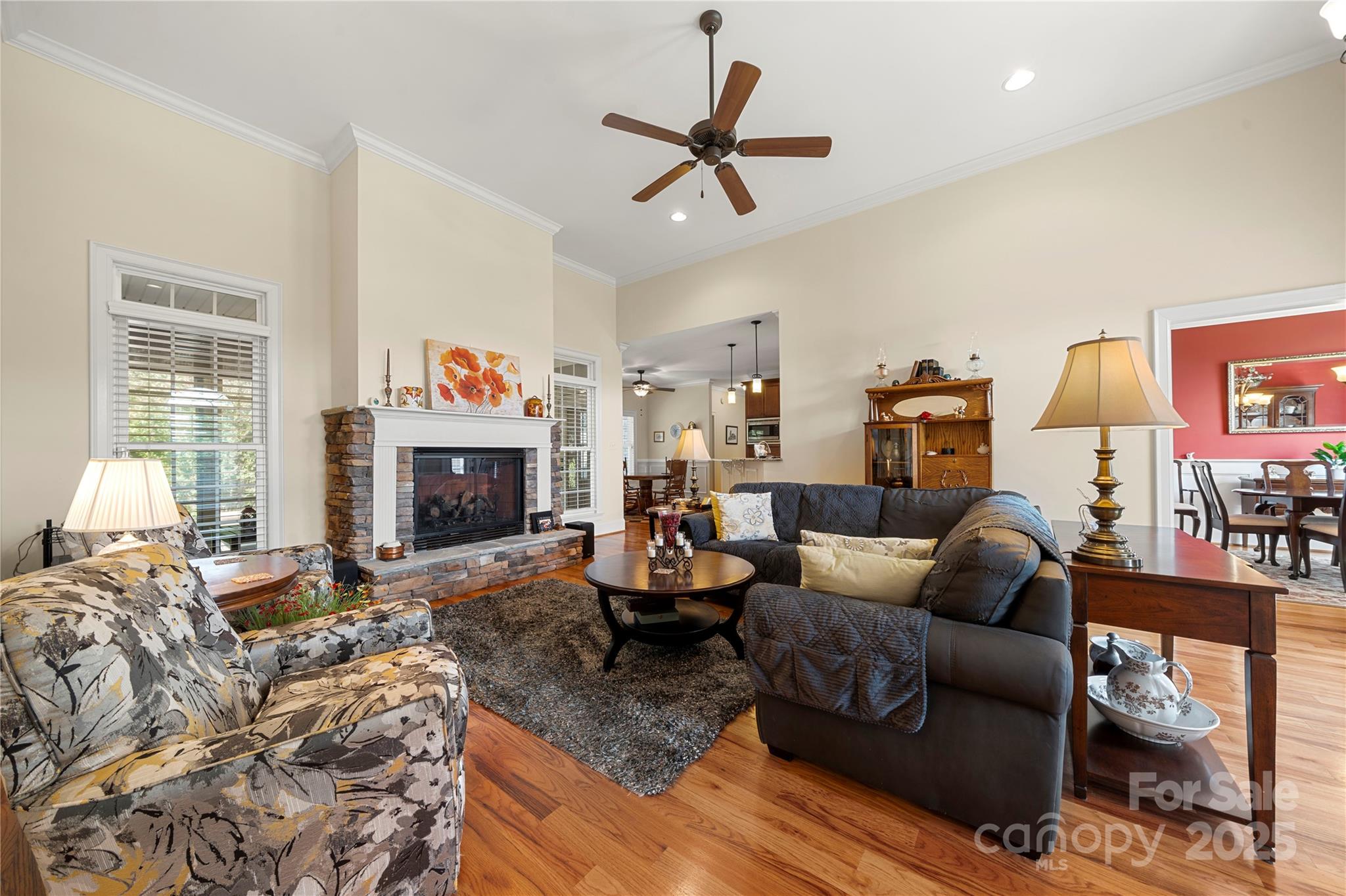 Awesome opportunity to call this full brick split bedroom open floor plan on nearly an acre and half convenient to Rock Hill and Hwy 77 your own! Kitchen offers abundant work and storage space, gas cooktop, stainless steel appliances, dual ovens, pantry. Breakfast nook opens to screened porch perfect for morning coffee or evening refreshments. Bright and airy living area features a fireplace. Dedicated dining room. Huge primary suite offers soaking tub, shower, dual vanities, large wic. Two more bedrooms share full bath. Huge bonus room up. Large laundry room w/ cabinets & sink, powder room, ceiling fans, 2 car garage, quoin corner detail, mature landscaping. Large concrete patio leads to lovely yard. Home has a whole house Generac system. New HVAC units in 2023. Catawba Shores offers a clubhouse with pool, walking trails, canoe launch, and immense green space. This is the one you have been searching for!