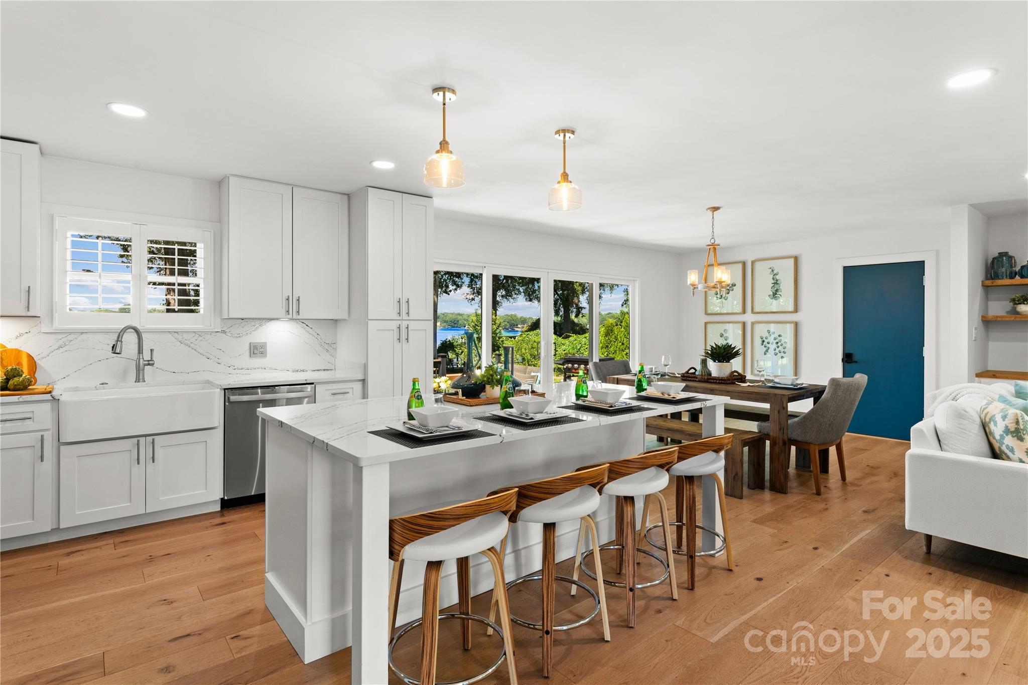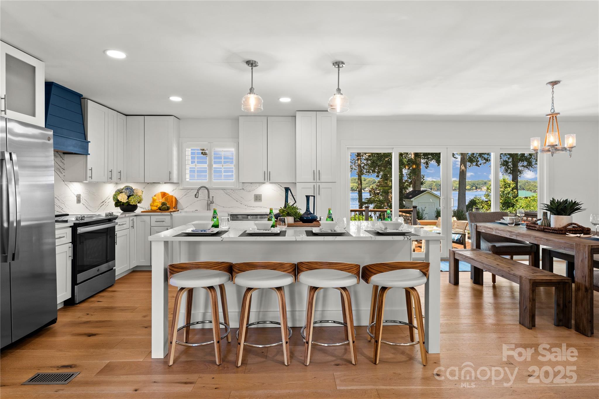 This immaculate updated Lake Norman waterfront retreat captures breathtaking west-facing sunset views and offers the ultimate in lakefront luxury. Designed for both relaxation and entertaining, the light-filled split-level layout features a spacious open-concept main living area, crisp modern finishes, and seamless indoor-outdoor flow to expansive decks, patios and custom multi level dock overlooking the water. The home includes three spacious bedrooms with two full bats on the upper level—one bedroom and bath on lower level plus a custom bunk room with six twin beds. With direct lake access and 500+ miles of shoreline to explore, this property is a true haven for embracing lake living at its finest. Less than 10 minutes from I-77 and local attractions, this turnkey home is an exceptional opportunity as a private lakeside escape or luxury vacation rental. This home is currently being used as a vacation rental and is income producing. All furnishings convey with the property.