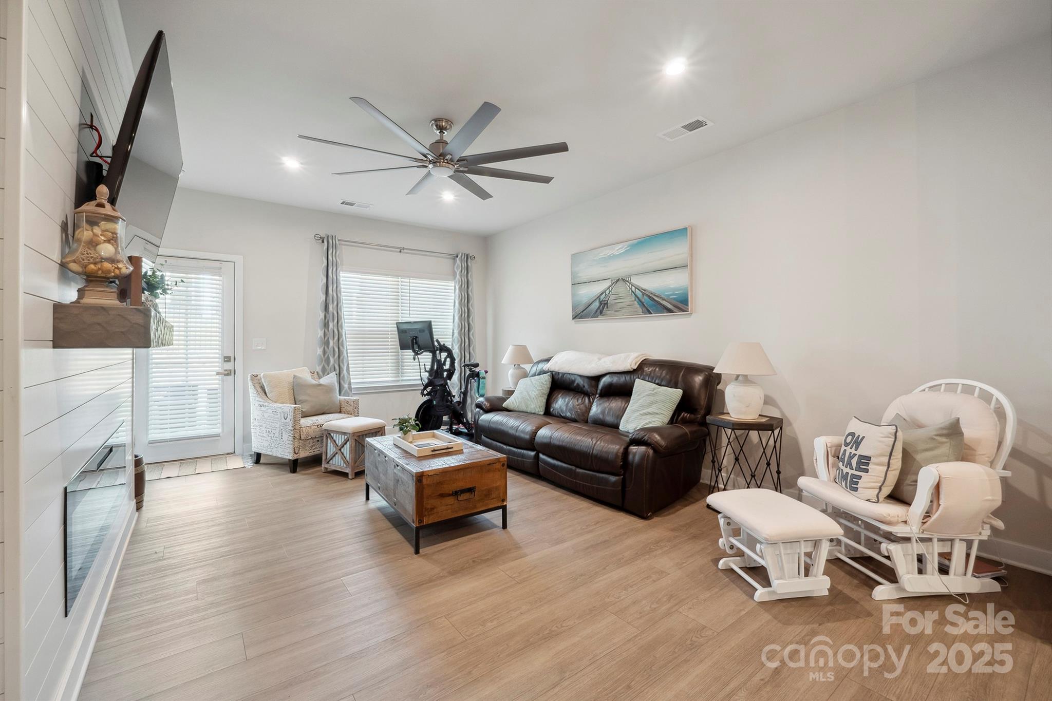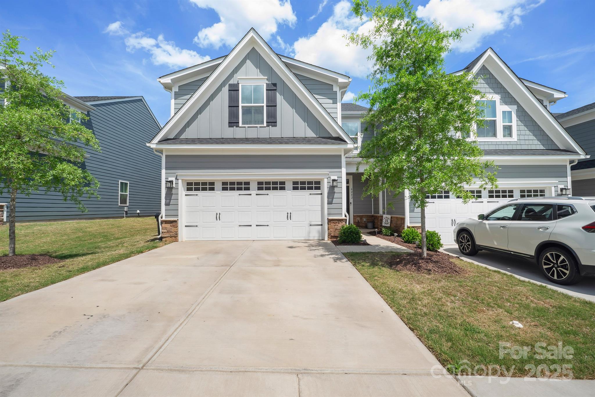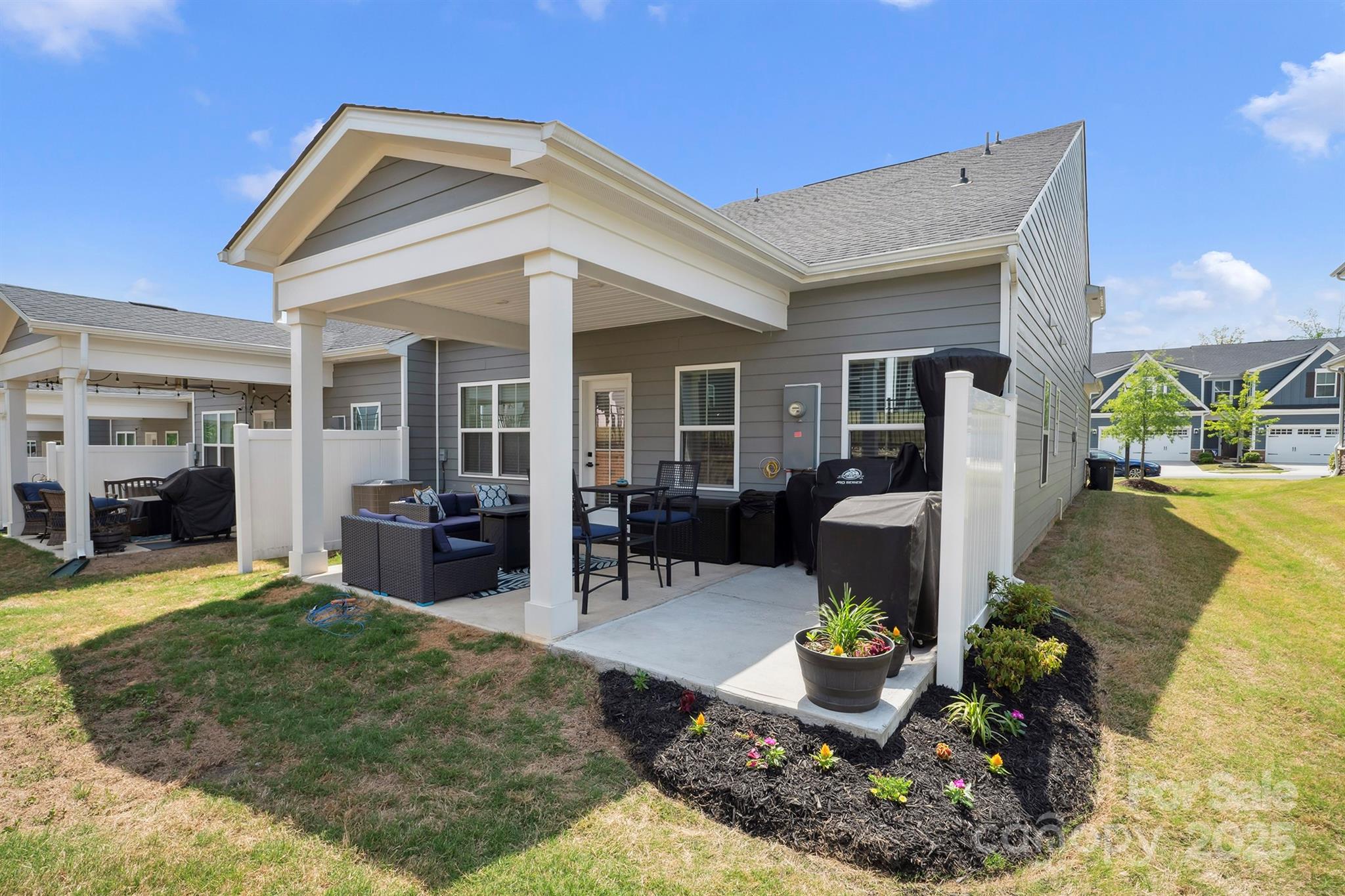 Welcome Home to this Spacious End-Unit Townhouse that offers a fantastic Open-Concept Layout that is perfect for everyday living and entertaining by the custom electric fireplace and a 2 Car Garage. This townhome was built in 2022 and still offers some warranty incentives. The Main-Level Primary Bedroom is spacious with an oversized Primary Bathroom with dual vanities, walk-in-shower with a bench, large walk in closet. This gorgeous modern kitchen features an oversized island, quartz countertops, subway title backsplash, grey cabinetry, gas range, stainless steel farm sink, and tons of cabinet space. Laundry Room is also on the main level with custom built-ins. The Upper Level offers 2 bedrooms and a full bath plus a Flex Room. The Covered Back Patio is great for entertaining with an extra concrete Pad for more seating or grill space. HOA includes lawn maintenance, Clubhouse, Fitness Center, Pool, Water/Sewer, Garbage. Convenient to Lake Norman, Hwy 77 and 16, shopping and more!