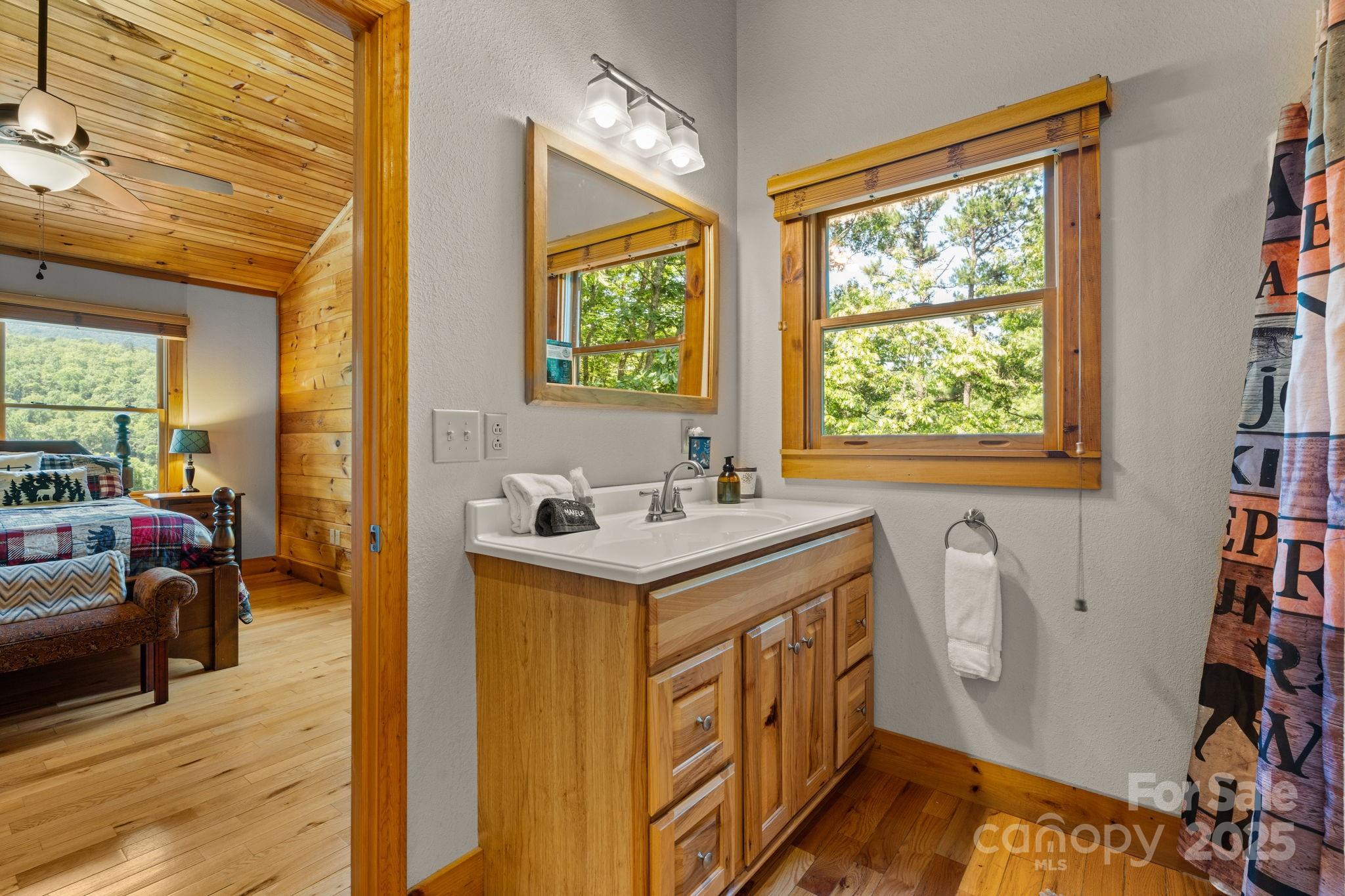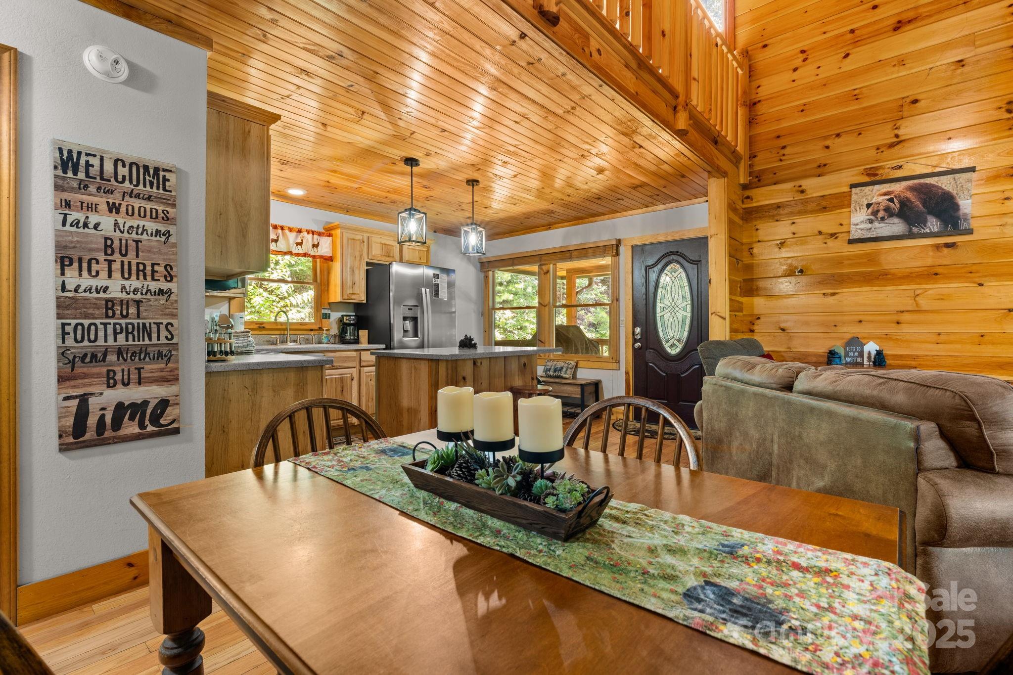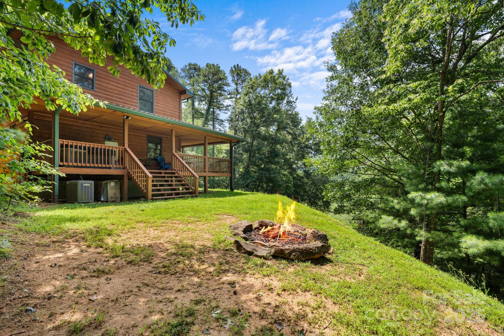 Escape to your own picturesque cabin in the woods! This charming 2BD/2BA log-sided home offers beautiful mountain views, a wraparound covered porch, and a relaxing hot tub (just 1 year old). Inside, you'll find an inviting open floor plan with hardwood floors, warm wood ceilings, and a cozy gas fireplace. The open loft makes a great office or daybed area. Recent updates include a new refrigerator and dishwasher, plus the exterior has been freshly stained. Gather around the firepit for evening s’mores or simply unwind and take in the peaceful setting. Currently a successful short-term rental with easy year-round access—just 10 minutes from the heart of Bryson City! Whether you're looking for a peaceful getaway, an investment, or your own mountain home, this one checks all the boxes! Home is being sold fully furnished (minus personal effects).