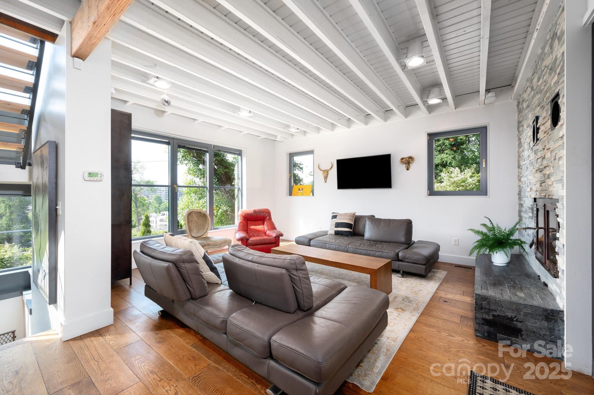 Stunning urban retreat in the heart of Asheville, just steps from historic McCormick Field & easy walking distance to downtown and the vibrant South Slope. Thoughtfully designed with high-end finishes throughout, this striking 3-story home offers abundant natural light & flow throughout. Large sliding windows and doors open to the outdoors, seamlessly blending indoor & outdoor living. All bedrooms enjoy views of the mountains & city skyline. Enjoy an oversized outdoor shower on the second level—a perfect spa-like touch. On the third level, a spacious loft & crow’s nest deck overlook McCormick Field, offering a front-row seat to Asheville Tourists baseball games. Additional highlights include a generous fenced backyard, a large Ipe back deck with fireplace & grilling area, a sunken private hot tub, and plenty of storage—including a gear room adjacent to the garage. This serene modern sanctuary offers an exceptional home base for enjoying all of Asheville.