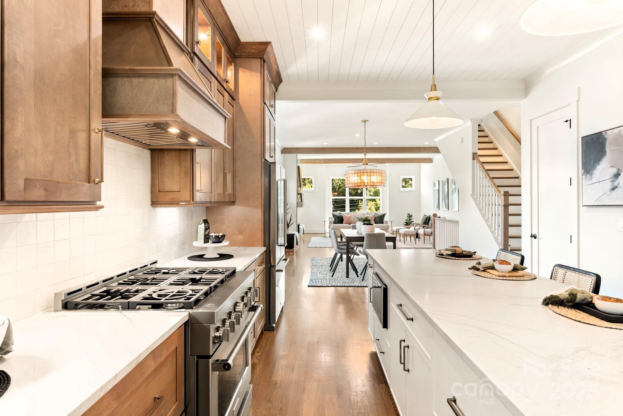 Rate buy-down credit of $10,000 available with acceptable offer. Welcome to this luxurious duet just across the street from Little Sugar Creek Greenway! Filled with natural light, the open floor plan is perfect for entertaining, with a spacious living room that opens up to a large kitchen and large deck. Top level entertainment bonus room with 11 ft ceiling, a bar area, ½ bath, and opens to a 200 SF terrace. Gourmet kitchen with custom cabinetry, quartzite countertops, huge island, KitchenAid appliances, and under cabinet lighting. All BDRS with walk-in closets, spray foam insulation at roofline, CAT 6 wiring, colored/stamped driveways, walk-in pantry, bar area in bonus room, high-end fixtures throughout, 4 separate AC zones, HUGH fenced-in backyard, Rinnai+ circulating lines, HW floors throughout, and 10 ft ceiling on main living floor. Walk to literally everything – greenway, Optimist Hall, bars/breweries, restaurants, Uptown, NoDa, and Parkwood light rail station.