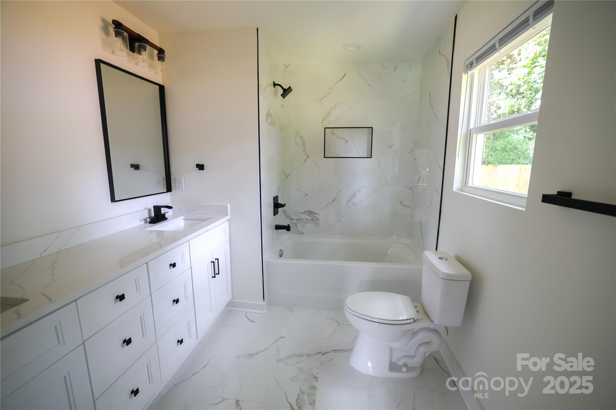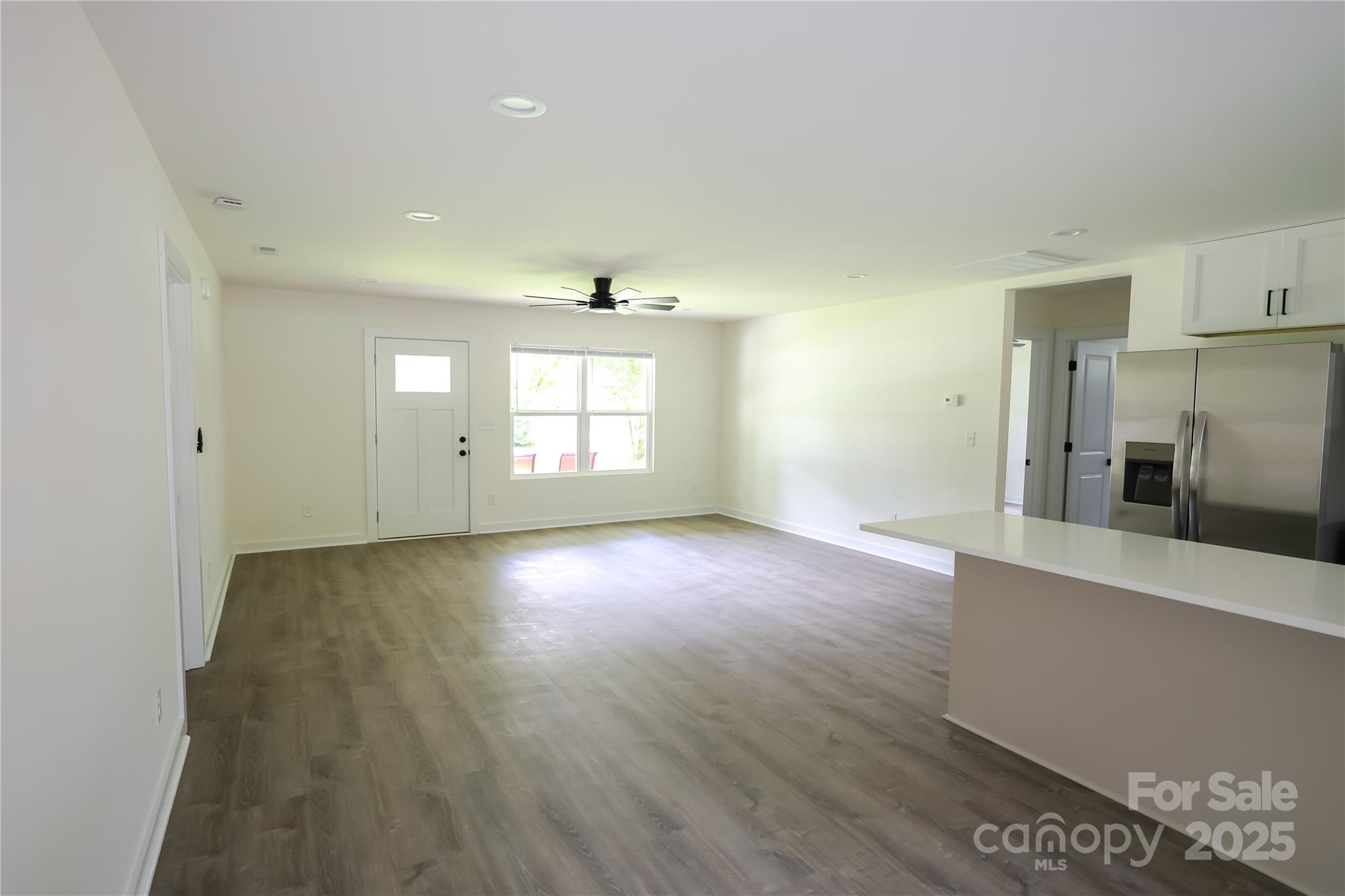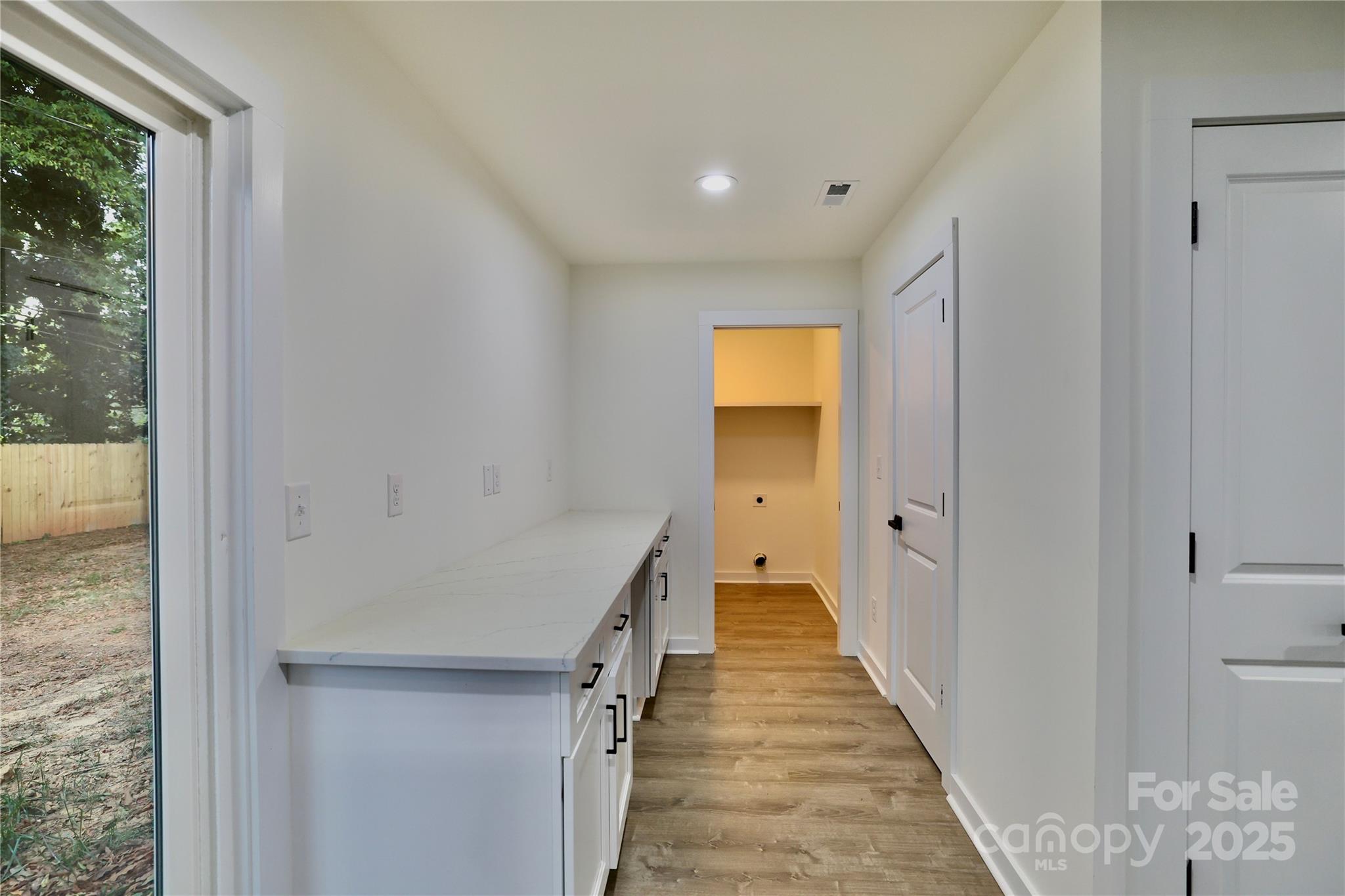 25k Price Drop!!! NEW CONSTRUCTION only 8 minutes from downtown Huntersville! This lovely, single-level home has 3 bedrooms, 2 full baths, large driveway & fully FENCED BACKYARD. Front covered patio welcomes you into the spacious living area with gorgeous LVP flooring throughout. Kitchen boasts quartz countertops, soft-close cabinets & APPLIANCES INCLUDED: refrigerator w/ ice maker, dishwasher, disposal, oven & microwave. Dining area beside kitchen island looks out onto stone patio & private backyard. The primary suite sits off the living room with a double vanity & tile shower/floor in bathroom and walk-in closet w/ built-in shelving. Next to dining area is a useful office or entertaining nook, kitchen pantry & laundry w/ built-in shelving. Two additional bedrooms lay on the other side of the living area with large closets & a luxurious full bath including tile shower/floor. Ceiling fans installed in living area & all bedrooms as well. Elegant black hardware package & blinds also throughout. READY NOW!!!