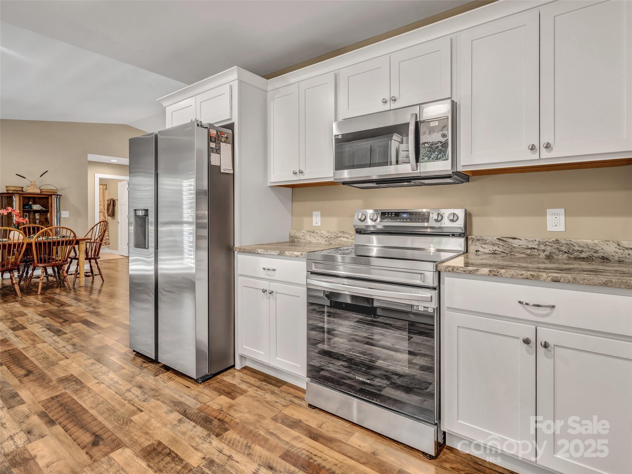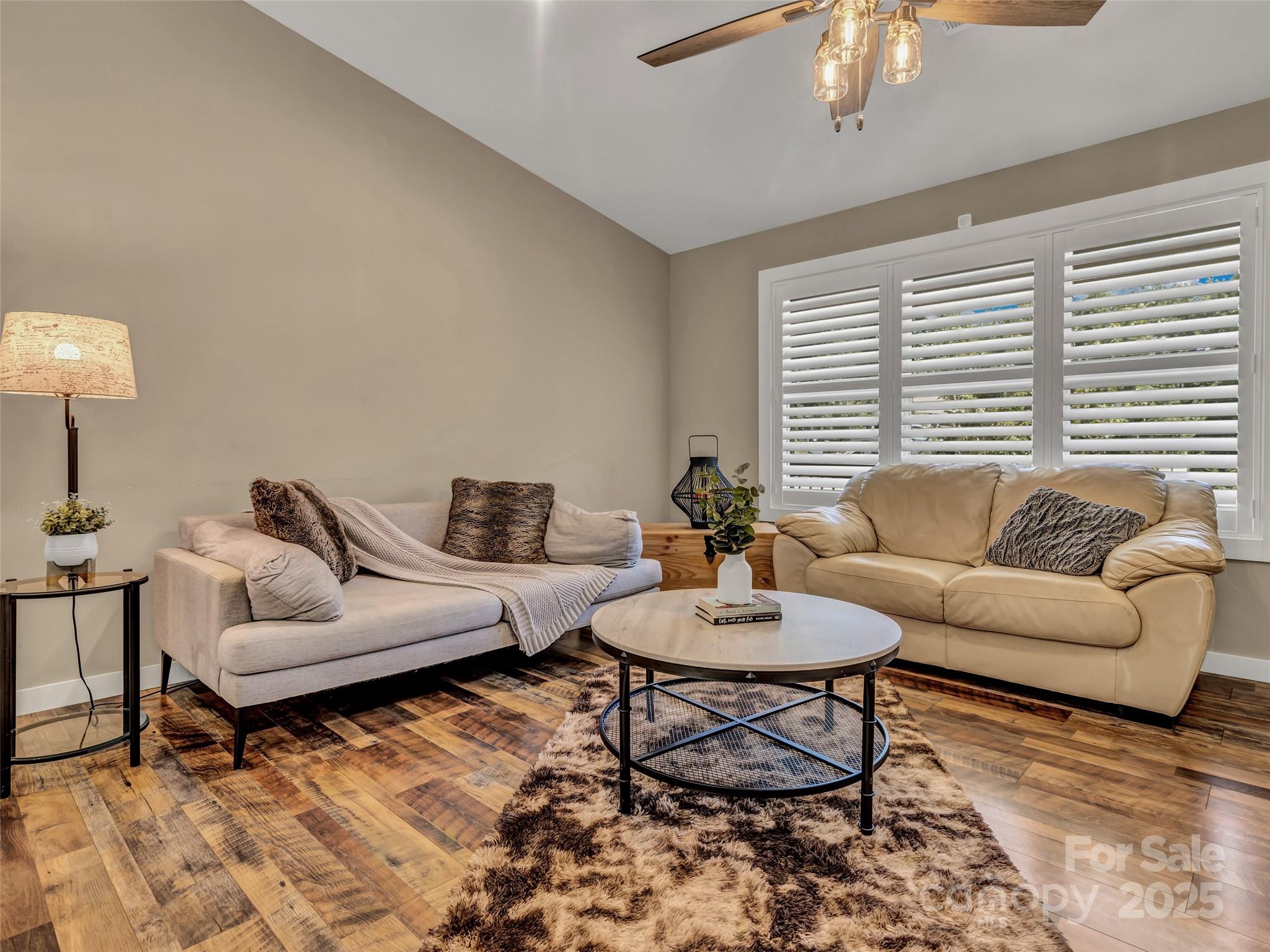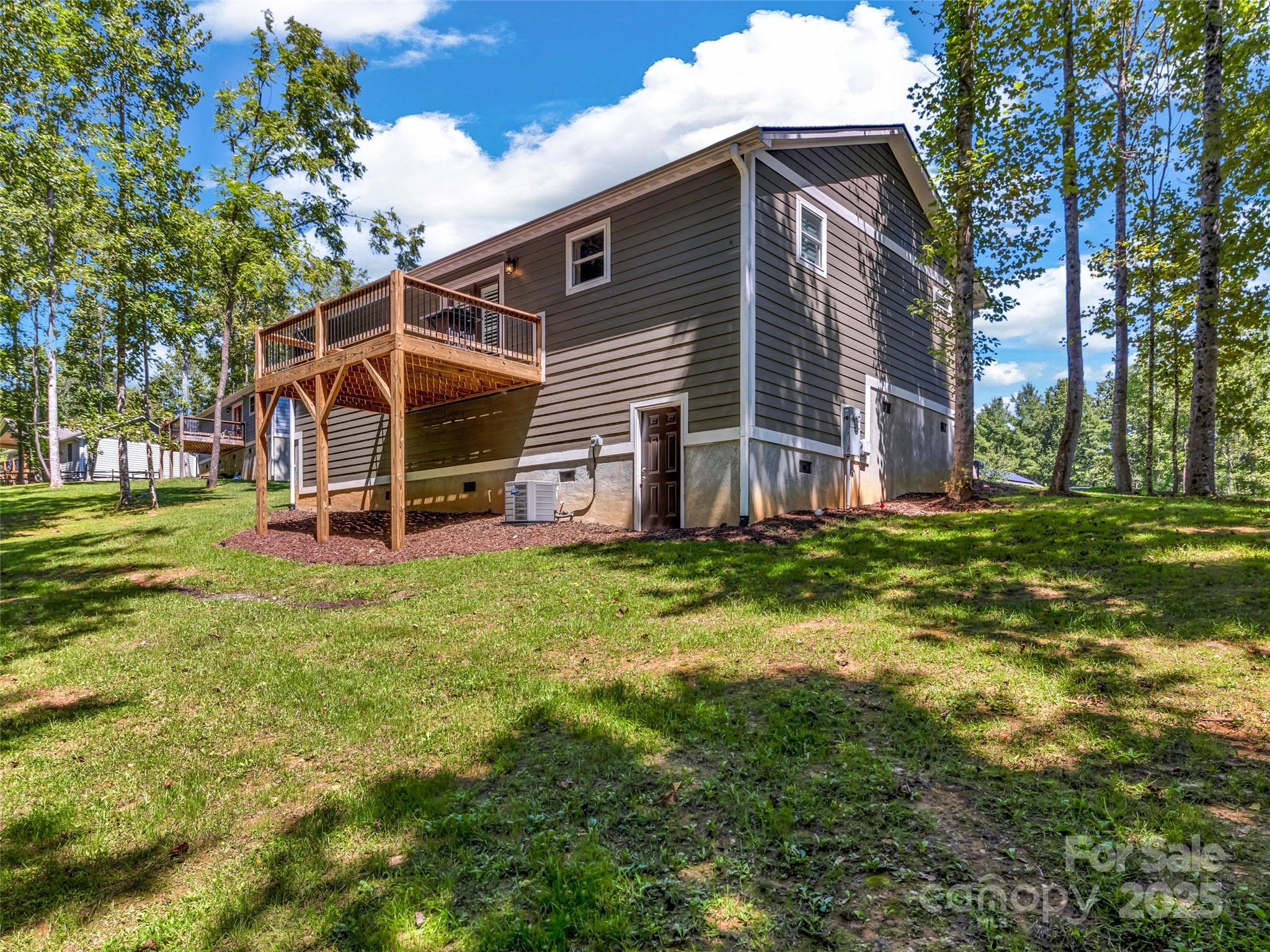 Welcome to this like-new home, situated in the quiet and picturesque Honeycrisp Subdivision—just as charming as its name. With soaring ceilings, and tasteful touches, like the custom plantation style shutters, this home blends elegance and warmth. So open and spacious, this thoughtfully designed house boasts desirable features, such as the split BR plan offering a primary suite on one side, complete with large bath and extra roomy walk-in closet. On the other side, two bright bedrooms are similar in size and features, with another full bath conveniently located between them. You'll find elevated style in the kitchen with its gleaming granite and stainless appliances, and the laundry room is so large, yet perfectly practical. Enjoy peaceful mornings and relaxing evenings on the covered porch or spacious deck, overlooking the large wooded yard with private natural beauty. The custom concrete driveway enhances both convenience and curb appeal. NOTE: House has a unique self flushing water filtration system providing clean water, but eliminates the need for manual cleaning or replacing expensive cartridges and filters.