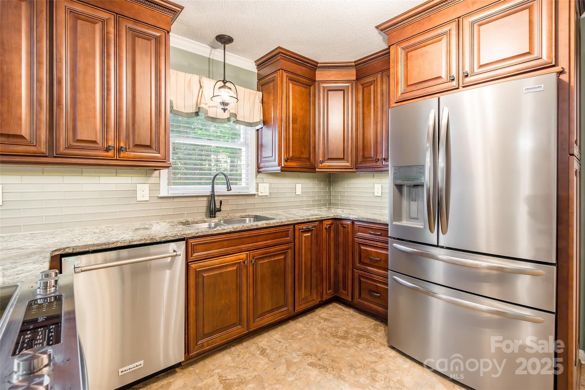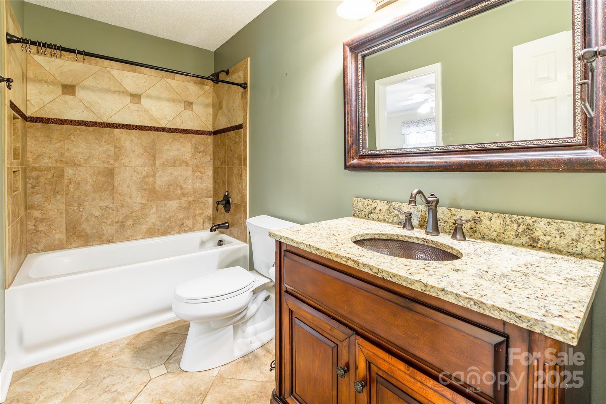 MUST SEE FRESH NEW LOOK - SELLER ENHANCED LANDSCAPING W/ ADDITIONAL TREES FOR BUFFERING IN THE BACKYARD! Impeccably maintained all-brick home in the highly sought-after Oakhurst community. This beautiful residence offers 4 bedrooms and 3 full bathrooms, inc. a main-level bedroom and full bath perfect as a guest suite, 2nd primary, or home office. The kitchen features granite countertops, SS apps, under-cabinet lighting, and a pantry. A frml dining room with bay window and chair railing provides a warm, inviting space. The spacious great room showcases a brick gas-log fireplace and rich hardwood floors throughout the main living areas. Upstairs, you’ll find the large primary suite, 2 additional bedrooms, and a bonus room. A metal railing and hardwood staircase add architectural detail, with storage tucked underneath. Sitting on nearly half an acre, the home has a landscaped yard, massive Trex deck, tall crawl space, tankless water heater, and an oversized garage with epoxy floors.