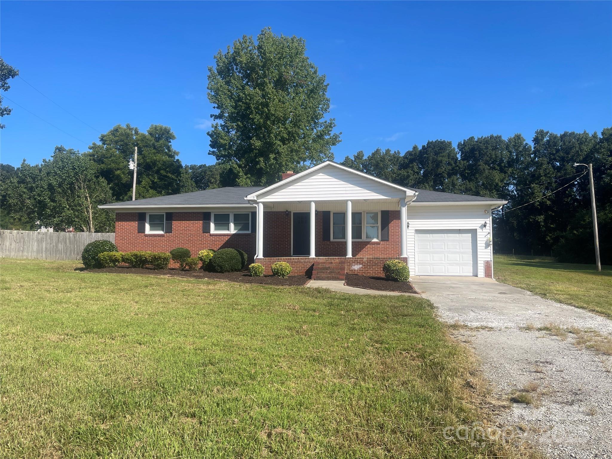 Charming All-Brick Ranch with a huge Workshop! Step into this beautifully maintained all-brick ranch offering 1,400 sq. ft. of living space with 3 bedrooms and 1.5 baths. This home truly doesn’t reflect its age, with modern updates and still keeping its classic charm. This awesome kitchen is a highlight, featuring granite countertops, a large island, abundant cabinetry, and laminate flooring. The original hardwood floors flow throughout the family room and all three bedrooms, adding warmth and character. The full bath connects to the half bath, making it convenient for multiple people to get ready at once. A laundry room is conveniently located off the attached one-car garage for easy access. Enjoy the large sunroom year-round, perfect as a relaxing retreat, home office, playroom, or entertainment space. Outside, you’ll find a huge detached building/workshop, ideal for hobbies, storage, or extra workspace, along with a fully fenced backyard—great for pets or gardening. The property also includes a portion of Carolina Creek, (Please note that this area will be in a flood plain) offering a natural buffer. From the inviting front porch to the thoughtfully designed interior, this home offers a great blend of the classic and modern! Experience country living at its best! Also included is a water filtration system for the home.
