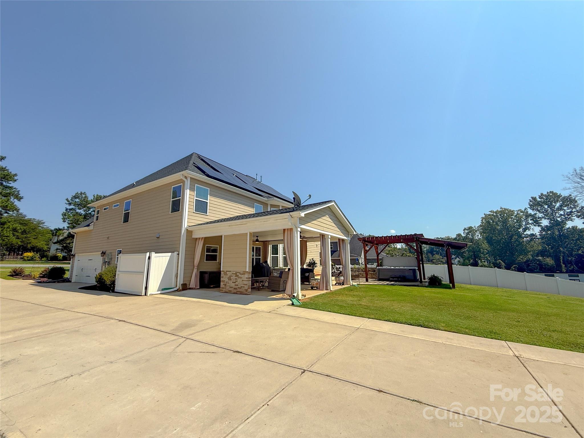 Welcome to your private retreat near the lake in Belmont, NC! This spacious 4-bedroom, 4-full-bathroom home with a large upstairs bonus room offers 3,780 square feet of beautifully maintained living space on over 2 acres of serene property tucked away on a quiet street. From the moment you arrive, you’ll notice the exceptional care and pride of ownership that has gone into every detail of this residence. Step inside to discover an open-concept living room with soaring ceilings, abundant natural light streaming through numerous windows, and remote-operated upper blinds for added convenience. The grand primary suite is a true escape, featuring a spectacular ensuite bath with a rain-style overhead shower and dual shower heads positioned opposite one another for a spa-like experience accompanied by a walk-in closet. The thoughtful layout includes a Jack and Jill bathroom among the secondary bedrooms, offering both convenience and comfort for family or guests. The spacious bonus room provides flexibility for a home office, playroom, or media room. And the flex bedroom on the main provides space for a loved one or additional office! Practical upgrades are abundant: a dual-zone thermostat synced with Google, Google-connected smoke and carbon monoxide detectors, an air scrubber installed in the HVAC system, plus semi-annual HVAC servicing, monthly pest control since the home was built, and annual hot water tank servicing for peace of mind. The owners also have extra engineered hardwood flooring available to complete the main level bedroom floor. Outdoors, enjoy peaceful afternoons on the covered back patio overlooking the wooded backyard, where deer are often seen passing through. Relax in the upscale hot tub, or take advantage of the attached two-car garage and detached garage with built-in electric and a 50-amp hookup for an RV—a rare and valuable feature. This home is part of a welcoming community with great neighbors and access to top-rated local schools K–12, as well as nearby colleges like Belmont Abbey and UNC Charlotte. Just minutes away, you’ll find charming downtown Belmont with its variety of shops, restaurants, and monthly events. And with a public beach and boat launch just a mile up the road, lake life is at your doorstep. Also, less than 30 minutes from the Charlotte airport! To top it off, this home comes equipped with solar panels that convey with the property, offering both sustainability and savings. Don’t miss your opportunity to own this remarkable property that combines modern upgrades, comfort, and community in one of Belmont’s most sought-after areas!
