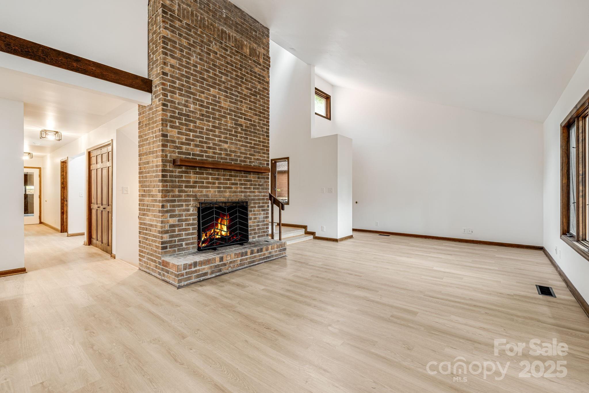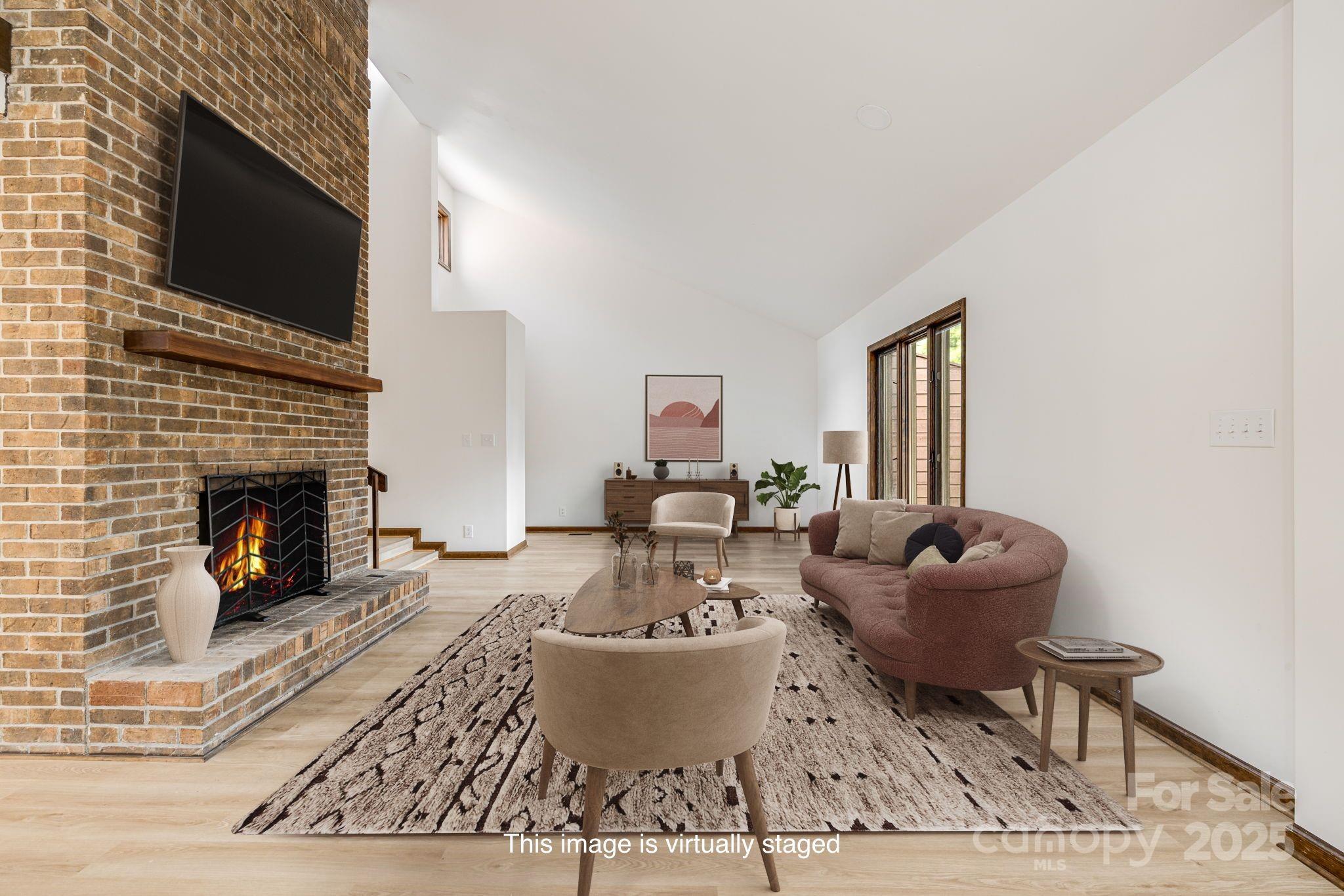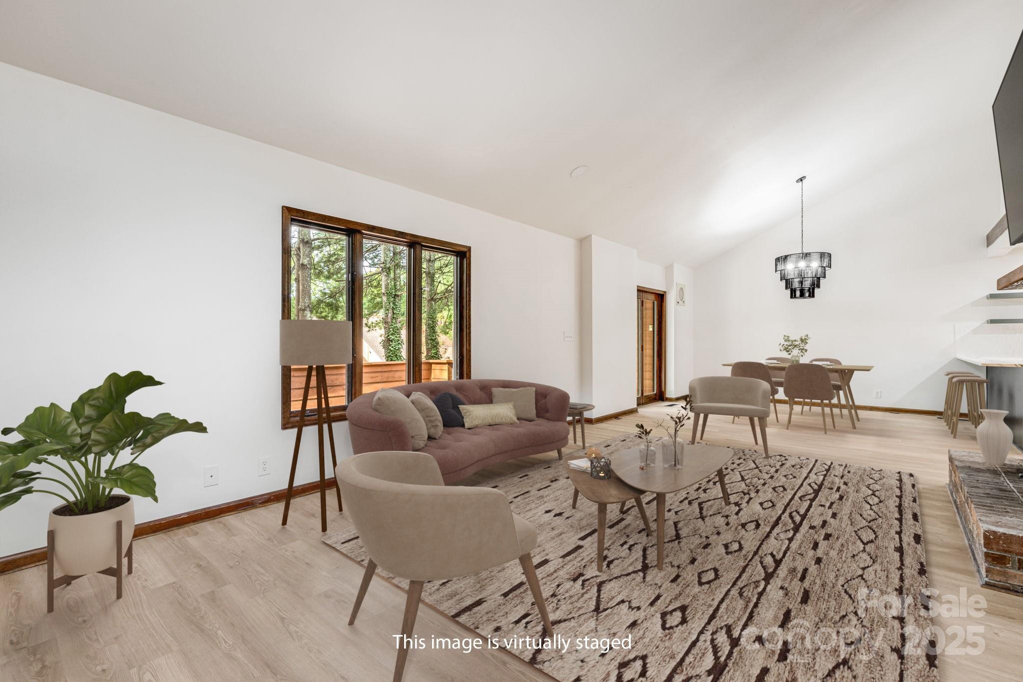 Smart and spacious Woodfield condo, completely updated! New LVP and tile flooring and paint throughout, creating a crisp and bright palette. The kitchen is a showstopper with new cabinets, appliances and counters. The main level features an open great room plan with soaring ceilings and fireplace. Primary bedroom, plus additional guest bedroom and two full baths are on the main level. Upstairs the second primary owner's suite is a true retreat, offering a private bath and walk-in closet. The lower level has a huge flex room with fireplace, additional guest bedroom and bathroom, creating a great space for guests and extended family. Two-car garage on main level and storage space in basement. Nestled in the established Woodfield community, offering a pool and tennis courts, just minutes to the Blue Ridge Parkway, all East Asheville/Tunnel Road amenities and Downtown Asheville. Exterior maintenance and lawncare included in the low HOA fees, offering peace of mind.