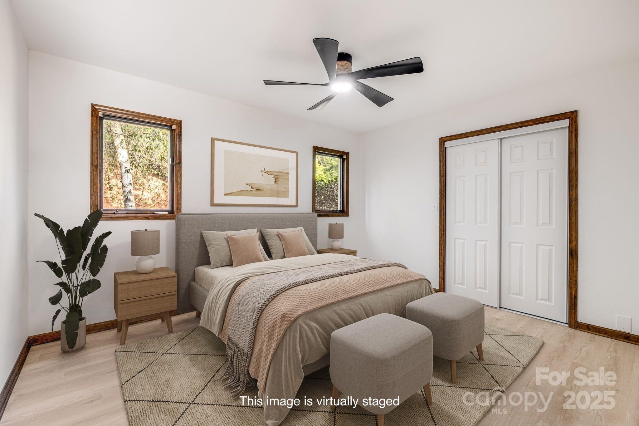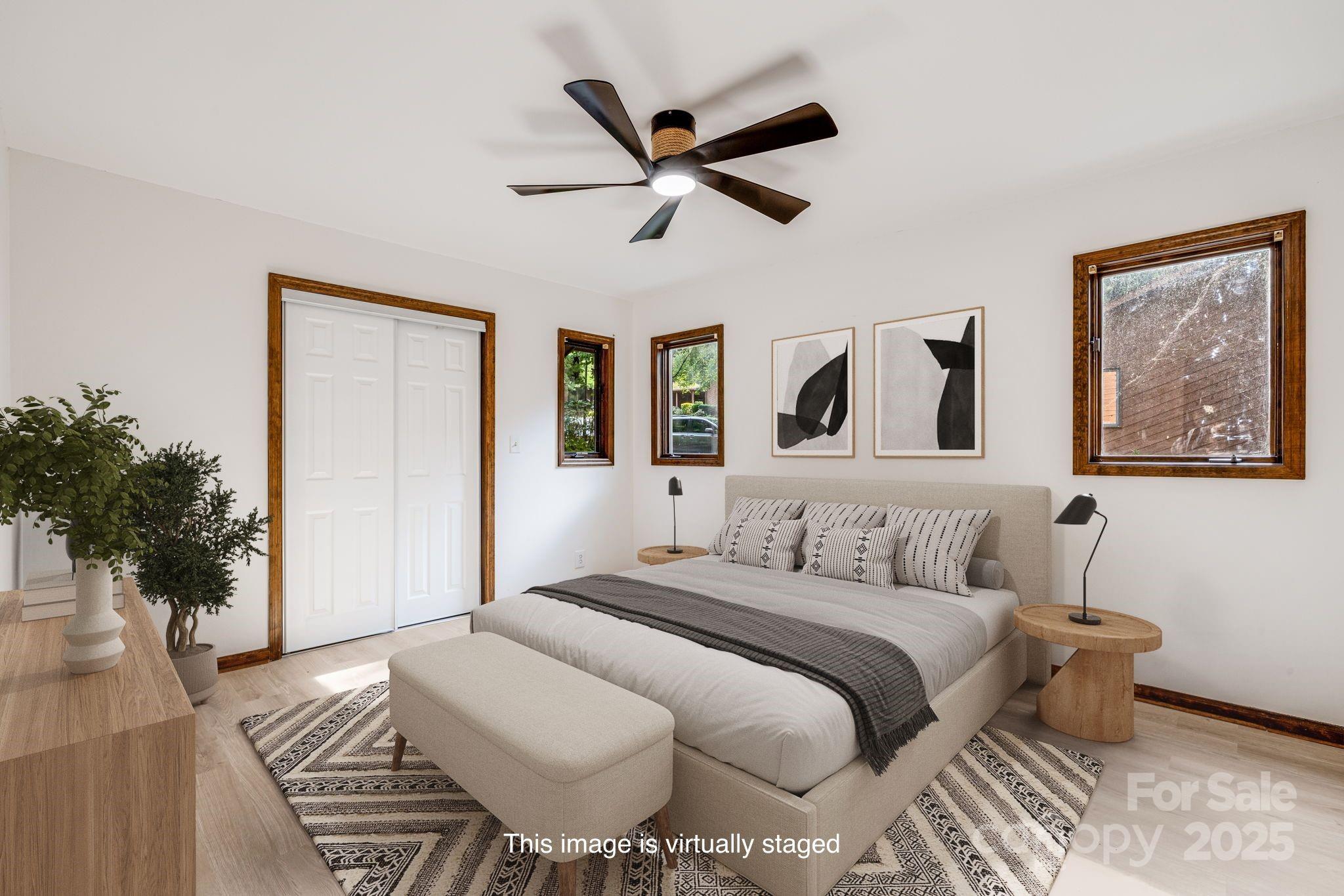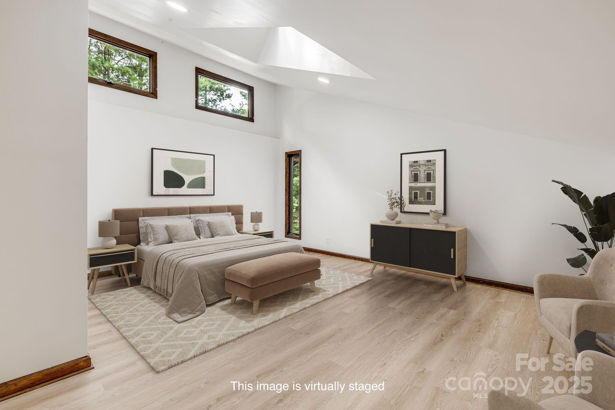 Smart and spacious Woodfield condo, completely updated! New LVP and tile flooring and paint throughout, creating a crisp and bright palette. The kitchen is a showstopper with new cabinets, appliances and counters. The main level features an open great room plan with soaring ceilings and fireplace. Primary bedroom, plus additional guest bedroom and two full baths are on the main level. Upstairs the second primary owner's suite is a true retreat, offering a private bath and walk-in closet. The lower level has a huge flex room with fireplace, additional guest bedroom and bathroom, creating a great space for guests and extended family. Two-car garage on main level and storage space in basement. Nestled in the established Woodfield community, offering a pool and tennis courts, just minutes to the Blue Ridge Parkway, all East Asheville/Tunnel Road amenities and Downtown Asheville. Exterior maintenance and lawncare included in the low HOA fees, offering peace of mind.