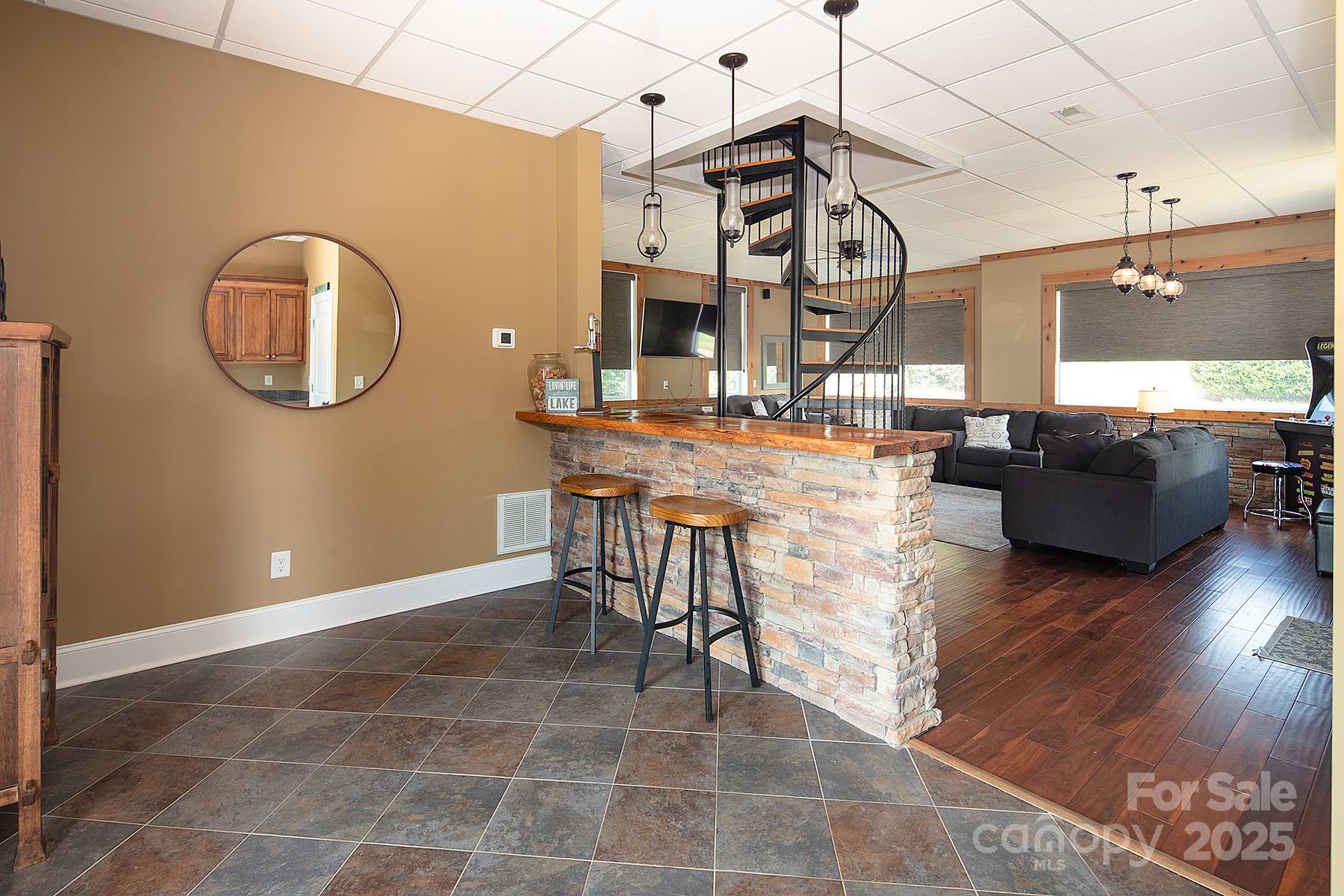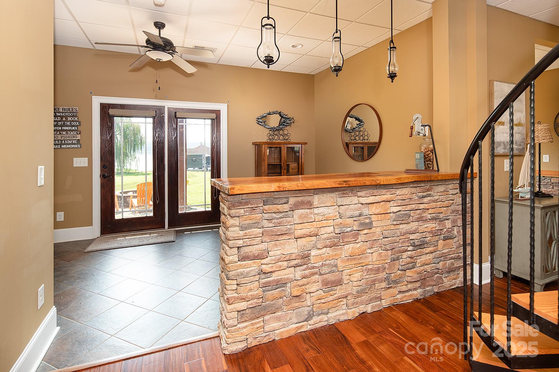 Luxury Waterfront Escape with Strong Short-Term Rental Potential! This fully furnished custom home offers 85 ft of pristine shoreline and sweeping lake views from two expansive balconies. The main level features a stylish living room with fireplace, open dining, and a well-appointed kitchen that is ideal for entertaining. The luxe Primary Suite boasts balcony access, lake views, and a spa-like bath with soaking tub. Upstairs includes one bedroom, two additional sleeping rooms, and a full bath. A spiral staircase leads to the lower level with a spacious rec room, second kitchen, and wet bar. With charm, character, and an unbeatable location, this home is perfect for lakeside living and offers excellent short-term rental income potential on top of it!