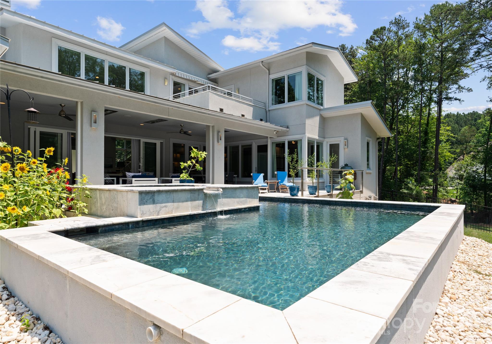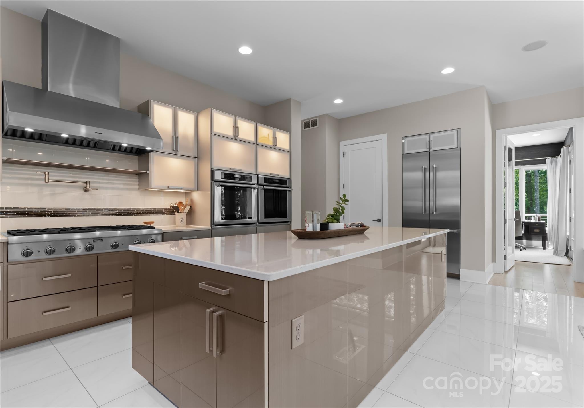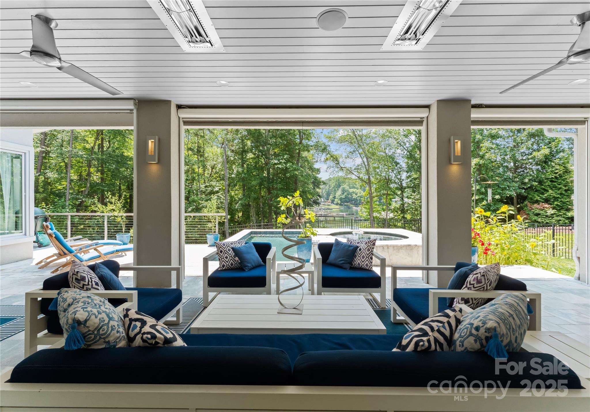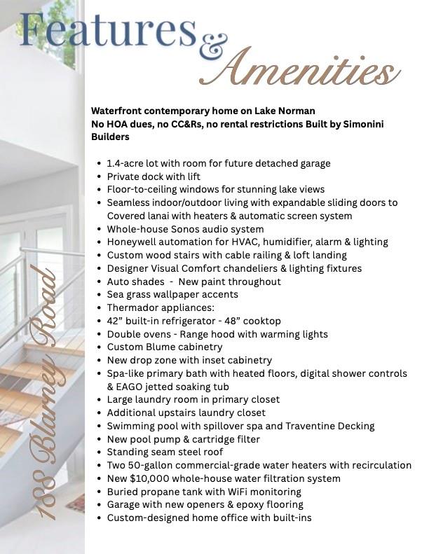 Rare Simonini-built contemporary waterfront home offering privacy, style, and flexibility with no HOA , CC&Rs, or rental restrictions. Situated on a sprawling 1.4-acre lot, this architectural gem is designed for effortless indoor-outdoor living. Soaring floor-to-ceiling windows flood the space with natural light while expandable sliding glass doors open to a covered lanai complete with ceiling heaters and an automated screen system, perfect for year-round entertaining. Inside, the chef’s kitchen is outfitted with top-of-the-line Thermador appliances and custom backlit cabinetry. Additional features include Sonos whole-house audio and Honeywell smart home automation managing HVAC, humidifier, lighting, security, and more! The luxurious Master bath features heated floors, digital showers, EAGO jetted soaking tub. Additional highlights include: custom wood stairs with cable railing, auto shades, high-end lighting by Visual Comfort, and a beautifully crafted home office with built-ins.