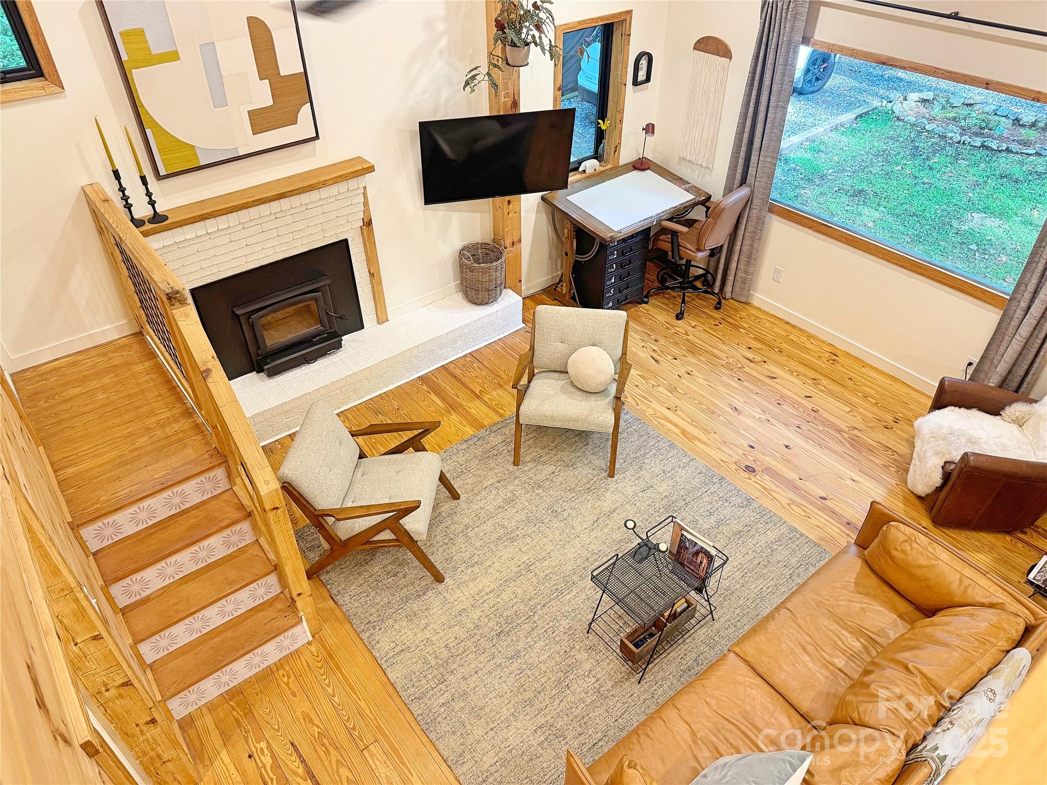 Located in the enchanting neighborhood of Gingercake Acres—where neighbors still gather for potlucks, holiday celebrations, and lively games of tennis or pickleball—sits a retreat that feels more like a dream than a home. Gingercake Acres itself offers a new pool, updated clubhouse, playgrounds, and trails, but it’s the sense of community that makes this neighborhood truly special. Within it, you’ll discover a one-of-a-kind residence designed to capture the spirit of a luxury treehouse. This remarkable property was crafted by an apprentice of one of the nation’s top treehouse builders, and it shows in every detail. From the moment you enter the foyer, you’re greeted by soaring ceilings and hand-crafted beams etched with natural character markings—details that instantly create both drama and warmth. The living room is anchored by massive windows that dissolve the line between indoors and outdoors, allowing the wooded, park-like setting to become part of everyday life. A lofted sleeping space floats above, adding both function and whimsy, while a newly installed wood stove radiates warmth through the heart of the home. The dining area is a showpiece in itself, centered around a custom built-in table framed by massive windows. Meals here feel like picnics in the forest, with ever-changing scenery: vibrant summer leaves, fiery autumn color, and in winter, glimpses of mountain peaks that sparkle beneath the Eastern sky. The kitchen blends sleek modern style with rustic woodsy charm. A spacious coffee bar makes mornings a delight, while updated cabinetry, appliances, and thoughtful layout keep the design both beautiful and functional. Upstairs, the private primary suite feels like a treetop sanctuary. Expansive windows frame a view that changes with each season, giving the sensation of waking in a treehouse while still enjoying every modern luxury. Whether you prefer the leafy greens of summer, the brilliant reds and golds of fall, or the peaceful beauty of snow-dusted branches, this space offers an ever-changing masterpiece outside your window. The magic continues outdoors. A covered deck provides the perfect perch to enjoy morning coffee, while evenings are best spent gathered around the fire pit beneath a canopy of stars. The landscape is complemented by the presence of native plants lovingly added by the current owners. Every corner of the grounds offers beauty and tranquility, with spaces for entertaining, relaxing, or simply being immersed in nature. What sets this home apart, beyond its design and setting, are the thoughtful updates completed within the last three years. From the roof to the mini-splits, no detail has been overlooked. The result is a retreat that feels timeless yet turn-key, full of handcrafted artistry but ready for effortless everyday living. This residence is more than just a home; it’s an experience. Whether you’re looking for a romantic escape, a short-term rental with undeniable appeal, or your own forever retreat where nature and living come seamlessly together, this property delivers it all. The handcrafted stairs, massive windows, hand-hewn logs, and curated finishes tell a story of care, creativity, and craftsmanship. A true artist's paradise. Opportunities like this are rare. Gingercake Acres is a community that values both connection and privacy, where residents thrive on neighborly bonds but cherish their wooded, park-like surroundings. To own a home that embodies the spirit of a luxury treehouse within such a neighborhood is truly exceptional. Come discover for yourself how every detail of this enchanting home—from its soaring beams to its seasonal views—was designed to inspire wonder. This is not just a property; it’s a place where memories are made, where every sunrise and season feels like a gift, and where nature and comfort blend into one extraordinary lifestyle.