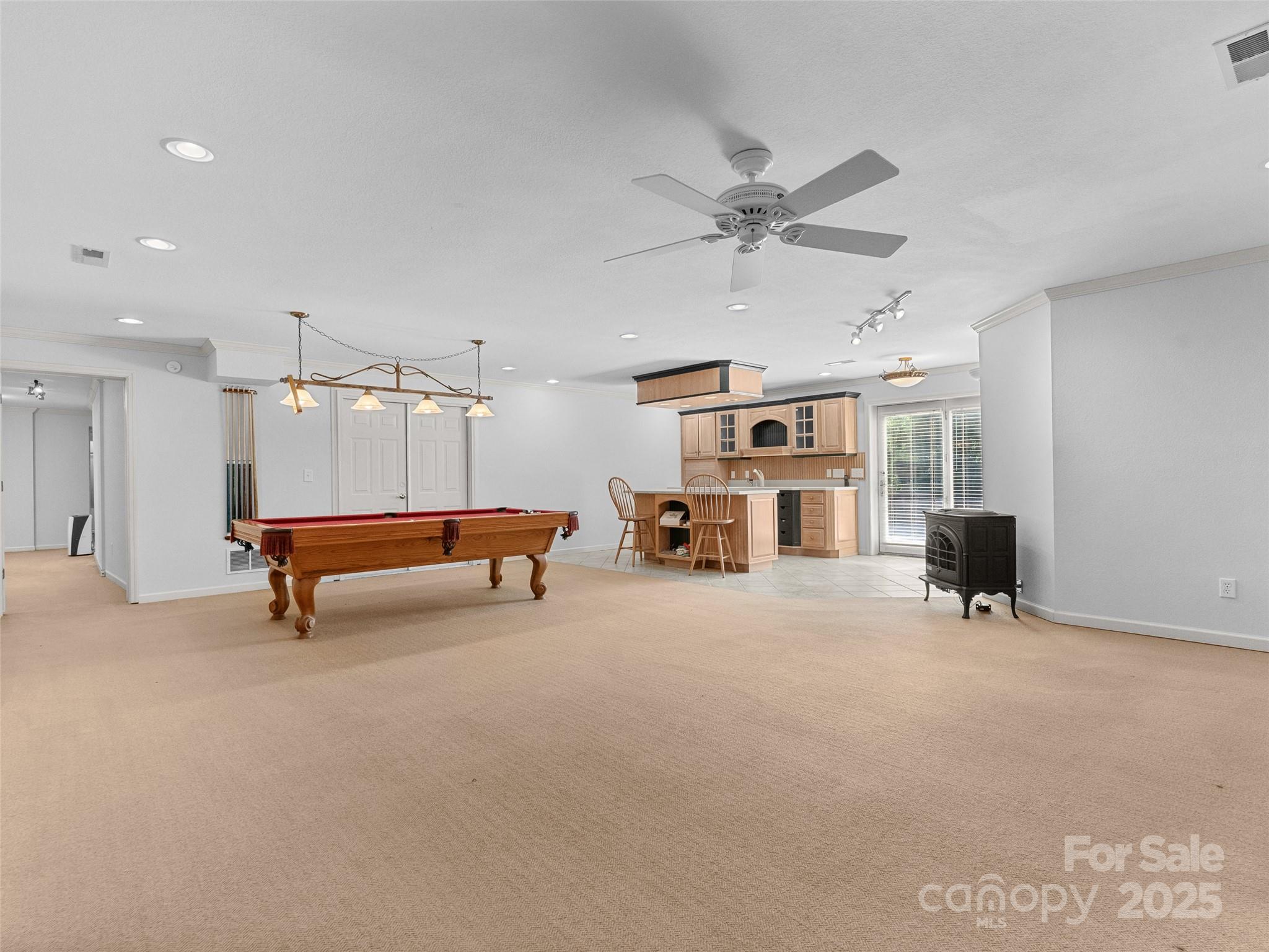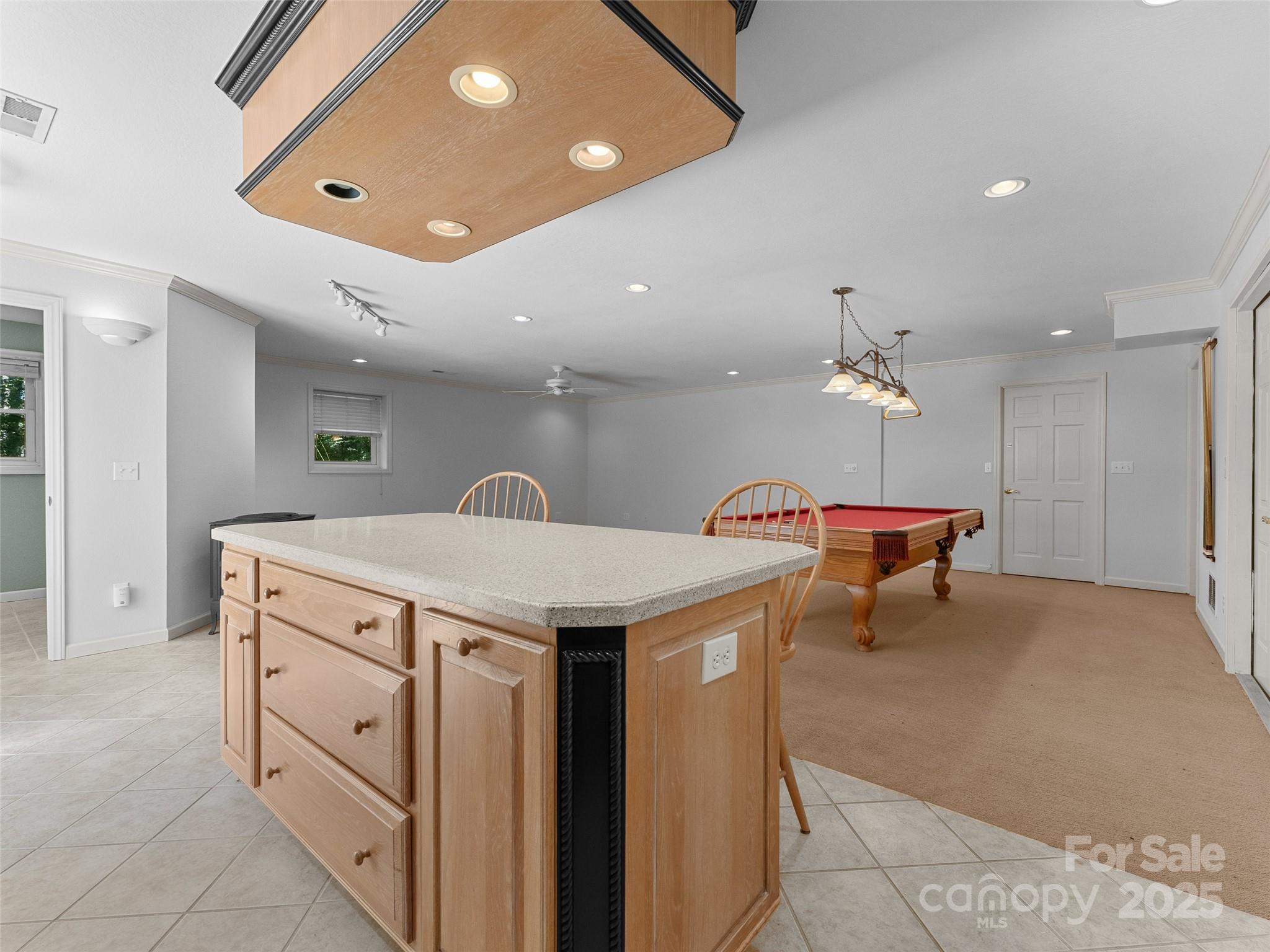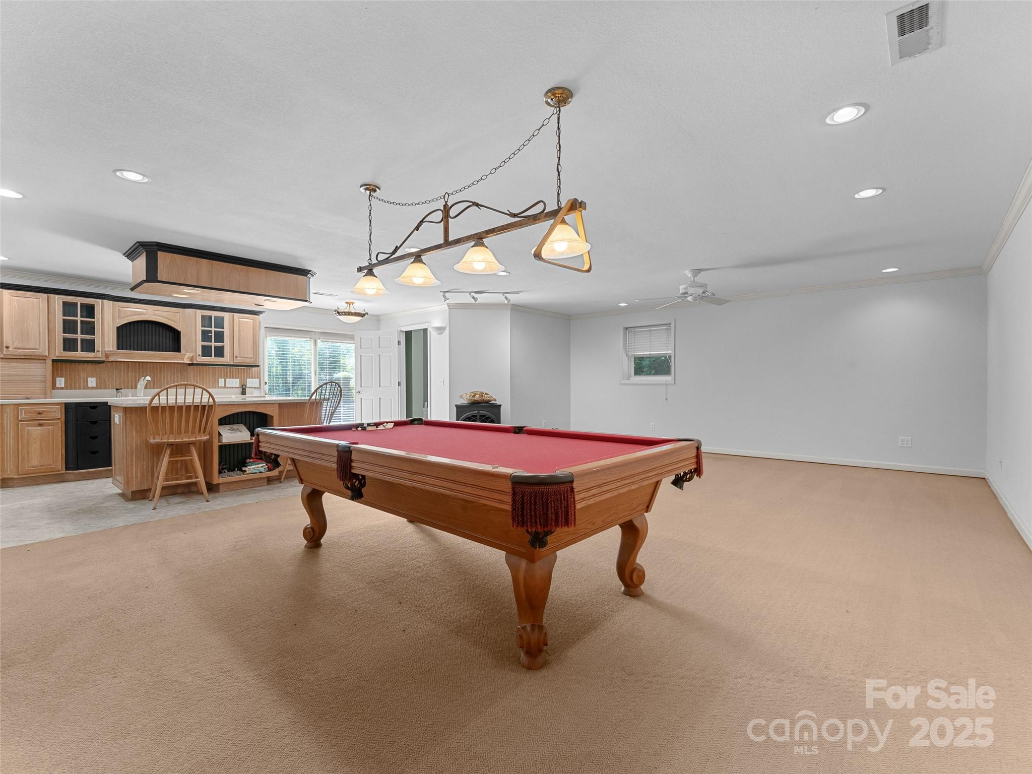 Welcome to a truly enchanting home that blends comfort, style, and family-friendly living at every turn. With soaring ceilings and abundant natural light, the gorgeous great room provides an inviting space for both everyday living and entertaining guests. The beautifully appointed kitchen features sleek solid surface countertops, a perfect backdrop for casual gatherings. Adjacent to this, the sunroom offers a serene, sun-drenched retreat—ideal for morning coffee or a quiet afternoon. The expansive primary suite provides a peaceful escape, complete with ample space and a private en-suite bathroom. The lower-level recreation room is a highlight, complete with a classic pool table and direct access to the picture-perfect patio, where you can enjoy serene views of your private backyard. Whether you're hosting a game night in the rec room, enjoying a peaceful evening in the sunroom, or entertaining guests in the expansive backyard, this home is designed for both relaxation & fun.