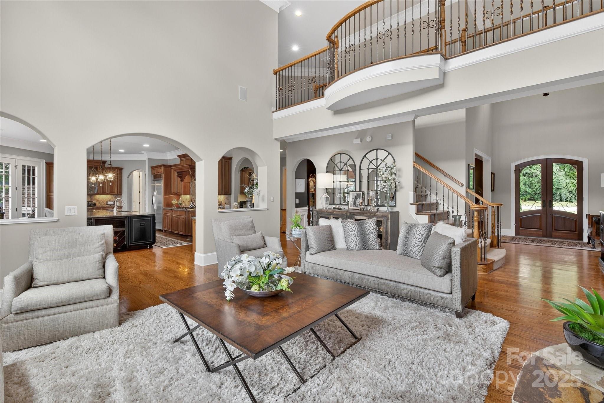 Exceptional brick home on 13th tee box of Country Club of the Carolinas w/ a private backyard oasis. Heated pool, spa & travertine pavers create resort-style retreat. Main level features:10' ceilings, oak floors, office w/ vaulted ceilings, wet bar & built-ins. Spacious primary suite on main w/ vaulted ceilings, 2 walk-in custom closets & dual vanities. Main-level guest suite w/ full bath. 2 story great room opens to chef’s kitchen w/ oversized granite island. Upstairs offers 3 bedrooms, 3 full baths & private living room suite. Expansive basement includes a bar w/ dishwasher, family room w/ fireplace, full bath & over 1600 sq ft of unfinished space—already stubbed for plumbing & has HVAC—perfect for a gym, guest suite, or flex rooms. 2022 roof, whole-home water filtration, irrigation, landscape lighting, screened porch w/ fireplace, covered patio w/ fireplace & 4-car garage. Golf course views in a premier country club setting complete this entertainer’s dream right on the state line.