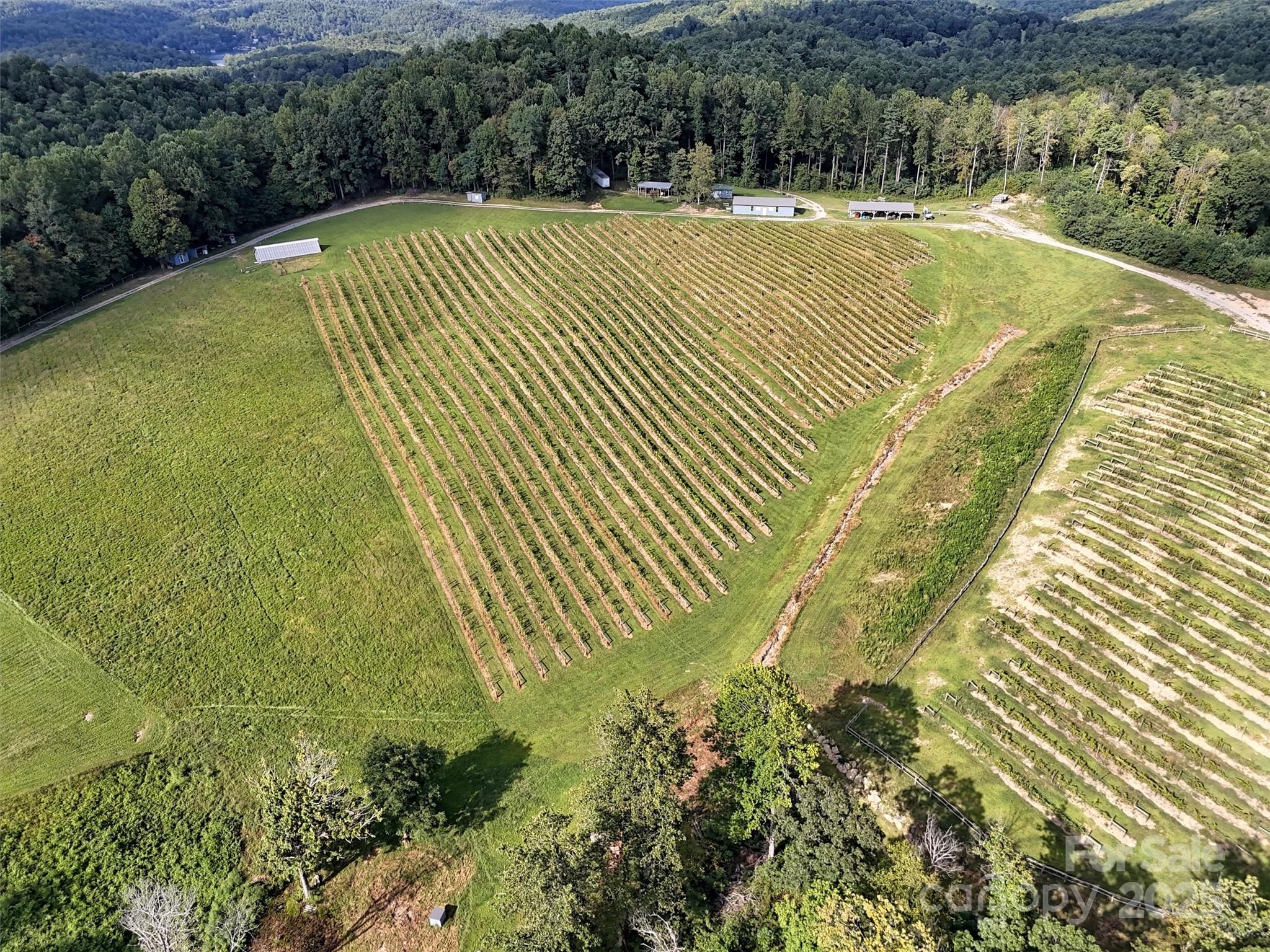 Incredible opportunity to own 129± acres of beautiful, gently rolling land, including nearly 20 acres of mature, professionally cultivated grapevines—managed by the 2019 NC Grape Grower of the Year. This well-appointed property features excellent infrastructure, including established gravel roadways, underground power, multiple outbuildings, and a 1,200 sq. ft. greenhouse, making it ideal for those seeking to expand into viticulture, agribusiness, or private estate living. A 1-bedroom, 1-bath hand-hewn log cabin sits overlooking the vineyard, offering scenic views and rustic charm—perfect for a private getaway, short-term rental, or potential tasting room. The property also borders the 500-mile Palmetto Trail, offering direct access to hiking and biking tourism opportunities. Steeped in history, Kingdom Farms was founded by freed slaves after the Civil War and is one of only two recognized “kingdoms” in U.S. history—offering both historic and cultural value. Whether you're a winemaker, investor, or seeking a legacy property with income potential, Kingdom Farms is a rare find with all the elements in place for your vision to thrive.