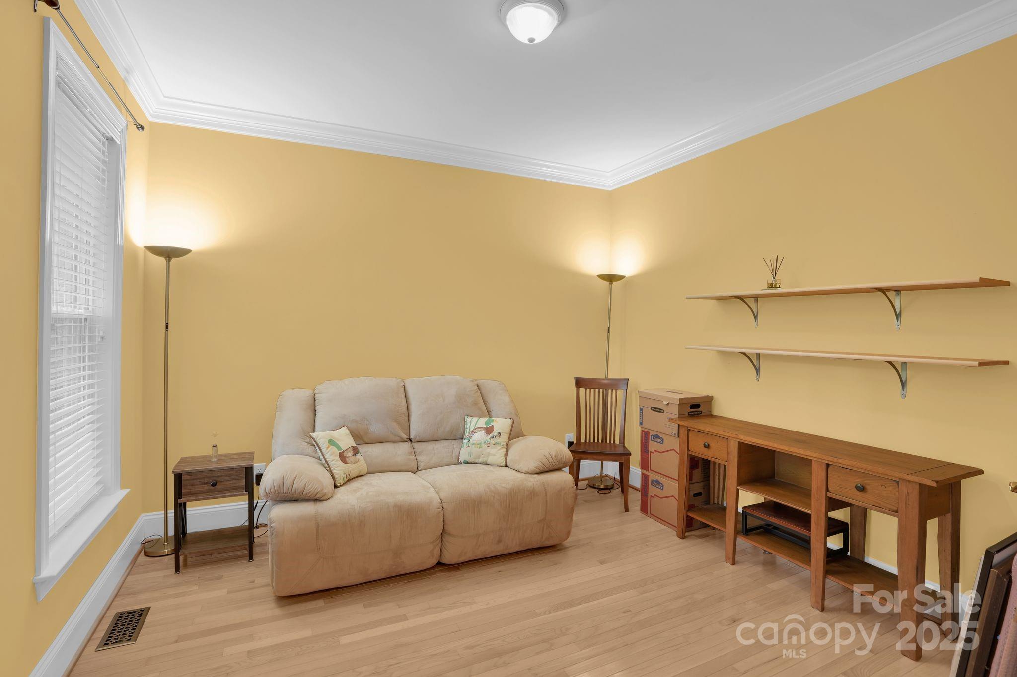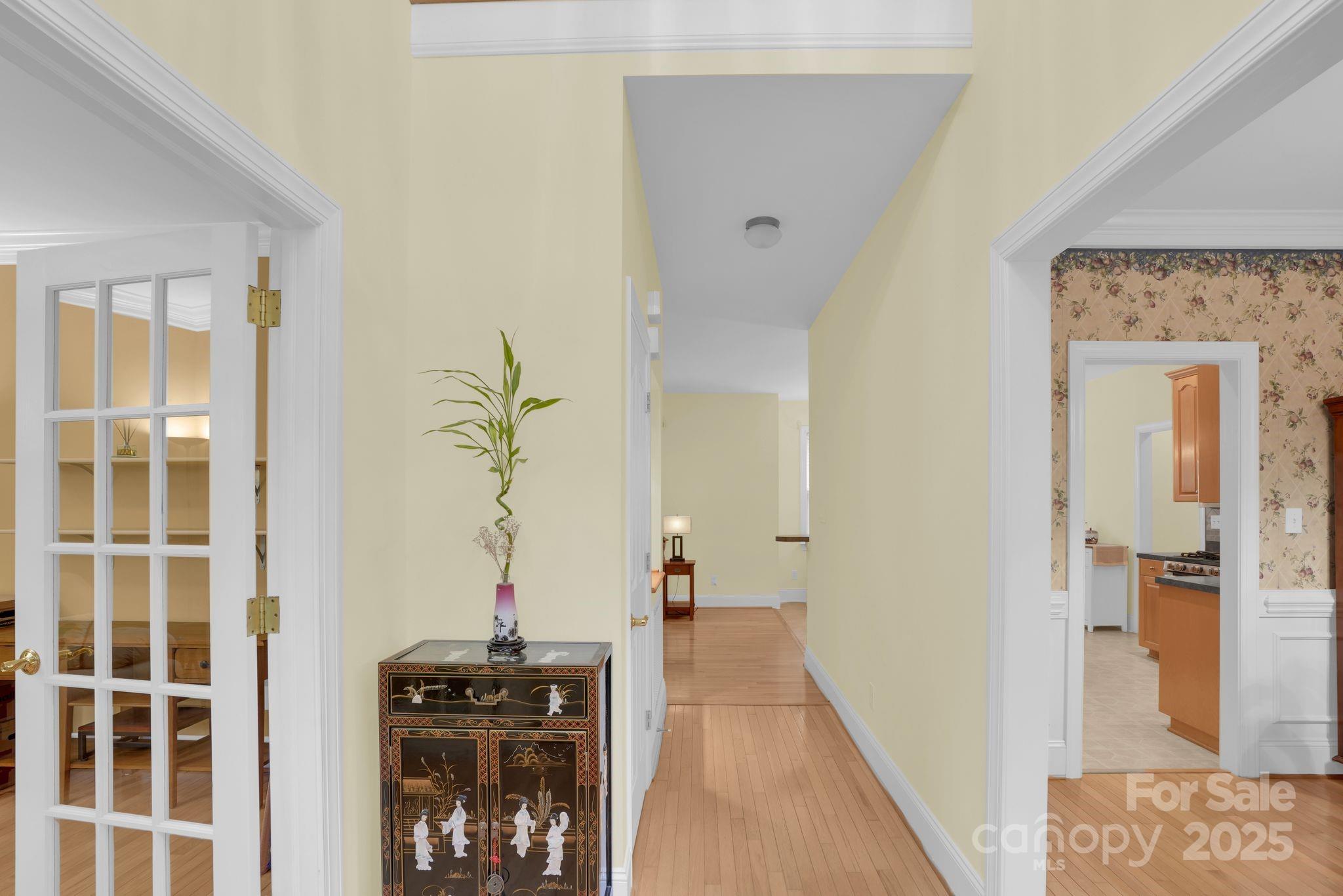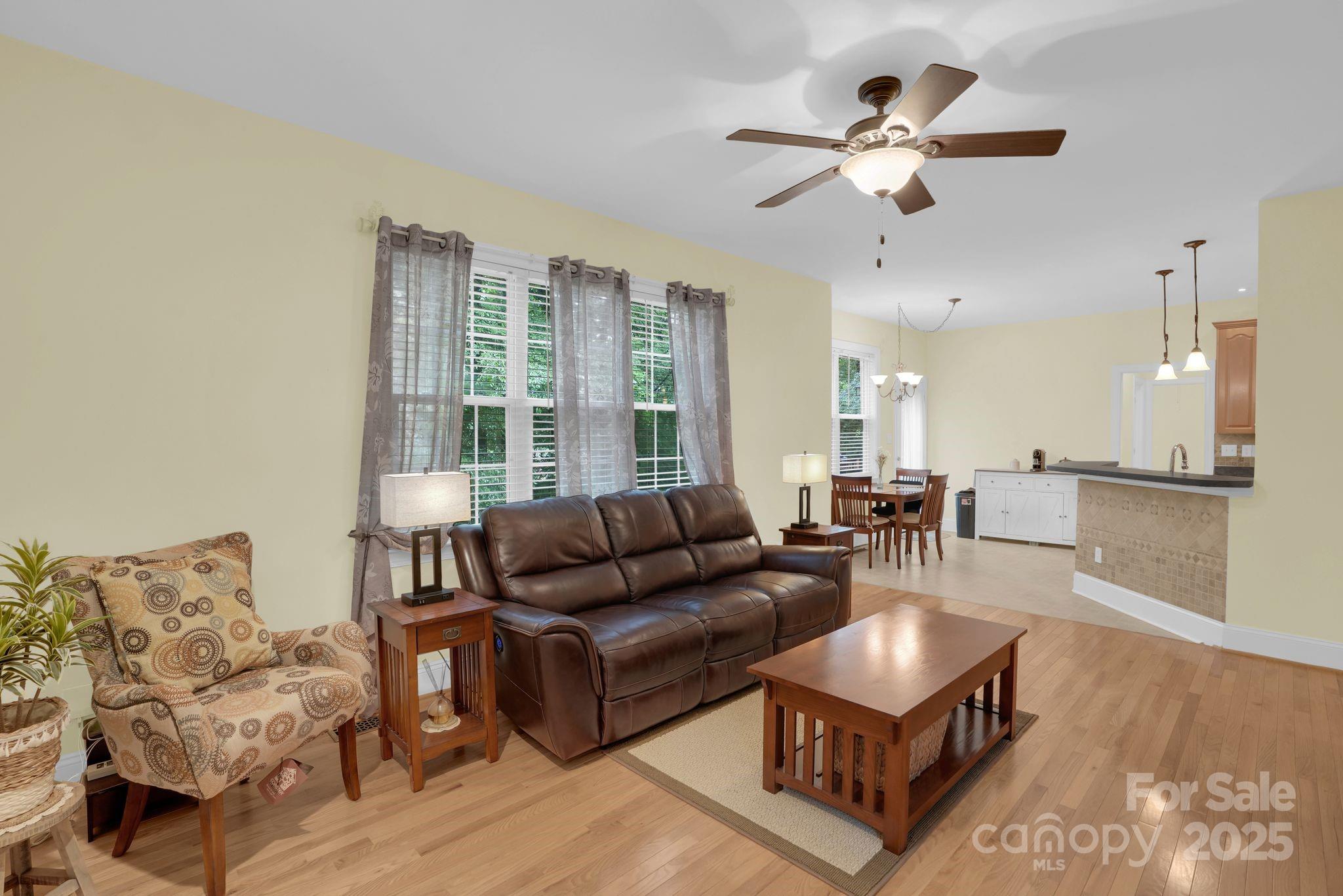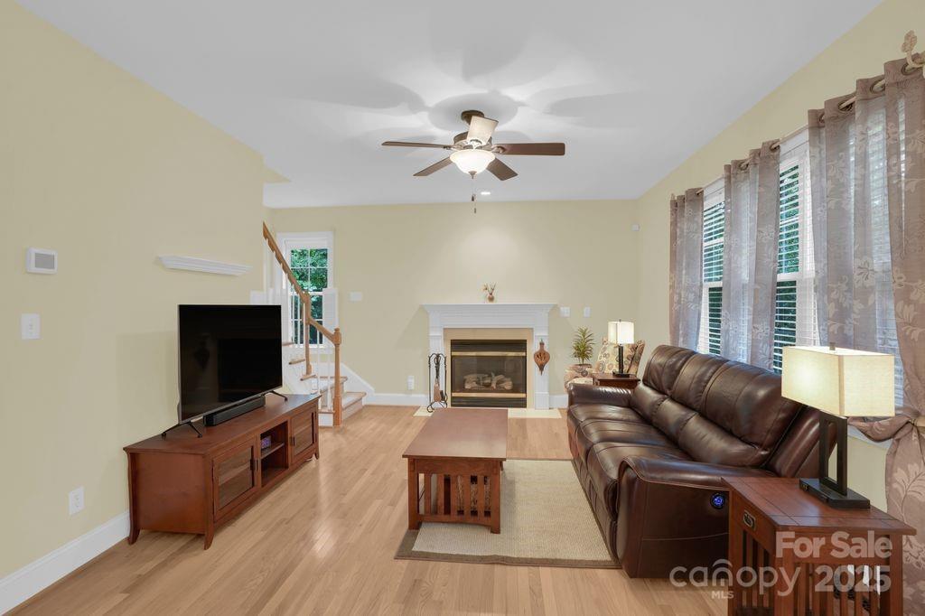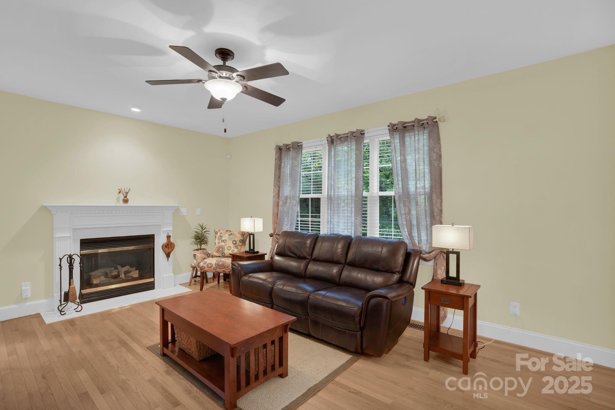 Perfectly positioned on a tranquil cul-de-sac, this full brick home sits on a half-acre in Oxfordshire, prized for its oversized lots and timeless brick architecture. A rocking chair front porch welcomes you inside, where hardwood floors flow throughout the dining room, living room, and home office w/ French doors. The open kitchen boasts 42-inch cabinets, stainless steel appliances, a gas range, and recessed lighting—perfect for everyday cooking or entertaining. The kitchen flows seamlessly to a deck showcasing a private, wooded and fully fenced backyard. A guest bedroom and full bath on the main level offer comfort and privacy. Upstairs, find three bedrooms, including a spacious primary en suite, two full baths, laundry area, loft, and a large bonus room—ideal as a fifth bedroom, media room, playroom, or home gym. Enjoy small-town charm with easy access to shopping, dining, and I-485.