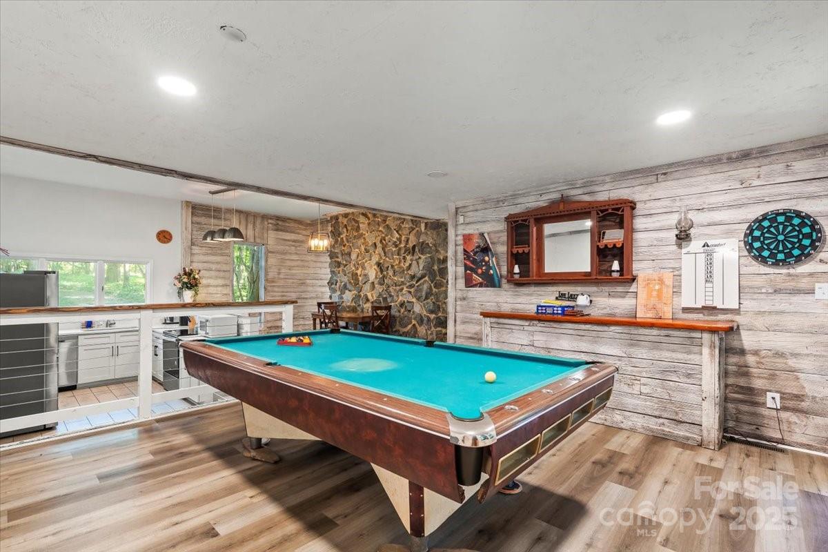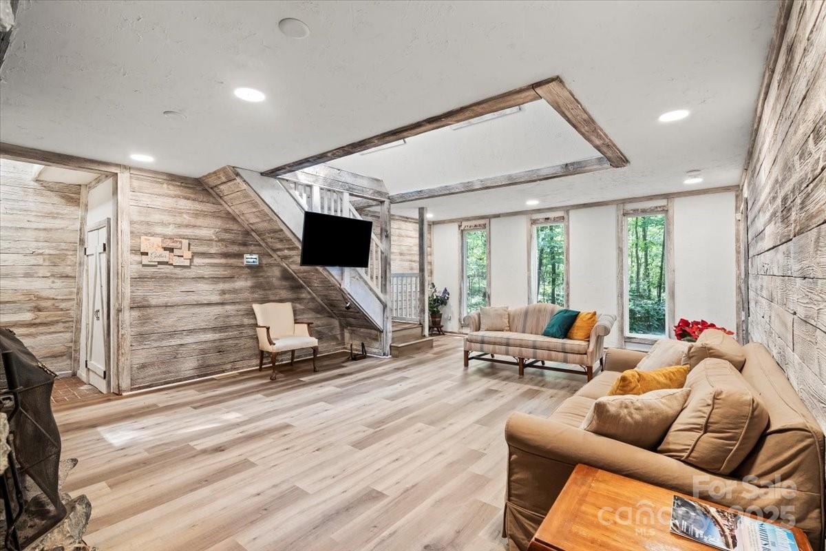 Retreat from the hustle and bustle! Just minutes away from I-485, this beautiful custom home sits on 5 private acres, offering the perfect balance of convenience and tranquility. Inside, rustic barnwood walls and thoughtful details set the tone. The main level features a sunken kitchen with quartz counters, custom cabinetry, a walk-in pantry with floor-to-ceiling cabinets, laundry room, game room (pool table included!), full and half bath with stained-glass windows, unfinished basement, and a stunning great room with skylights and a soaring 2-story stone fireplace. Upstairs, enjoy a loft sitting area overlooking the great room, 3 oversized bedrooms with 2 full bathroom plus a spacious master suite with built-ins, walk-in closet, abundant natural light, private bath, and access to a large deck with sweeping views of the property. Outside, the gated driveway opens to ample parking and a barn—perfect for gardening, hobbies, or extra storage. Relax on the deck and watch deer gather nearby, or cultivate your dream garden in the open acreage. Whether you’re looking for a peaceful retreat, a place to work from home, or a unique property with room to grow—this home is the perfect fit.