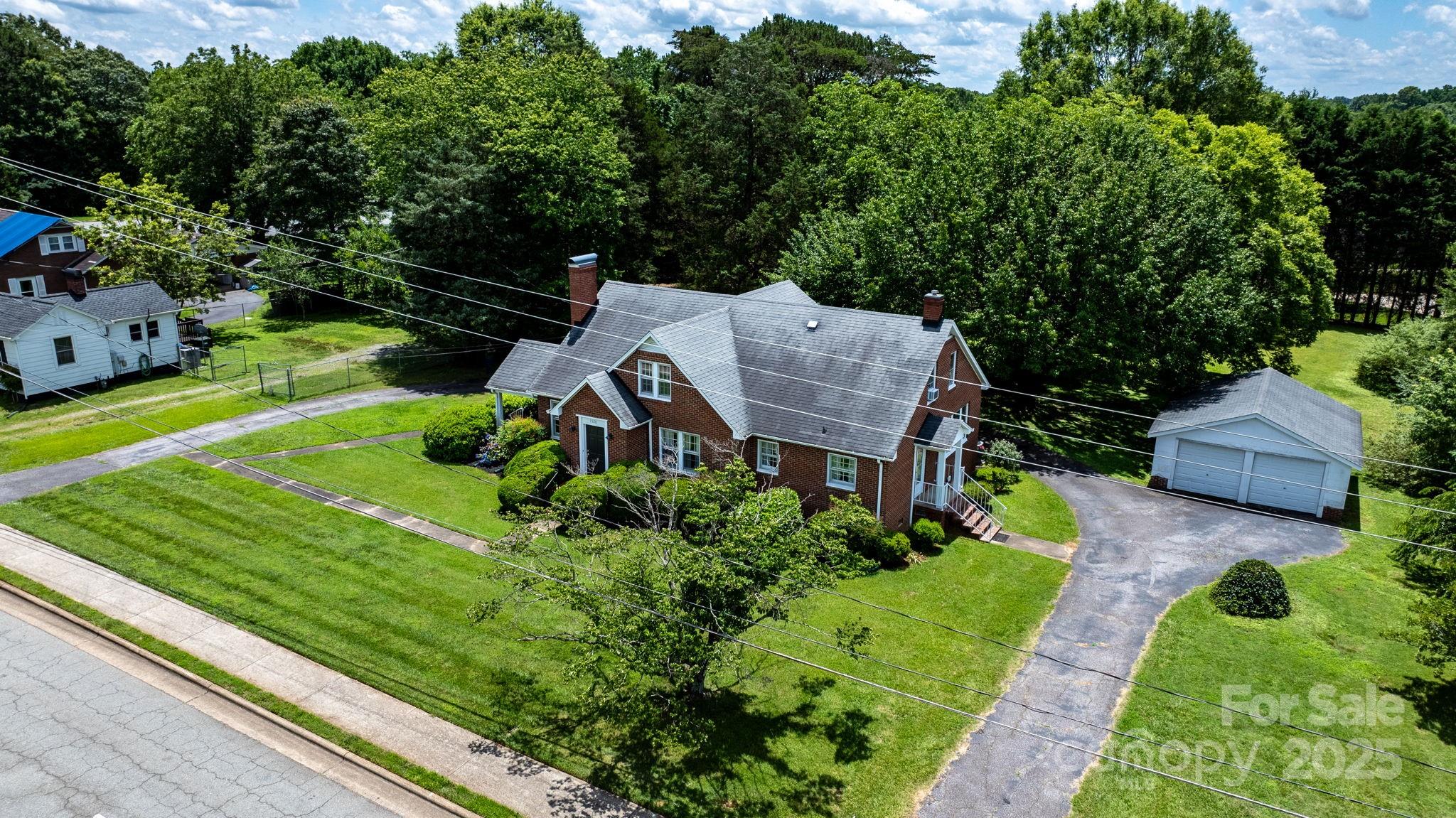Step back in time with this charming 4-bedroom, 2-bath classic brick home nestled on a spacious 0.79-acre lot. A detached double garage and lush rear yard offer both functionality and privacy, while a charming side porch invites you to relax and enjoy the peaceful surroundings. Inside, you’ll find beautiful hardwood floors on both levels, wide moldings, and a cozy study with timeless knotty pine paneling. The home is filled with classic yesteryear character, offering a traditional layout and endless potential. A full basement provides excellent storage or workshop space and detached double garage and circle drive providing plenty of entertaining space. Solid and well-built—move in and update to make it your own