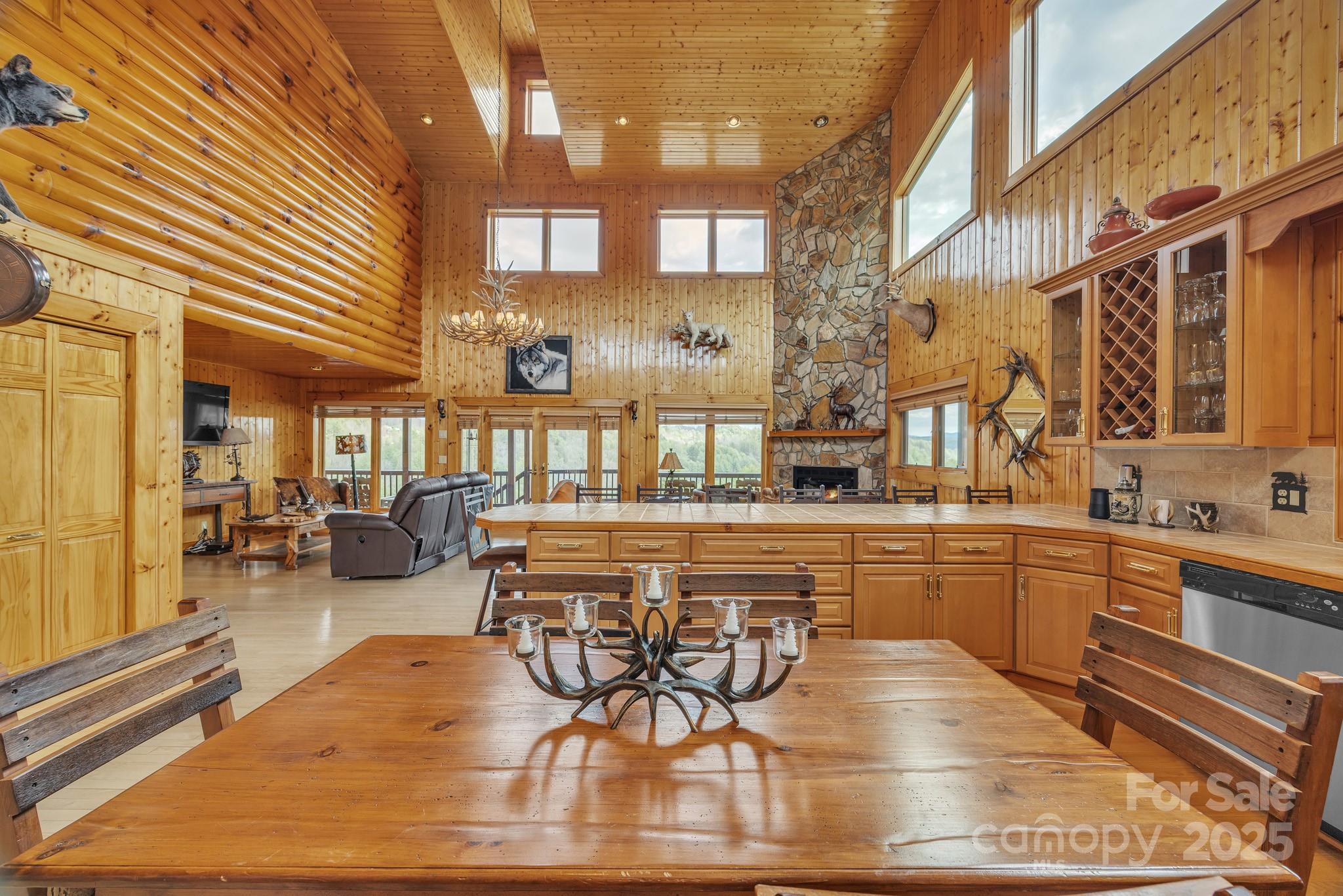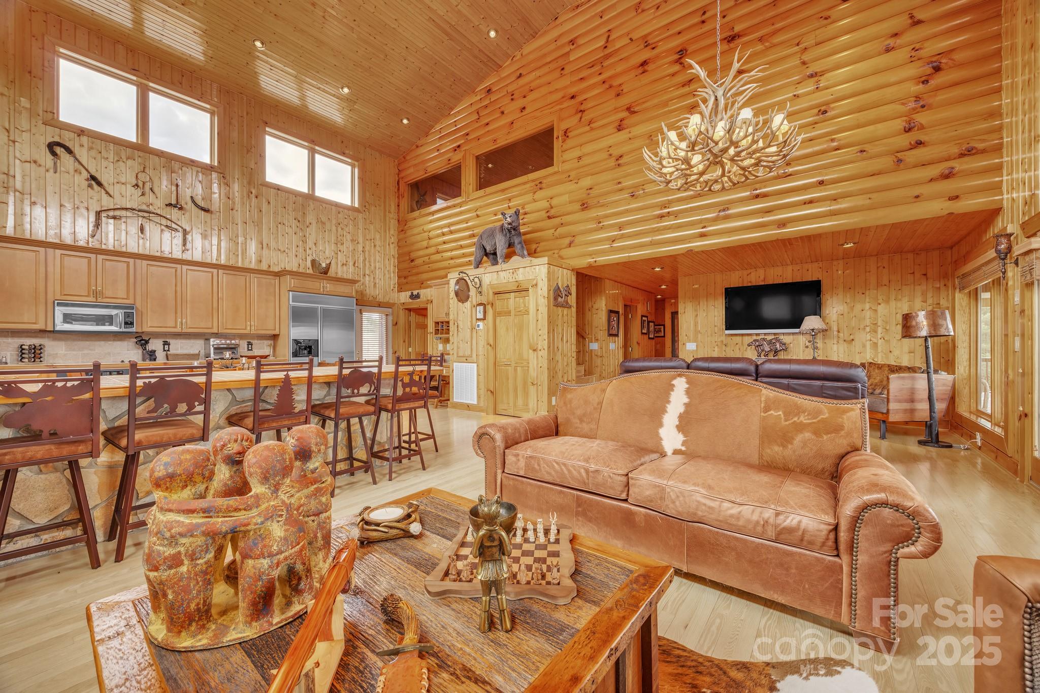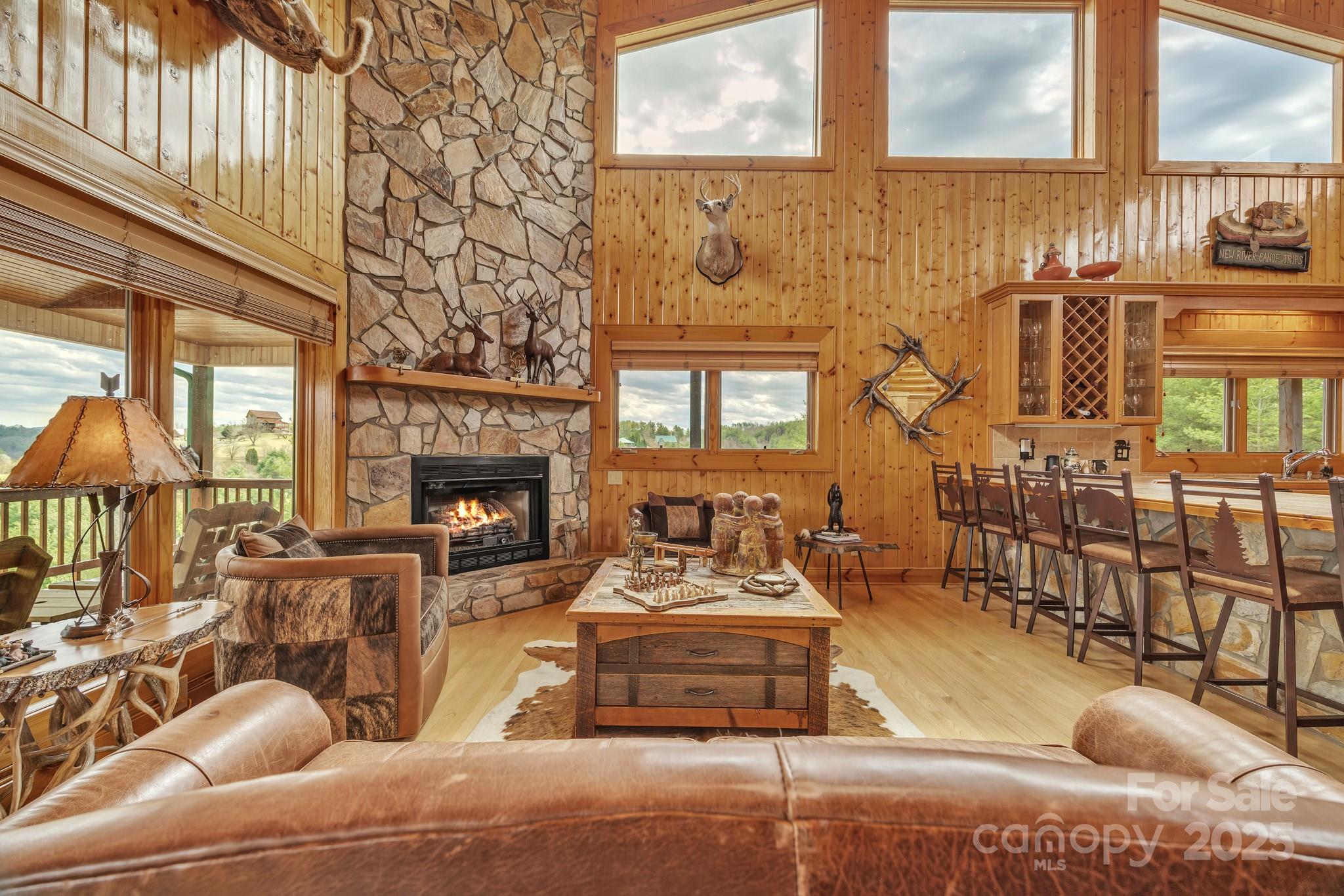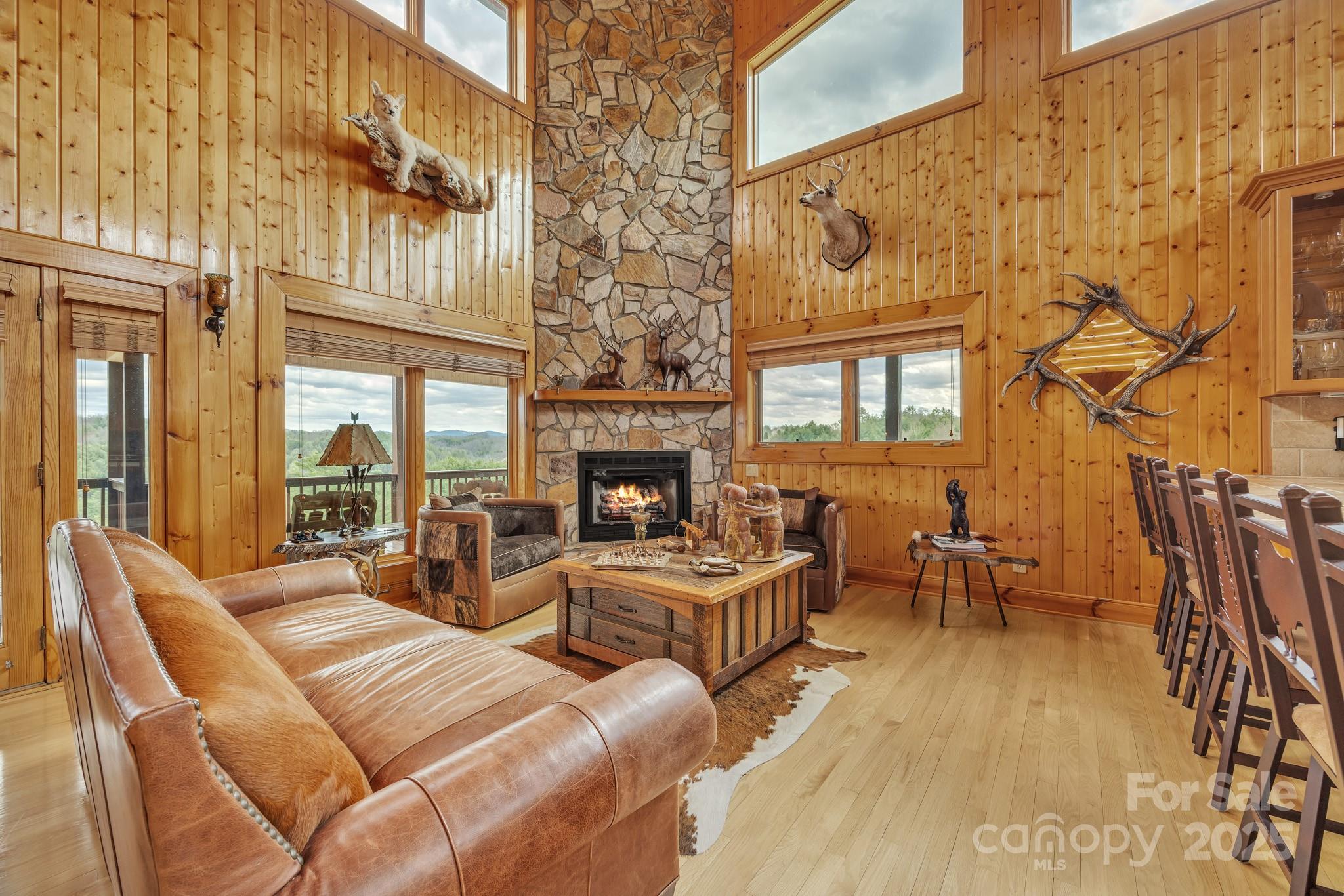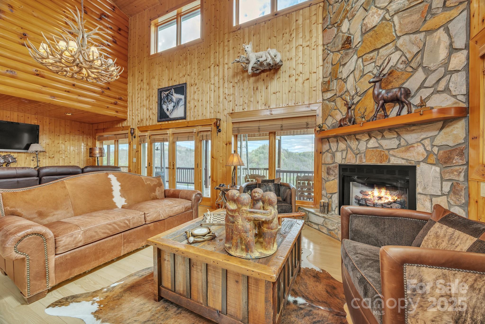 Amazing views from this home Come sit on the front porch and admire the beauty! As you enter the main level, discover a seamless flow through the living area, featuring a chef's kitchen equipped w/stainless appliances throughout & granite counters and a long bar/table which make it perfect for family gatherings. The inviting great room boasts vaulted ceilings and a cozy gas-burning fireplace with two sitting areas perfect for creating cherished memories. On this level, you’ll also find 2 bedrooms & 2 full baths along with a half bath for added convenience. Steps away go to the upper level to explore a reading loft plus the master suite which provides privacy & comfort. the Master suite including the master bath which has a jacuzzi tub and steam shower ensures a private area while you are getting ready. Additional phenomenal views just outside the master bedroom windows. The lower level houses 2 bedrooms and full bath ensuring ample space for everyone to relax and unwind while visiting.