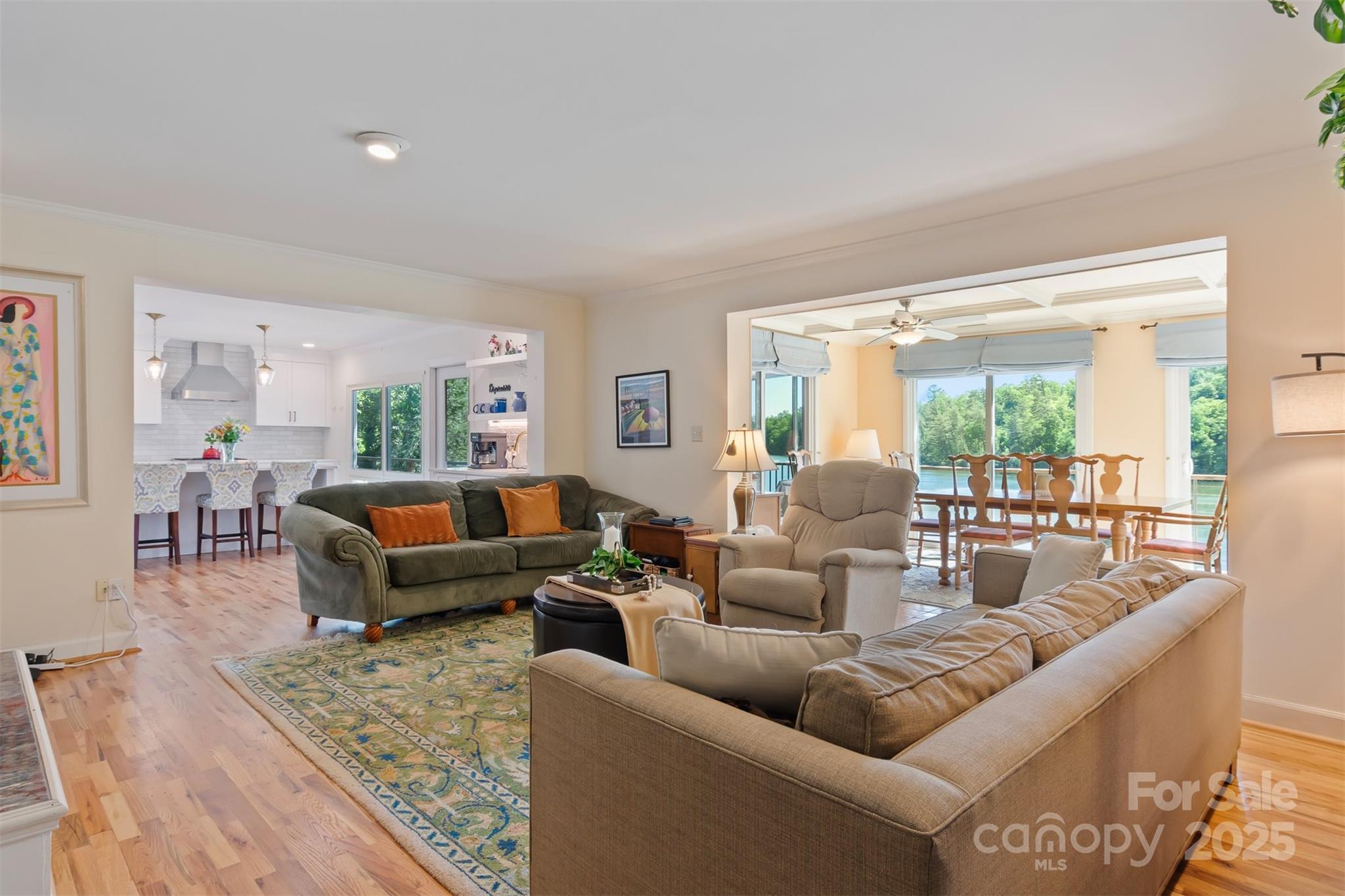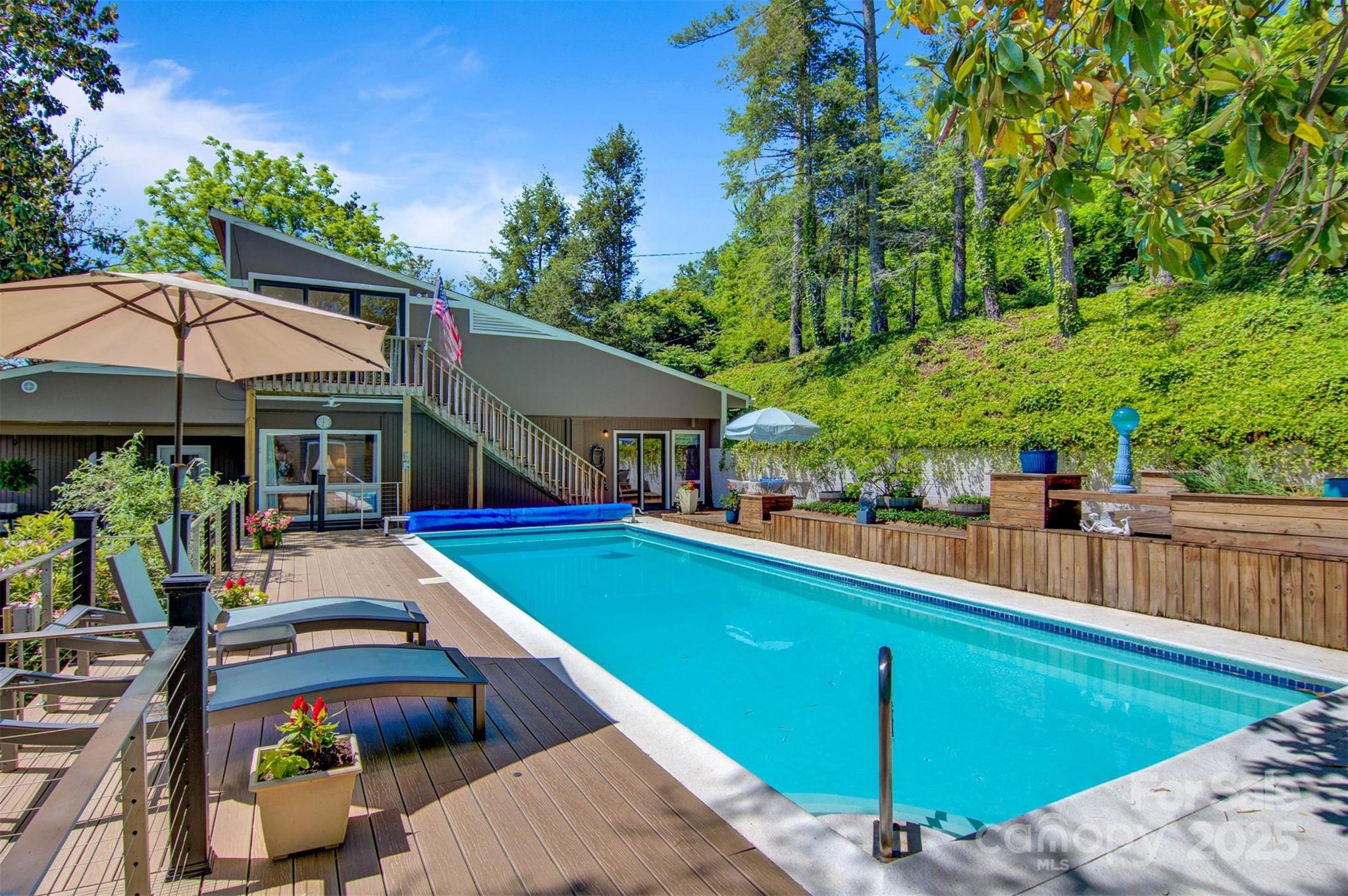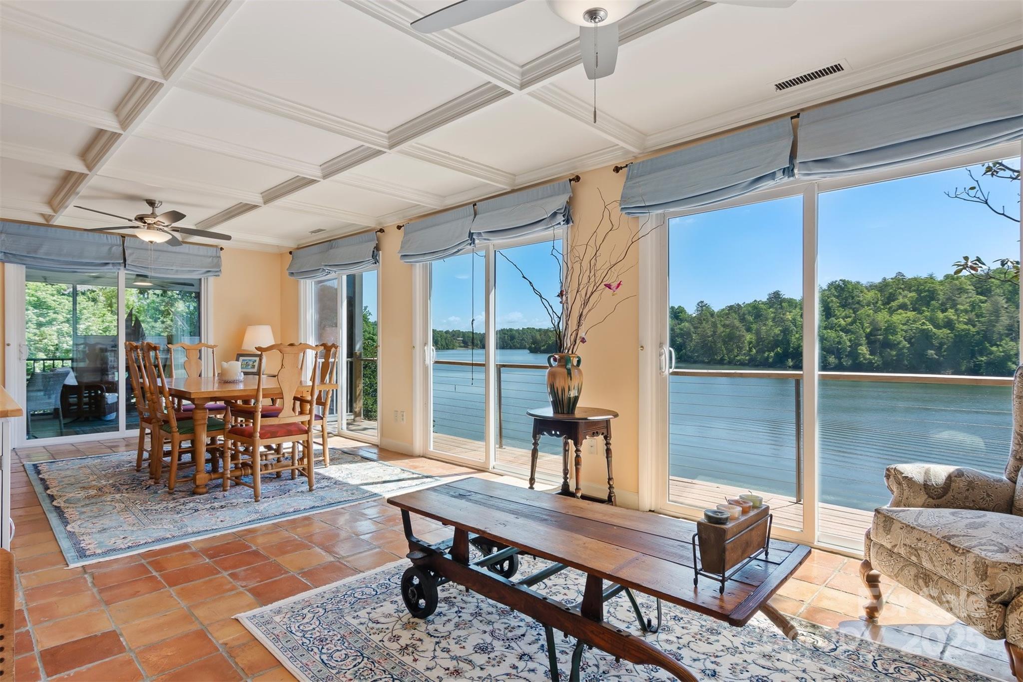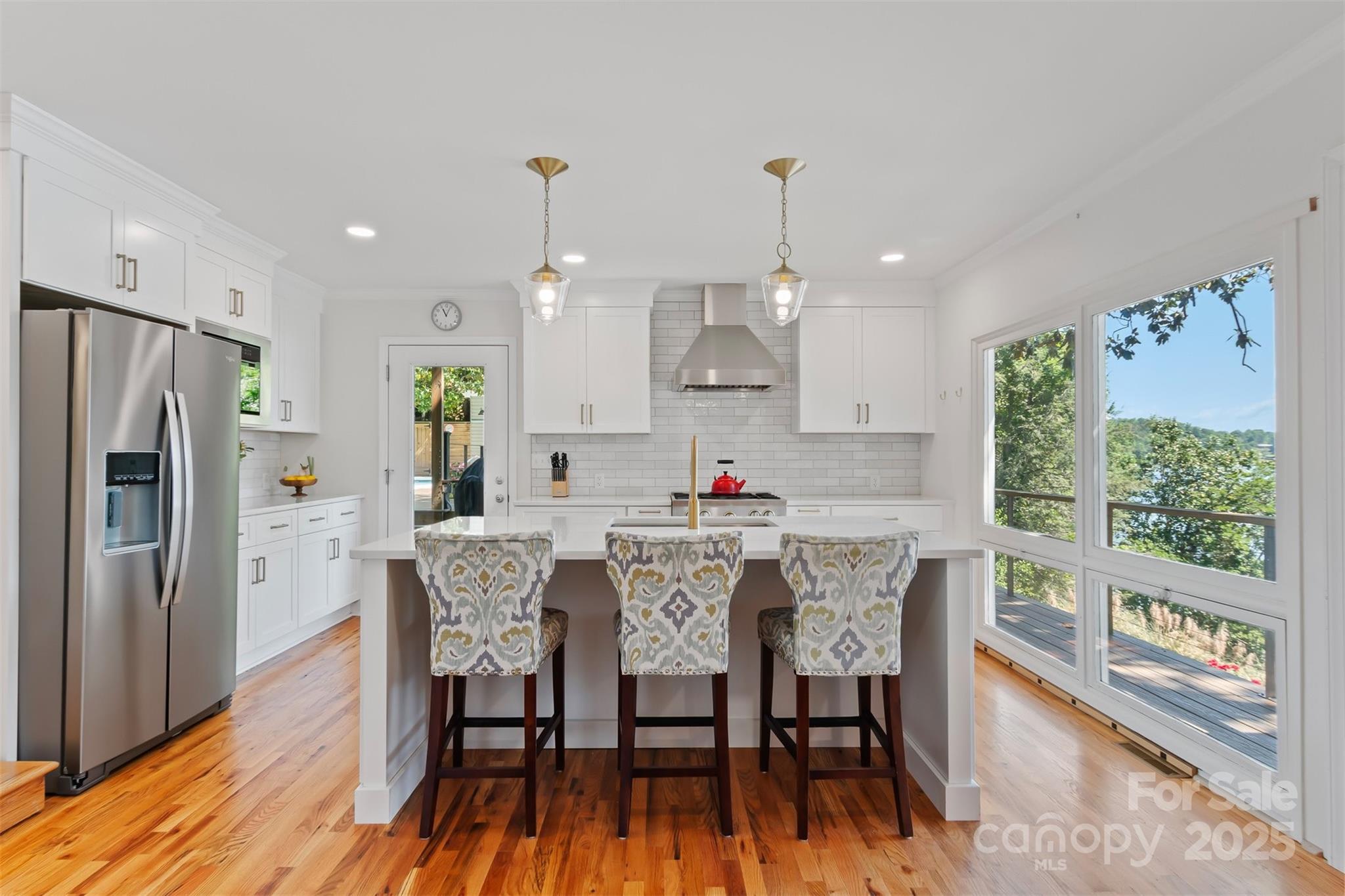 Exquisite Lake Hickory waterfront estate on a double lot featuring a stunning inground pool with panoramic views. This refined retreat offers meticulously landscaped grounds, a professional garage with workshop, elegant wrap-around decking, protective seawall, and a private floating dock. The interior showcases expansive entertaining spaces with floor-to-ceiling windows framing breathtaking 180-degree lake views. Upstairs, discover an impressive master suite with private living area, spiral staircase, and kitchenette. The main floor includes two additional bedrooms, one ideal as a secondary master. The finished basement features a versatile bunk room with dedicated bathroom and patio access. Recent luxury renovations totaling over $250,000 include a brand new gourmet kitchen, covered porch, custom deck, and completely reimagined bathroom—all finished to the highest standards with premium materials and craftsmanship. An extraordinary lakefront lifestyle awaits.