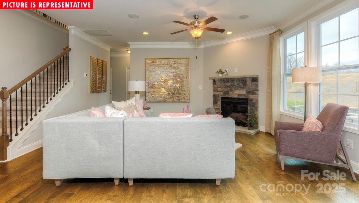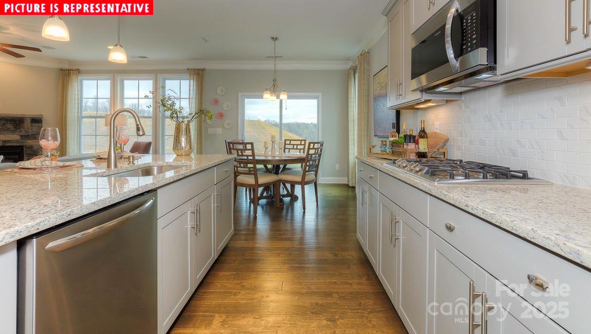 Welcome to Brantley, America's #1 Builder's newest exclusive community in Mooresville! Enjoy a unique boutique community with only 59 homes surrounded by trees and walking trails, located directly across the street from Mooresville Graded Schools! This five bedroom, four bathroom NEW CONSTRUCTION home comes with tons of upgrades! Formal dining room connects to a gorgeous Butler's pantry and breakfast bar. Open kitchen-family room concept with gas fireplace leads over to a 1st floor guest suite with full bathroom along with a convenient built-in drop zone! Hardwood staircase lined with wrought iron spindles leads to a generous sized bonus room. Primary suite is the epidemy of luxury adorned with a trey ceiling, gorgeous primary bath tile shower, separate garden tub and large closet. Tankless water heater, smart home technology package, modern crown molding and cased windows all come with your brand new home!