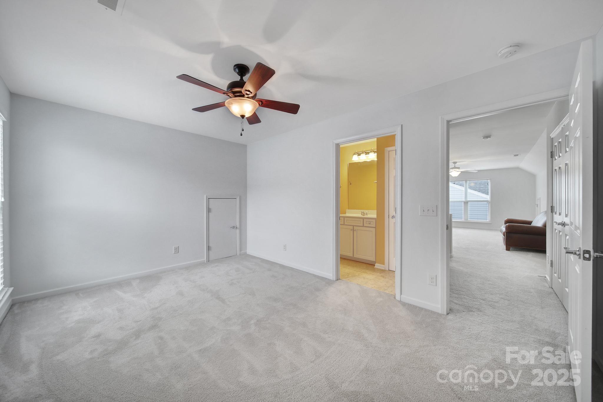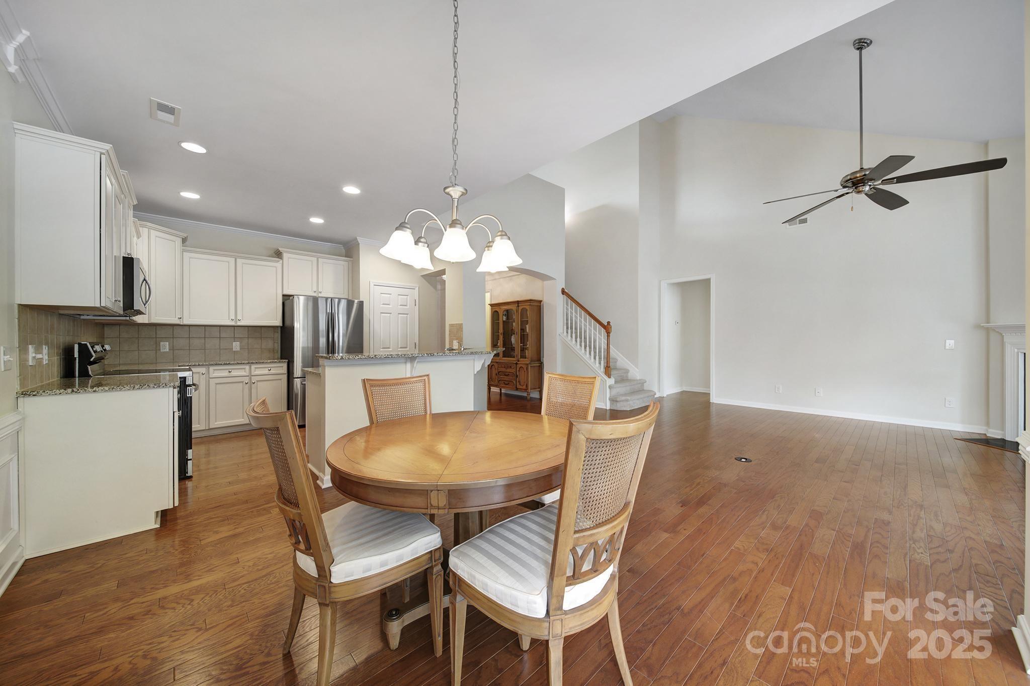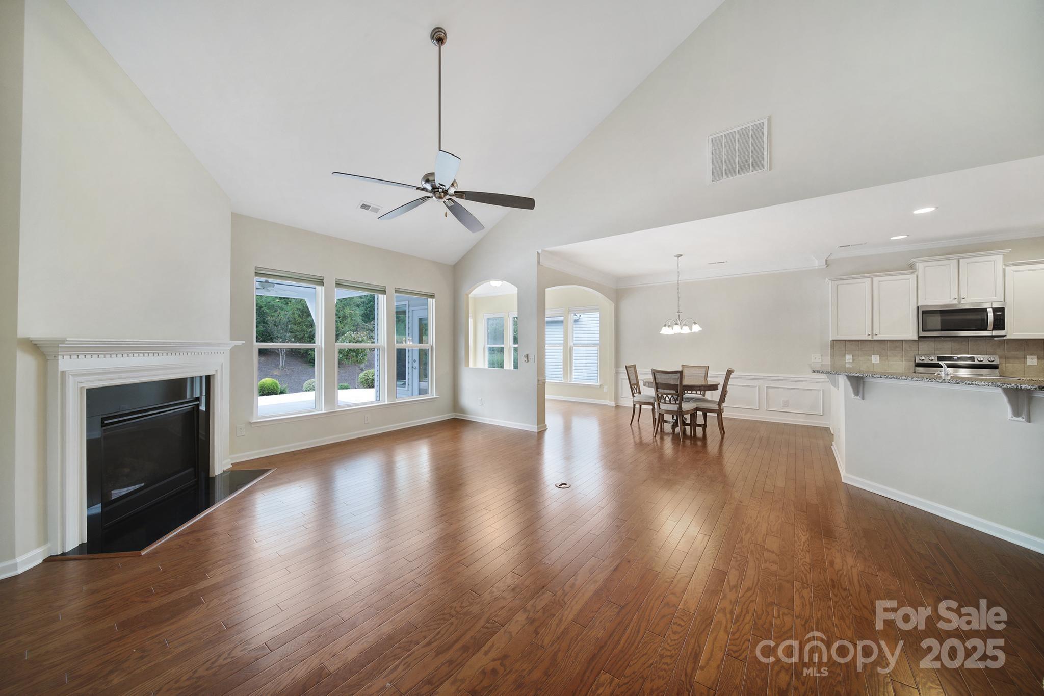 Welcome to this stunning Copper Ridge with Loft home in the highly sought-after 55+ Sun City Carolina Lakes, a premier active adult community where lifestyle and comfort meet. This thoughtfully designed home combines functional living with elegant details, creating the perfect space for both everyday enjoyment and entertaining. Step inside to find an open-concept floor plan anchored by a spacious kitchen featuring crisp white cabinetry, a stylish tile backsplash, SS appliances and convenient bar seating for casual dining. The kitchen seamlessly flows into the dining area and expansive great room, where soaring vaulted ceilings and a cozy gas fireplace set the stage for gatherings with family and friends. A light-filled sunroom sits just off the dining area, inviting you to relax with your morning coffee or unwind with a good book, while the expansive custom lanai extends your living space outdoors—ideal for hosting guests or simply enjoying the privacy of your wooded backyard retreat. The primary suite comes complete with a spacious bedroom, walk-in closet, and en-suite bathroom featuring a built-in vanity and a large, beautifully tiled shower. A secondary bedroom and full bath on the main level offer comfort and convenience for visiting guests. Upstairs, the versatile loft area provides endless possibilities—whether you envision it as a hobby space, game room, or second living area. An additional guest bedroom and full bath complete the upper level, ensuring plenty of room for visitors. Make sure to check out the main level laundry room, complete with drop zone and custom built-in cabinetry. Bonus - the refrigerator and washer/dryer included! With its thoughtful layout, stylish finishes, and inviting indoor-outdoor spaces, this home offers the best of both comfort and community living. Don't forget to check out all the resort style amenities including golf, multiple pools, sports courts, pickleball, tennis, Lake House, Lodge, softball fields, dog parks and so much more.