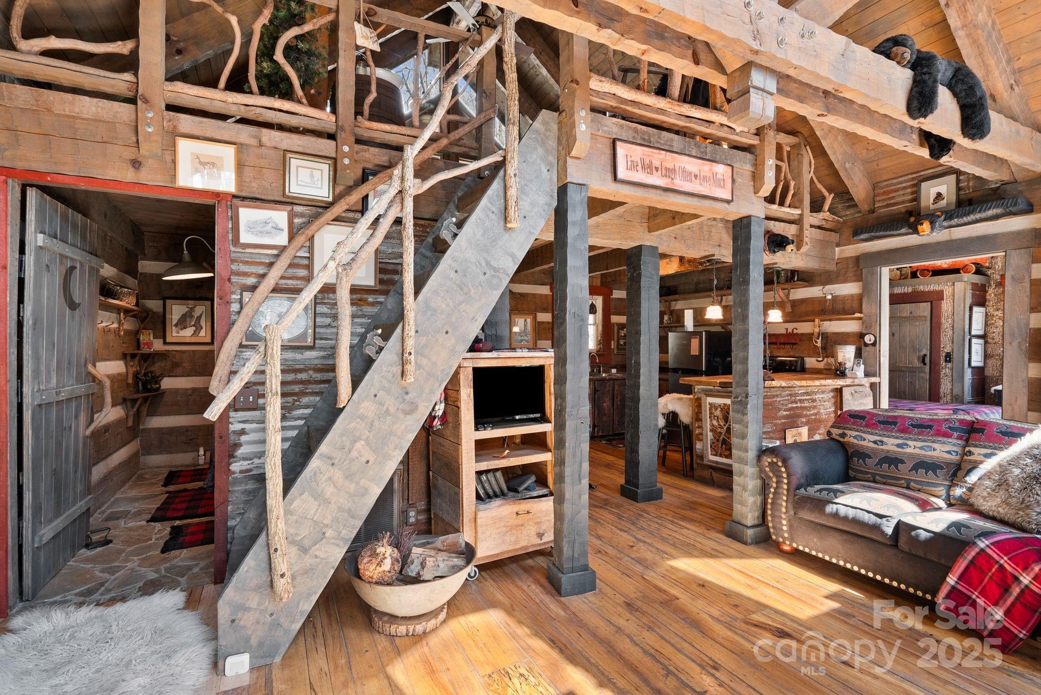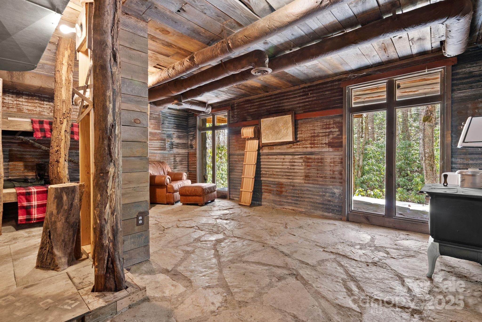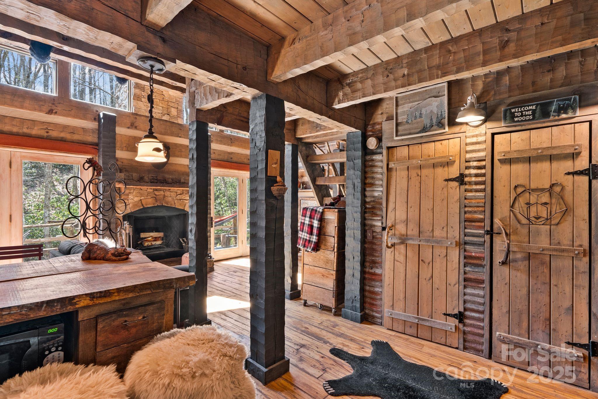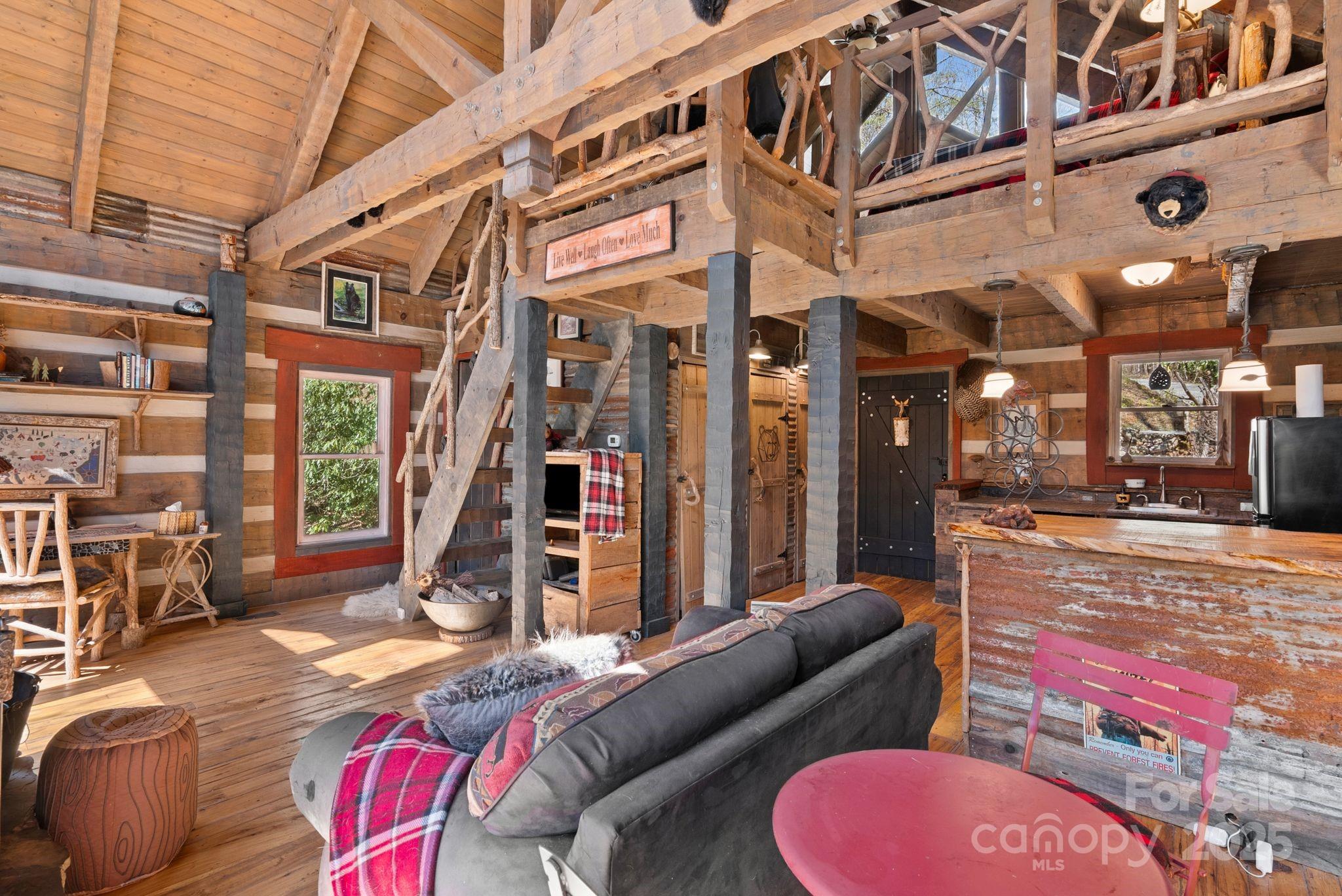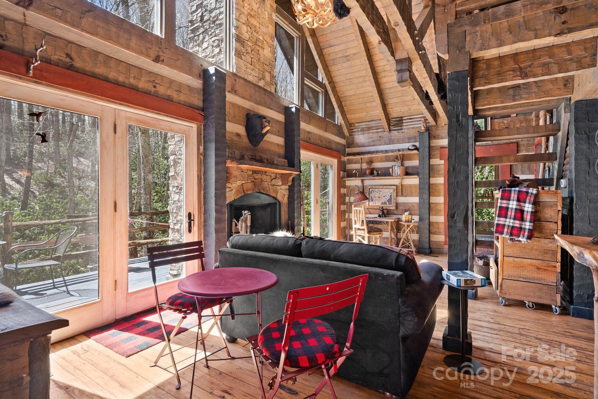 **HIKER'S DREAM**This beautiful hand hewn log cabin wins first place in the rustic category! Designed & built by an architect for his personal use, it could not be more hand crafted down to the custom made gutters. It truly is a work of art showcasing patinaed metal, stone and of course wood for that warm feeling and great windows for lots of light. The setting is idyllic surrounded by rhododendrons, paths to wander around the cabin and yes a babbling brook in the backyard & a beautiful pond w/in walking distance in the common area. Not to big but the perfect size for a getaway cabin or full time hide away w/Max Patch, & the AT w/in hiking distance. The heated daylight basement with beautiful flagstone flooring adds the perfect space for a workshop or studio. This cabin is part of the gated Preserve at Elk Knob community with beautiful common areas to explore so check out the Farm Map. Brand new well pump & pressure tank. Being sold furnished.