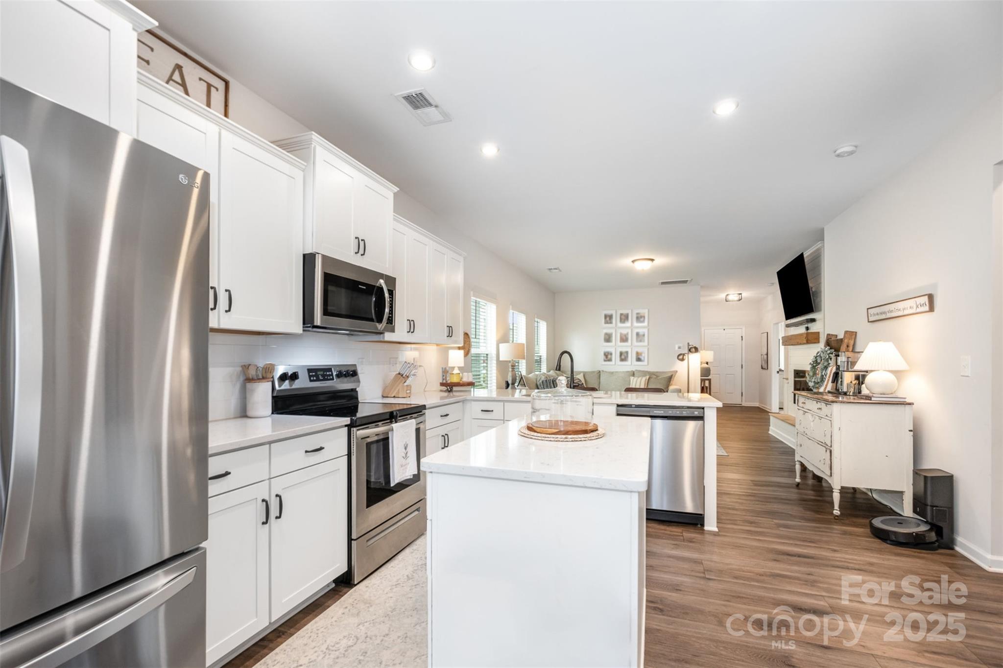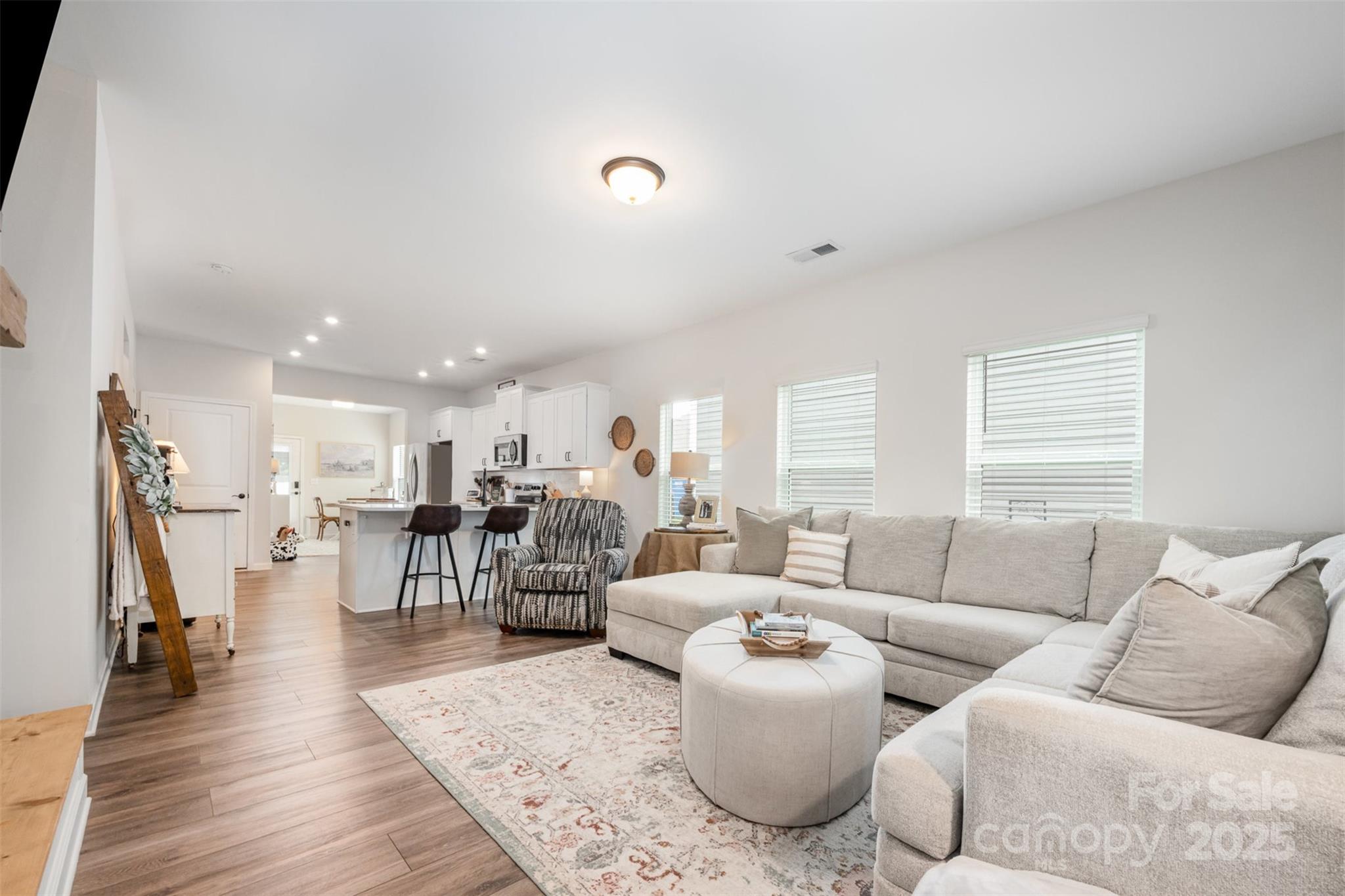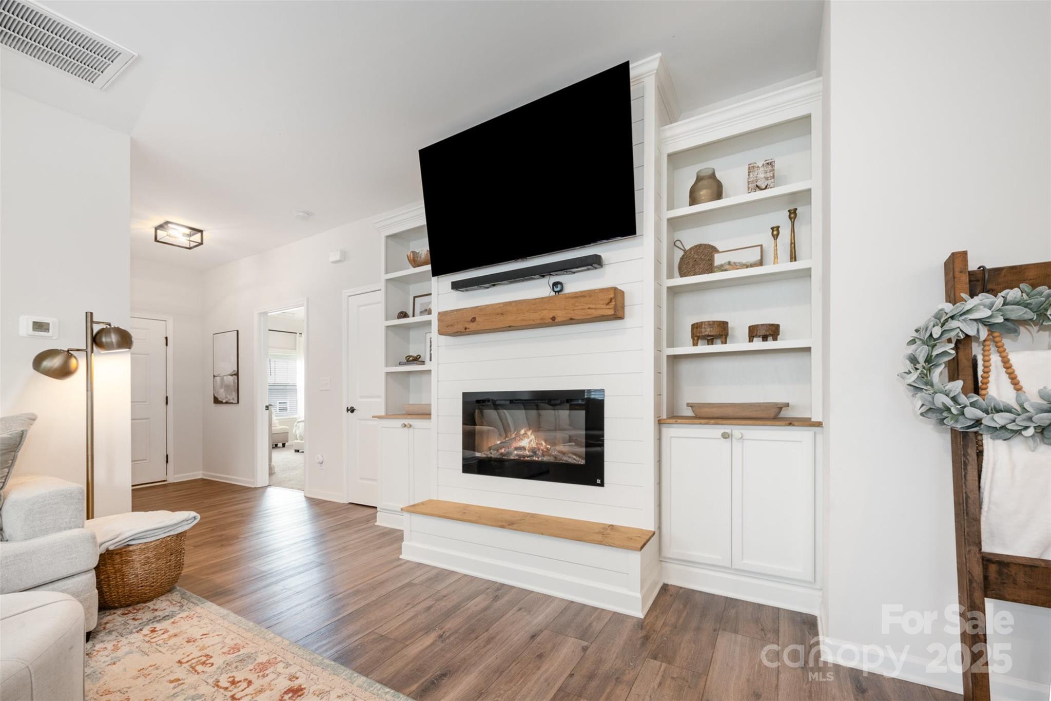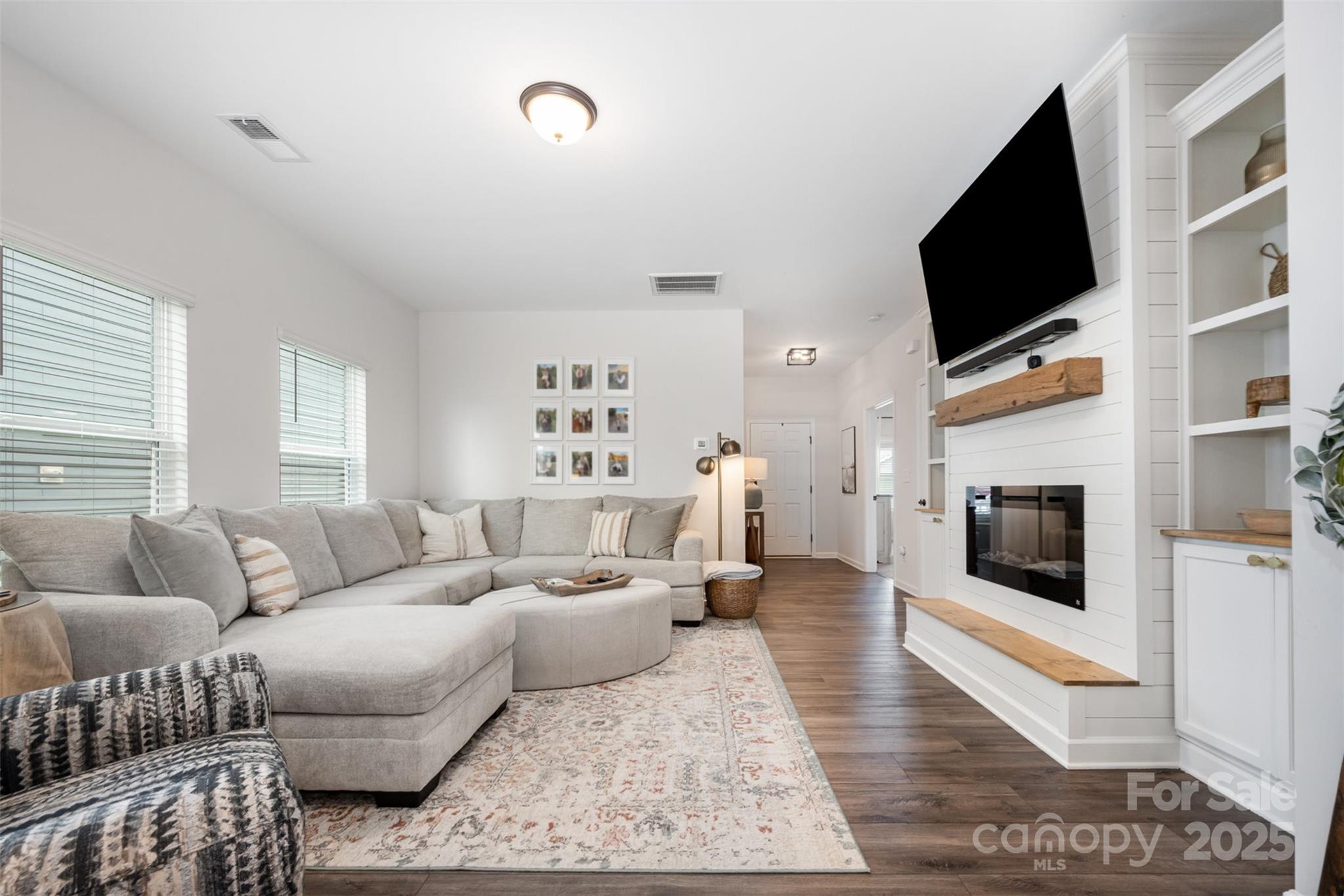 Step into this thoughtfully designed single-story home where every detail has been curated for comfort, function, and style. Built in 2021, this residence features a bright, open-concept layout perfect for modern living. Highlights include: A stunning all-white kitchen with upgraded quartz countertops, island, and stainless steel appliances. Custom designer touches throughout from the built-ins in the living room that adds warmth and character. Detailed trim-work and wallpaper in bedrooms that elevates each space. Enjoy built-in garage shelving, an extended driveway, and a covered rear patio — all crafted for comfort and convenience. Stylish, functional, and move-in ready — this home is perfectly prepared for its next owner to make it theirs.