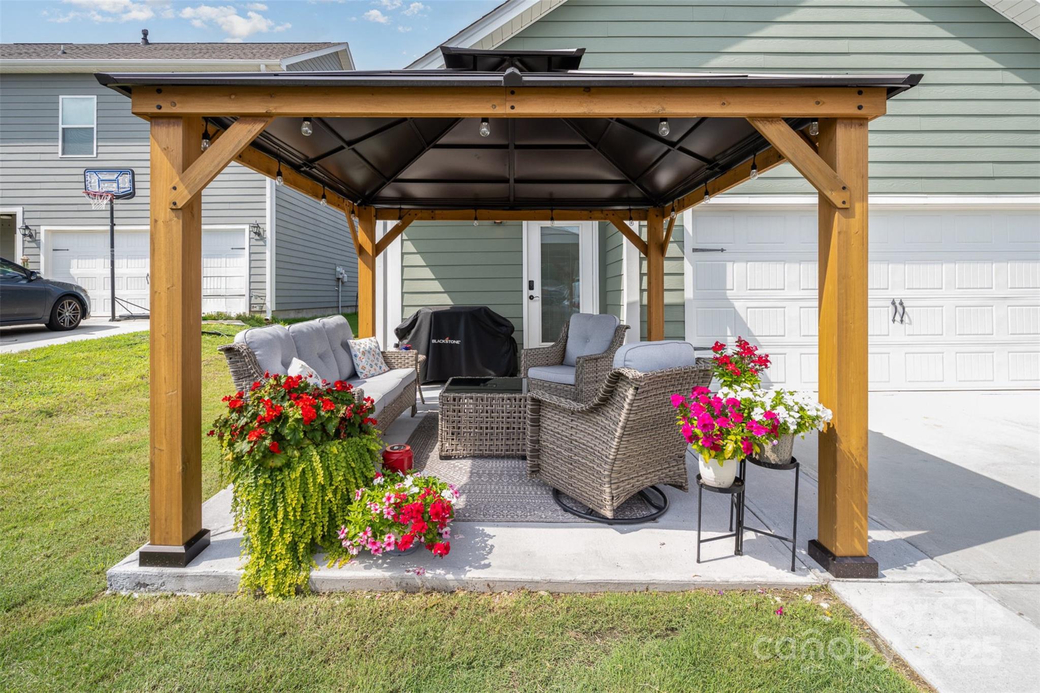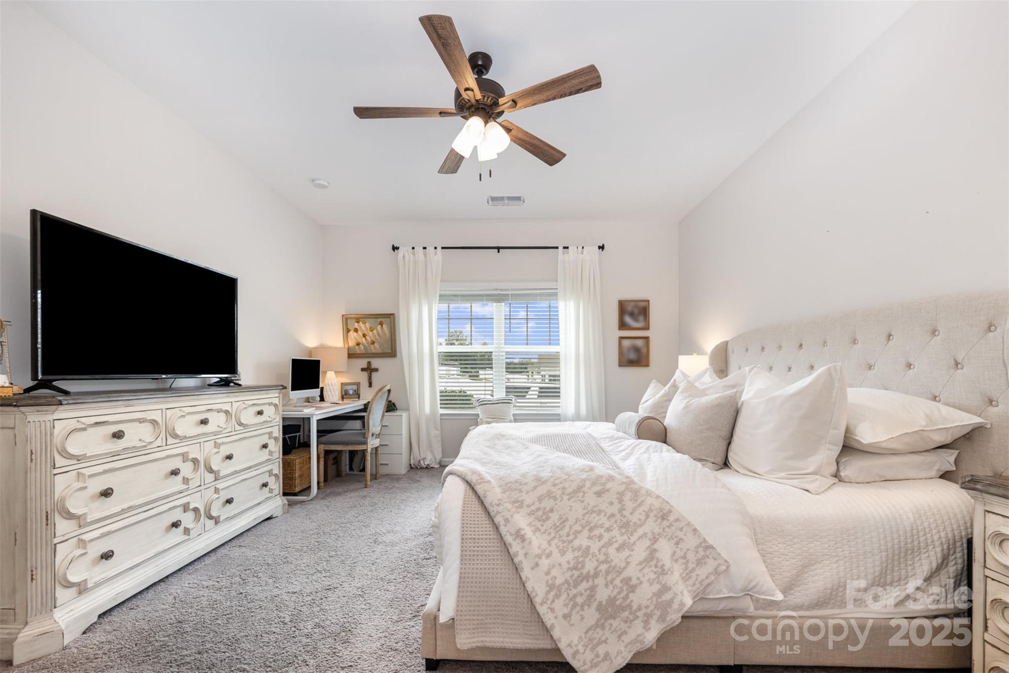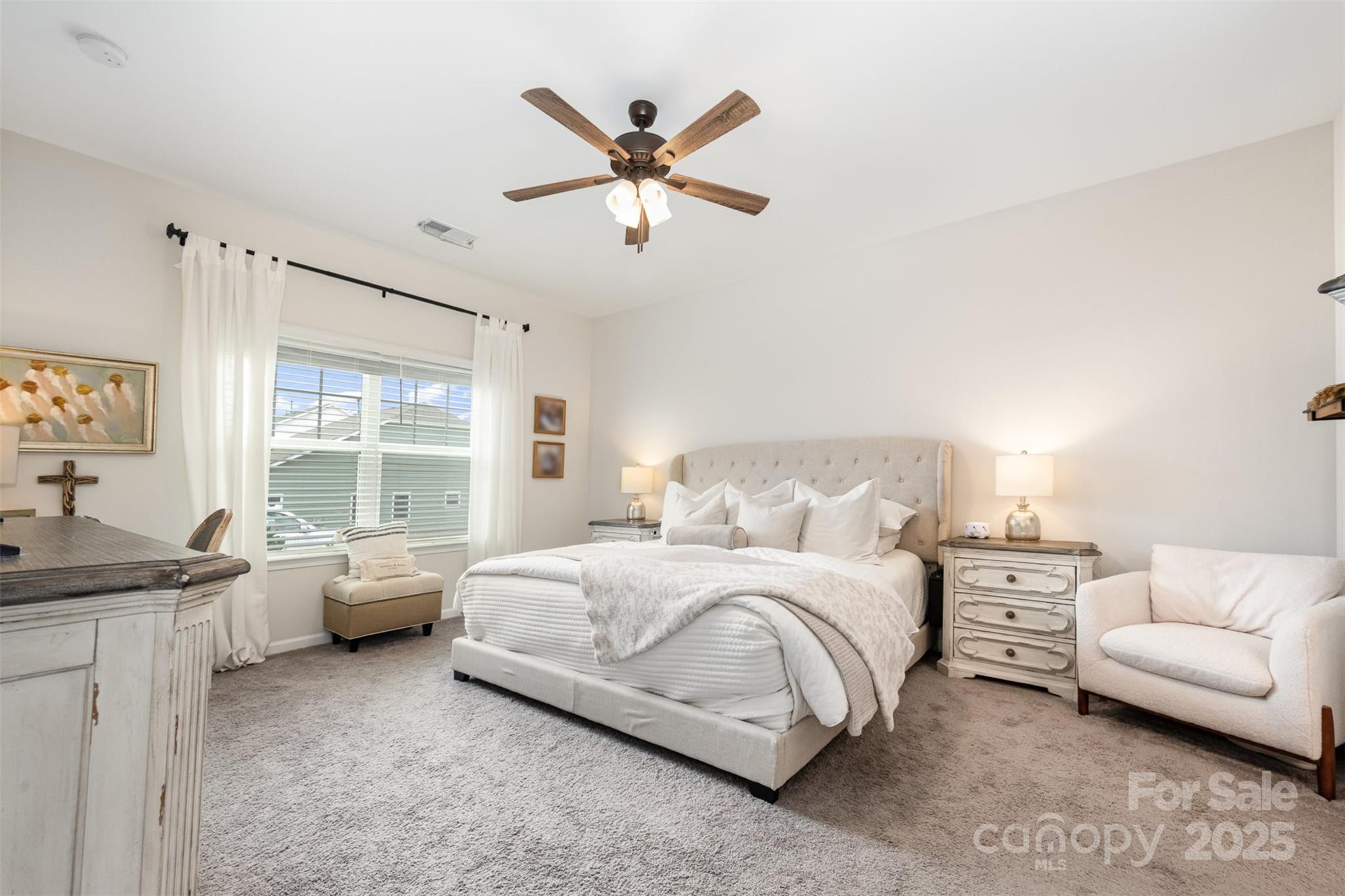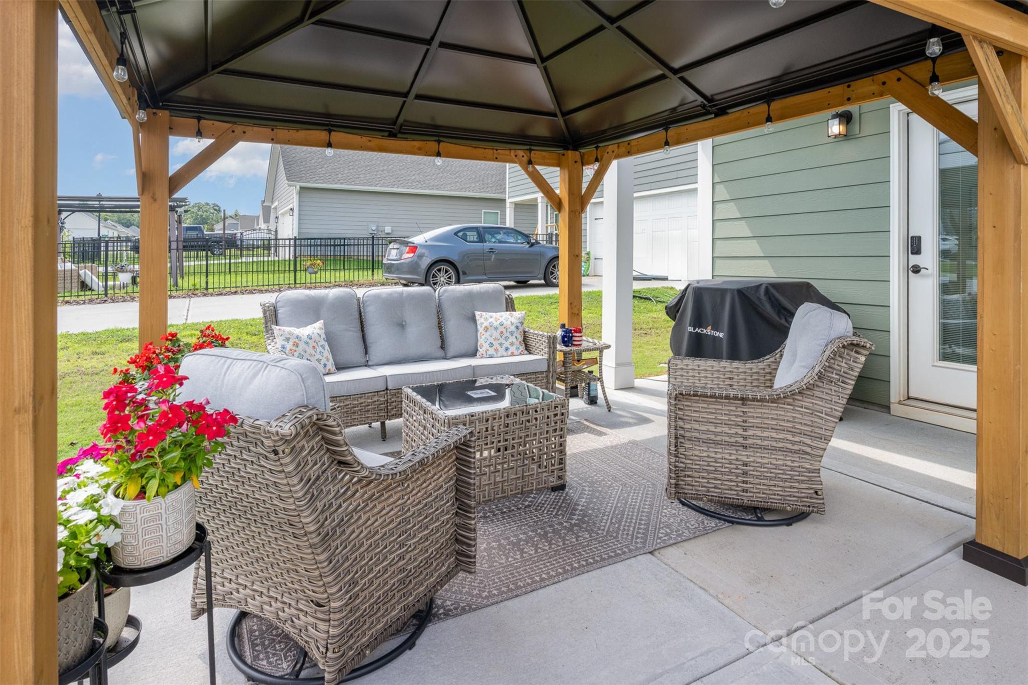Step into this thoughtfully designed single-story home where every detail has been curated for comfort, function, and style. Built in 2021, this residence features a bright, open-concept layout perfect for modern living. Highlights include: A stunning all-white kitchen with upgraded quartz countertops, island, and stainless steel appliances. Custom designer touches throughout from the built-ins in the living room that adds warmth and character. Detailed trim-work and wallpaper in bedrooms that elevates each space. Enjoy built-in garage shelving, an extended driveway, and a covered rear patio — all crafted for comfort and convenience. Stylish, functional, and move-in ready — this home is perfectly prepared for its next owner to make it theirs.