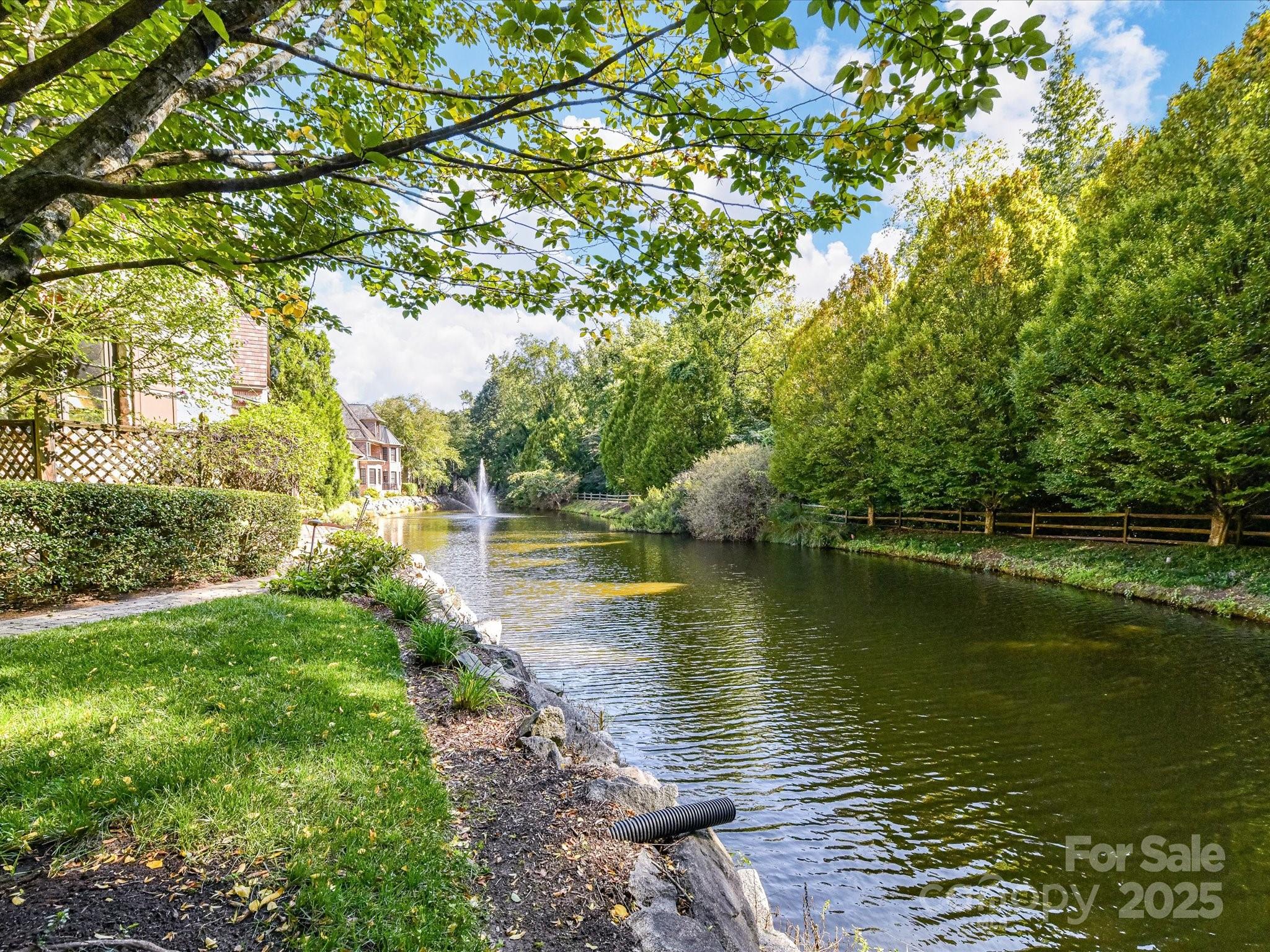 Welcome to Charlotte's best version of France! Tucked away among mature trees and behind a majestic gate is the gorgeous french-inspired village of Courance. Enjoy timeless Provencal charm, cobblestone streets, gas lanterns and modern elegant architecture. Encompassed by nearly an acre, this pristine 4BR/3.5BA estate delivers with stunning water views, exceptional outdoor living plus a 3-car oversized garage. Thoughtfully designed with dual staircases, custom moldings, a seamless floor plan, rich Brazilian cherry hardwood floors and various grand living areas. Discover 3 stunning fireplaces, gym w/kitchenette & media loft for your entertainment. Chef’s kitchen boasts premium granite counters, SubZero/Viking appliances, custom cabinetry, warming drawer & 2 pullout cutting boards. Main-level Primary suite offers 2 closets, bath with heated floors. Outdoor veranda and patio provide breathtaking 180-degree pond views, perfect for serene relaxation. Ludowici clay tile roof made in France includes 65-year warranty. Courance is conveniently located to Southpark Mall, Phillips Place, fine dining & local shops. HOME IS NOT LOCATED IN FLOOD PLAIN.