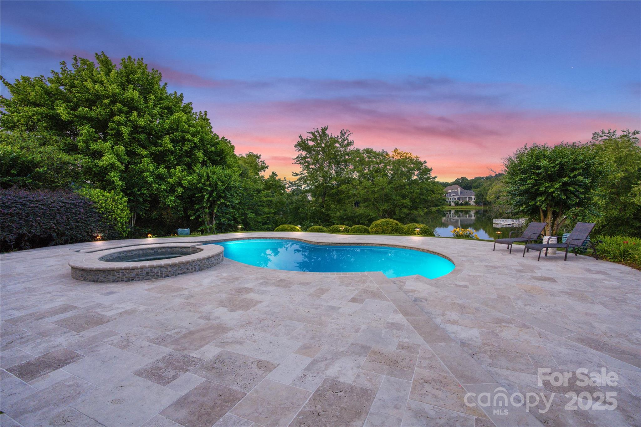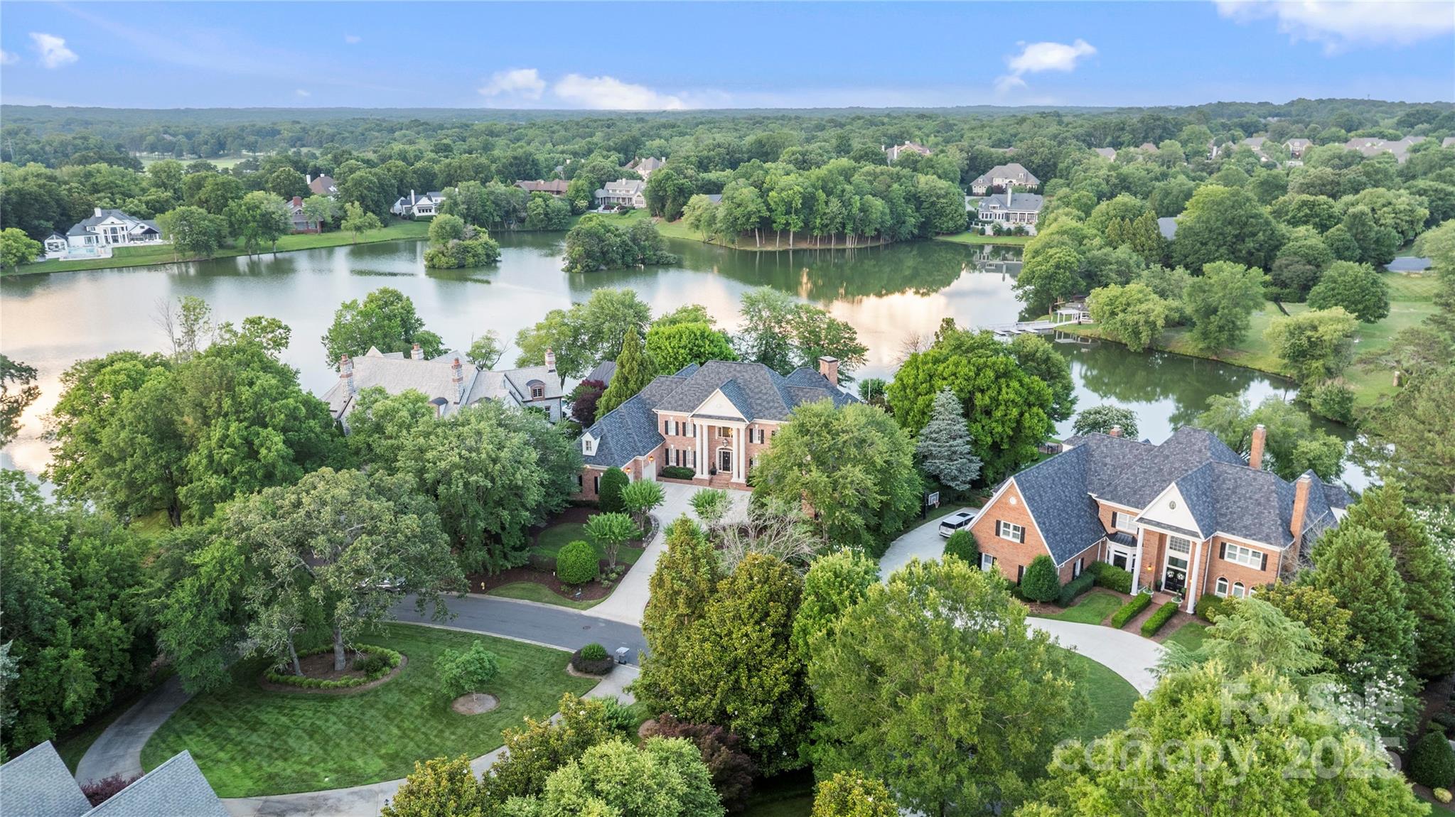 Stunning Jas am group built lakefront home in the exclusive gated community of Challis Farm! Situated on a premier waterfront lot, this home offers breathtaking lake views from nearly every room. Enjoy over 7,200 sq ft of luxury living with a brand new chef’s kitchen, double ovens, gas cooktop, 2 islands, and dual dishwashers. The main level boasts a spacious primary suite with dual walk-in closets and spa bath. Formal living/dining, kitchen, all offer elegant touches and serene views. Outdoor living shines with a covered patio overlooking the expansive spa, pool, gazebo, and lake—perfect for morning coffee or evening sunsets. Upstairs includes 4 bedrooms each with en suite baths, a gym, a large bonus room. Two 2 -car garages with workshop area, generous storage. Private lake with dock, walking trails, and golf cart access for members of Carmel Country Club. Experience complete privacy amid lakefront living at its finest in one of South Charlotte’s most desirable communities!
