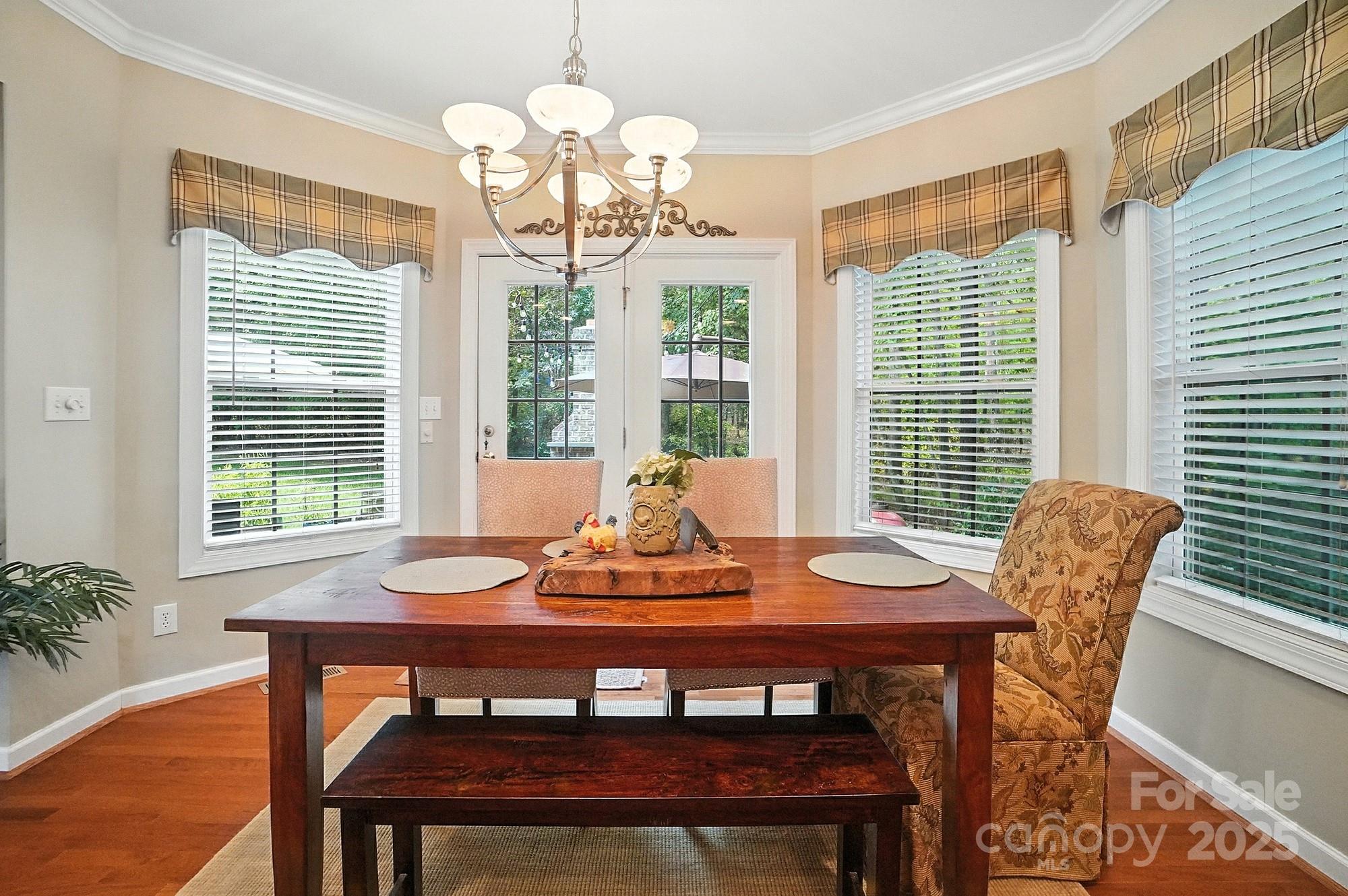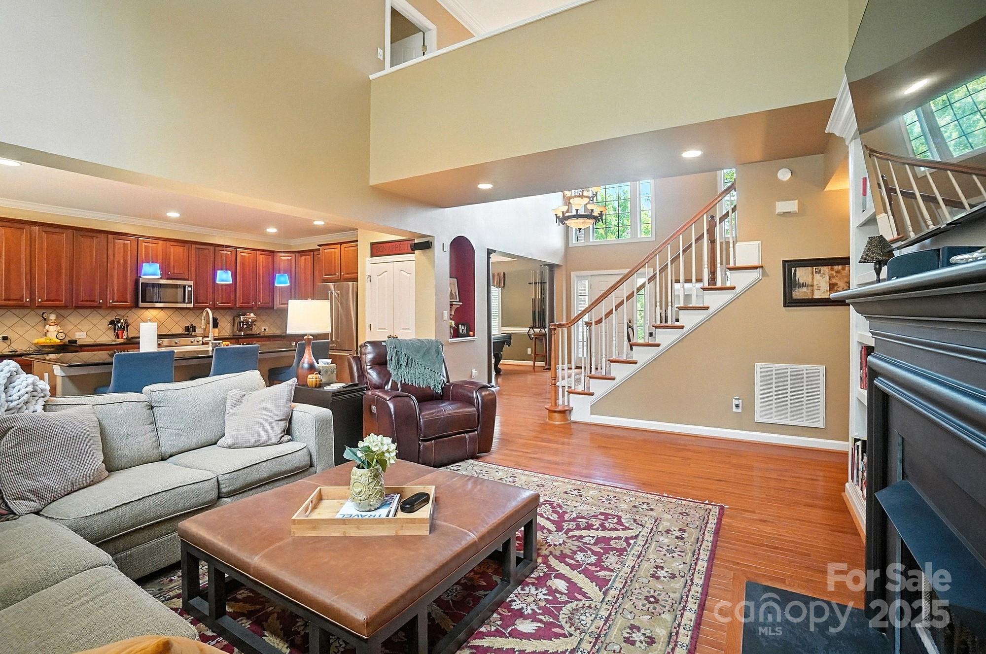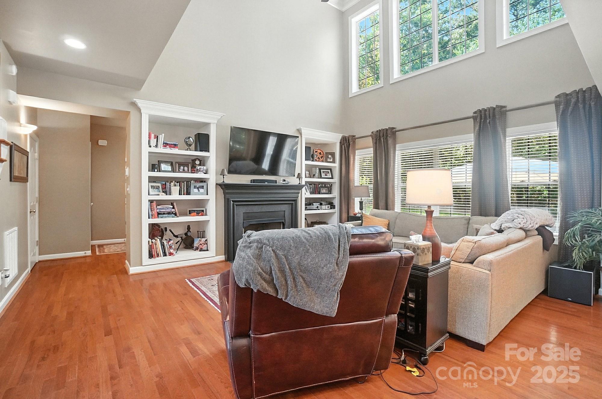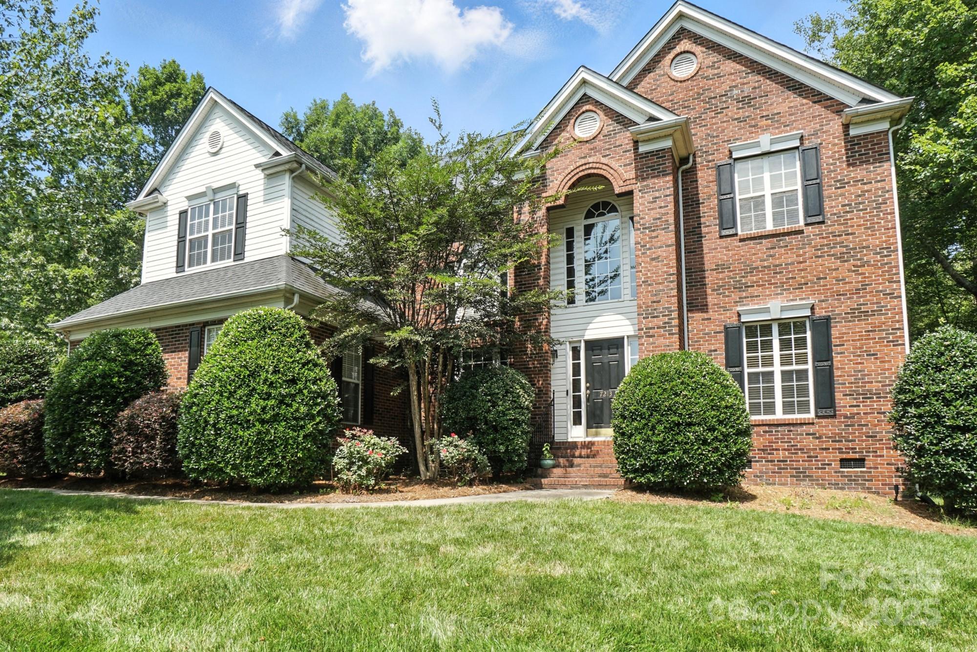 Nestled on a quiet cul-de-sac in one of the area’s most desirable golf course communities, this two-story home offers the perfect blend of convenience and lifestyle. Step inside this inviting home where a formal dining room and den greet you at the foyer, setting the stage for both elegance and functionality. The two-story great room is filled with natural light from a wall of windows and features a cozy gas log fireplace flanked by built-in shelving. The open layout seamlessly connects to the kitchen, complete with an island for casual seating, tile backsplash, stainless steel appliances, gas range, and a sunny breakfast nook. A main-level bedroom with access to a full bath adds flexibility, perfect for guests or a home office. Upstairs, a spacious bonus room offers endless options for relaxing or entertaining. Two generously sized secondary bedrooms share a full hall bath, while the private primary suite enjoys its own wing across the walkway. The luxurious primary bath includes a dual sink vanity, soaking tub, and walk-in shower. Outside, you’ll discover your own private oasis—a flat, tree-lined backyard that offers both beauty and privacy. A custom paver patio and outdoor fireplace create the perfect setting for gathering with friends, dining under the stars, or enjoying quiet evenings by the fire. With a 3-car garage and plenty of space indoors as well, this home combines comfort, function, and style. Enjoy quick access to I-485 and be just minutes from the vibrant dining, shopping, and entertainment options in Matthews. Whether you’re looking for a night out or running weekend errands, everything you need is close at hand!