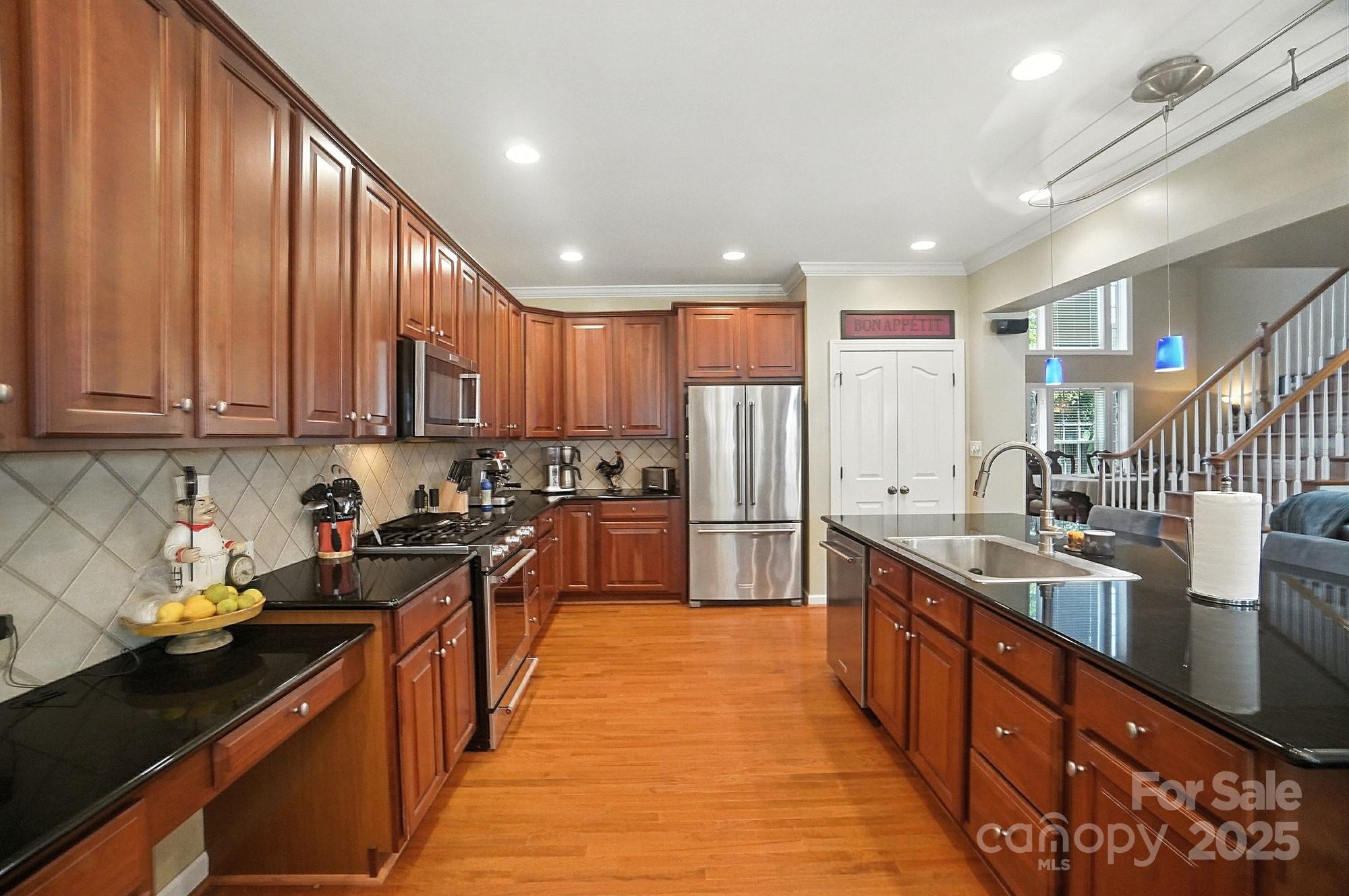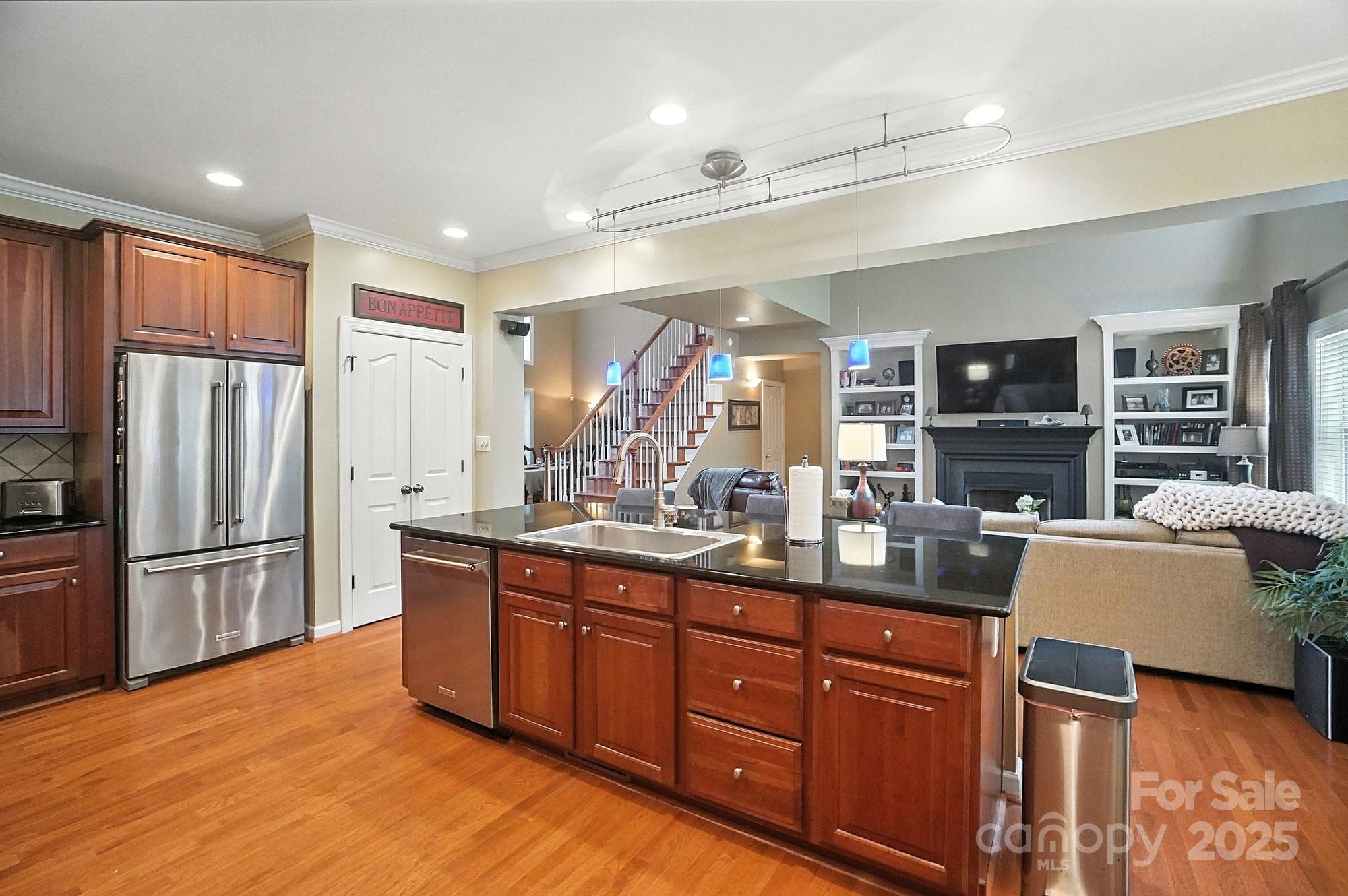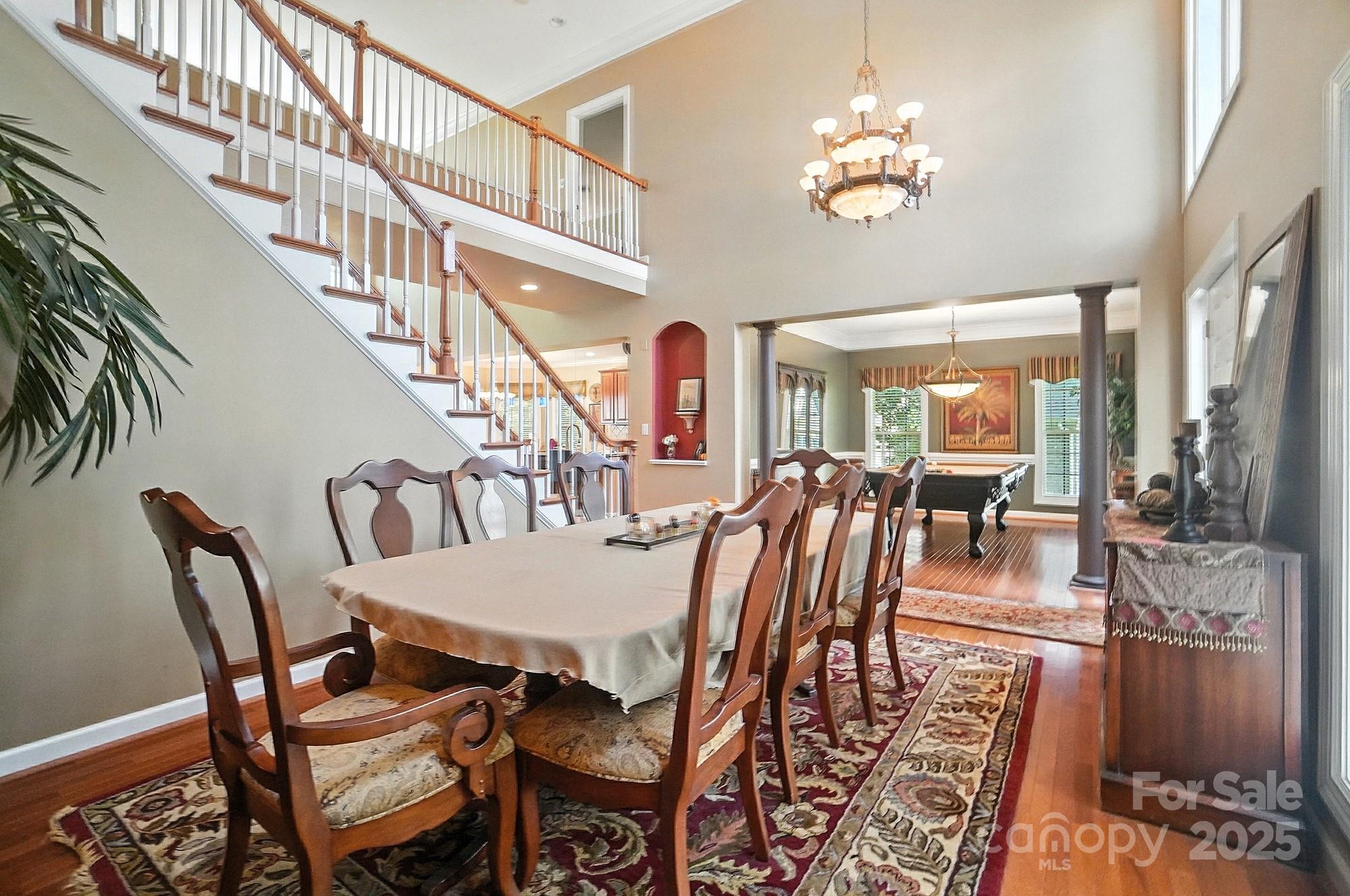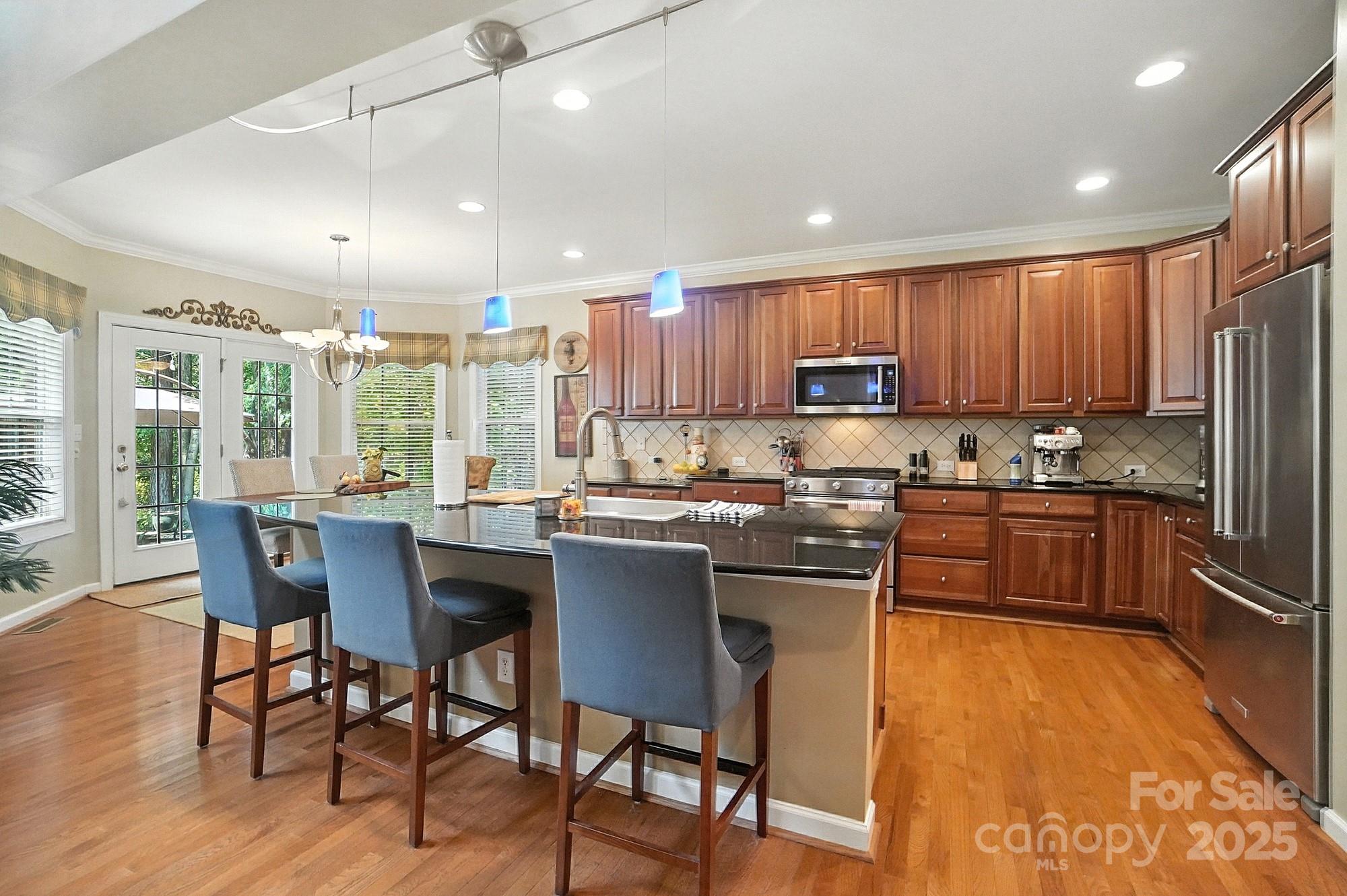 Nestled on a quiet cul-de-sac in one of the area’s most desirable golf course communities, this two-story home offers the perfect blend of convenience and lifestyle. Step inside this inviting home where a formal dining room and den greet you at the foyer, setting the stage for both elegance and functionality. The two-story great room is filled with natural light from a wall of windows and features a cozy gas log fireplace flanked by built-in shelving. The open layout seamlessly connects to the kitchen, complete with an island for casual seating, tile backsplash, stainless steel appliances, gas range, and a sunny breakfast nook. A main-level bedroom with access to a full bath adds flexibility, perfect for guests or a home office. Upstairs, a spacious bonus room offers endless options for relaxing or entertaining. Two generously sized secondary bedrooms share a full hall bath, while the private primary suite enjoys its own wing across the walkway. The luxurious primary bath includes a dual sink vanity, soaking tub, and walk-in shower. Outside, you’ll discover your own private oasis—a flat, tree-lined backyard that offers both beauty and privacy. A custom paver patio and outdoor fireplace create the perfect setting for gathering with friends, dining under the stars, or enjoying quiet evenings by the fire. With a 3-car garage and plenty of space indoors as well, this home combines comfort, function, and style. Enjoy quick access to I-485 and be just minutes from the vibrant dining, shopping, and entertainment options in Matthews. Whether you’re looking for a night out or running weekend errands, everything you need is close at hand!